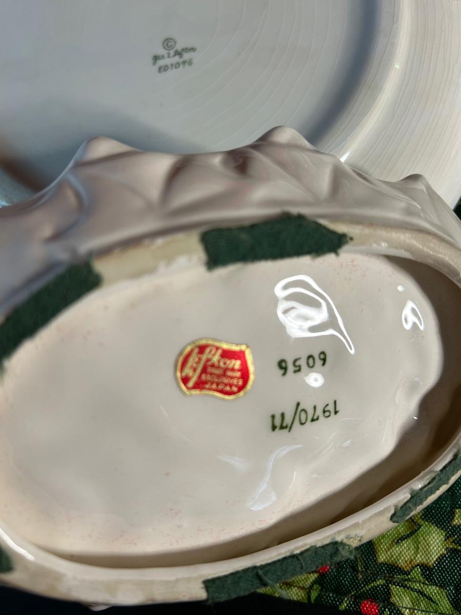 LOT 192C: Vintage Christmas Decor - Lefton Plate And Holly Dish