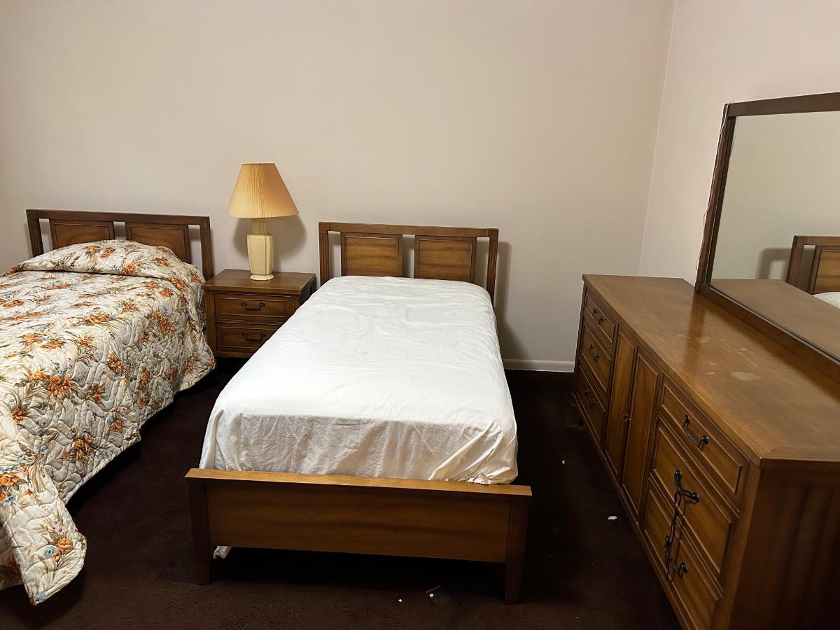 LOT 193C: Entire Bedroom Set - Two Twin Beds, Night Stand And Dresser