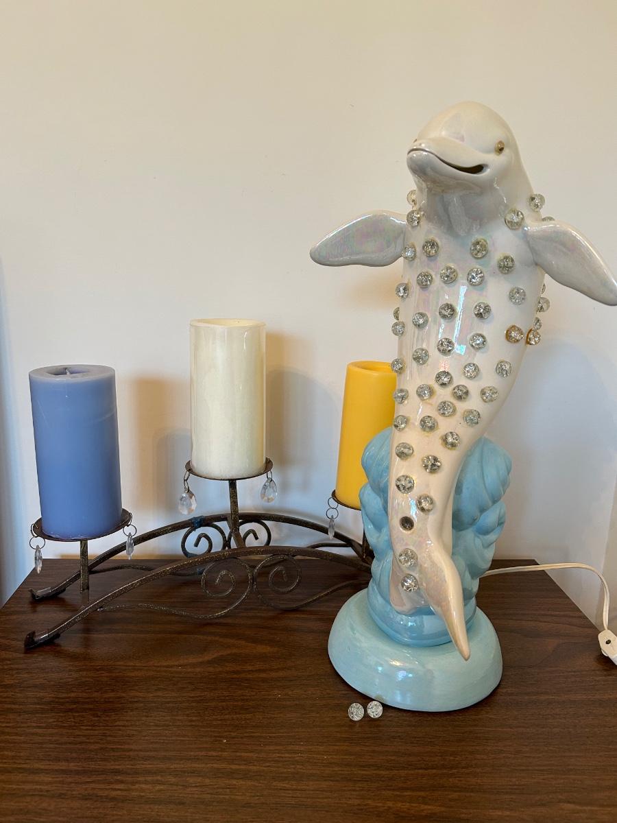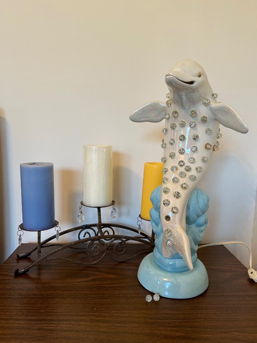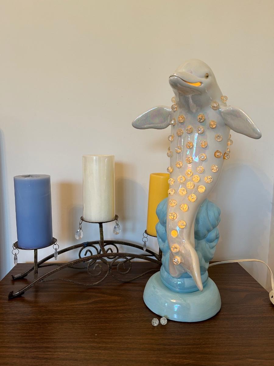 LOT 19C: Vintage Dolphin Lamp And Candelabra