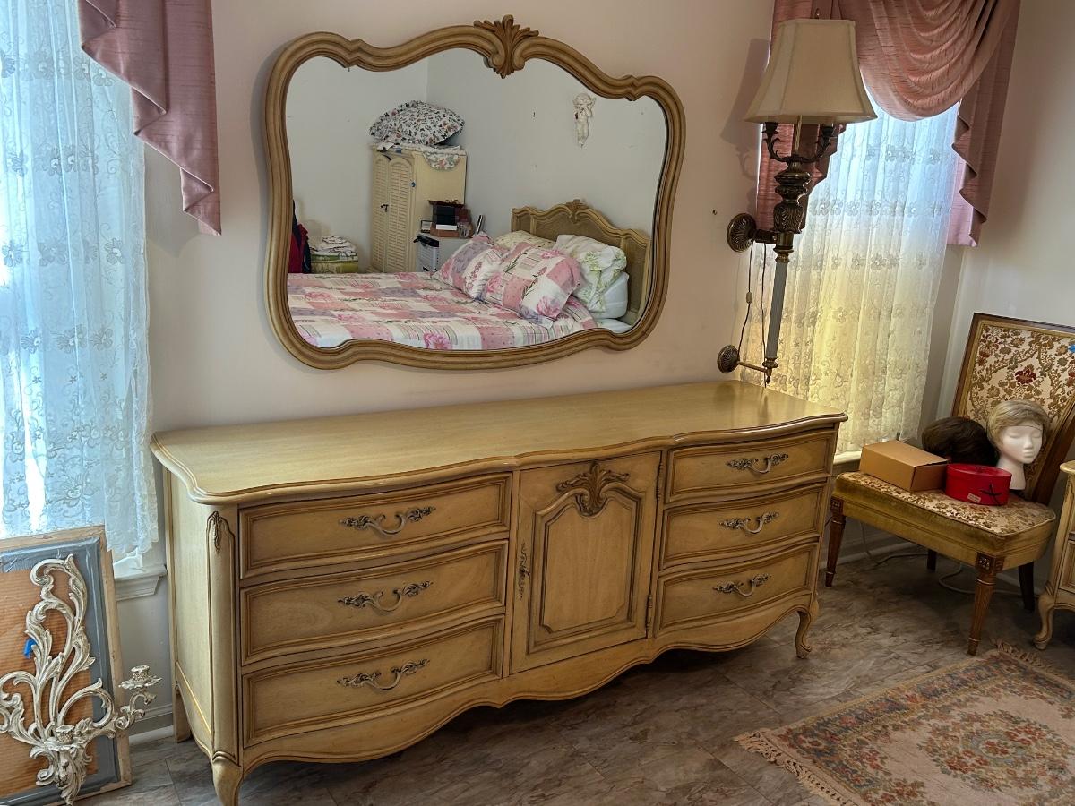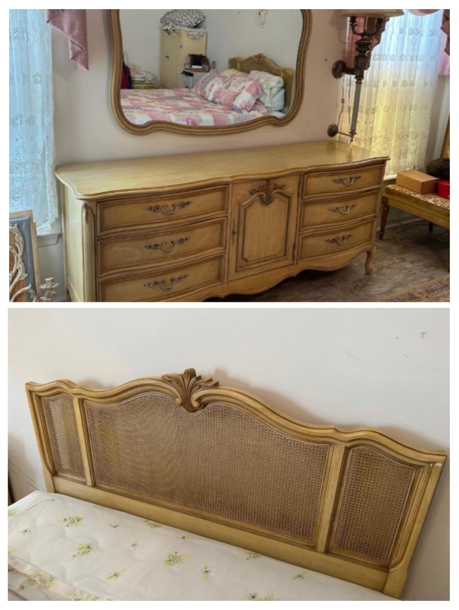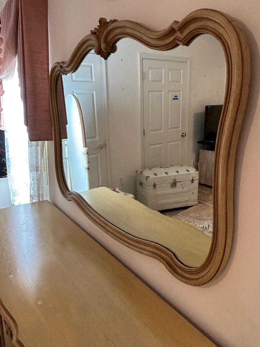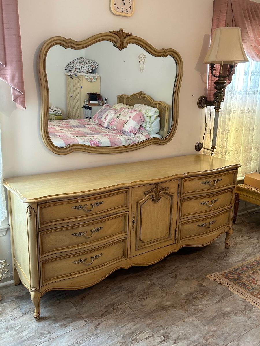 Dresser 72"x21"x32". Mirror 48"x34" and Headboard 30"x22".