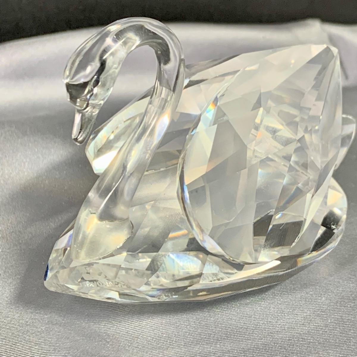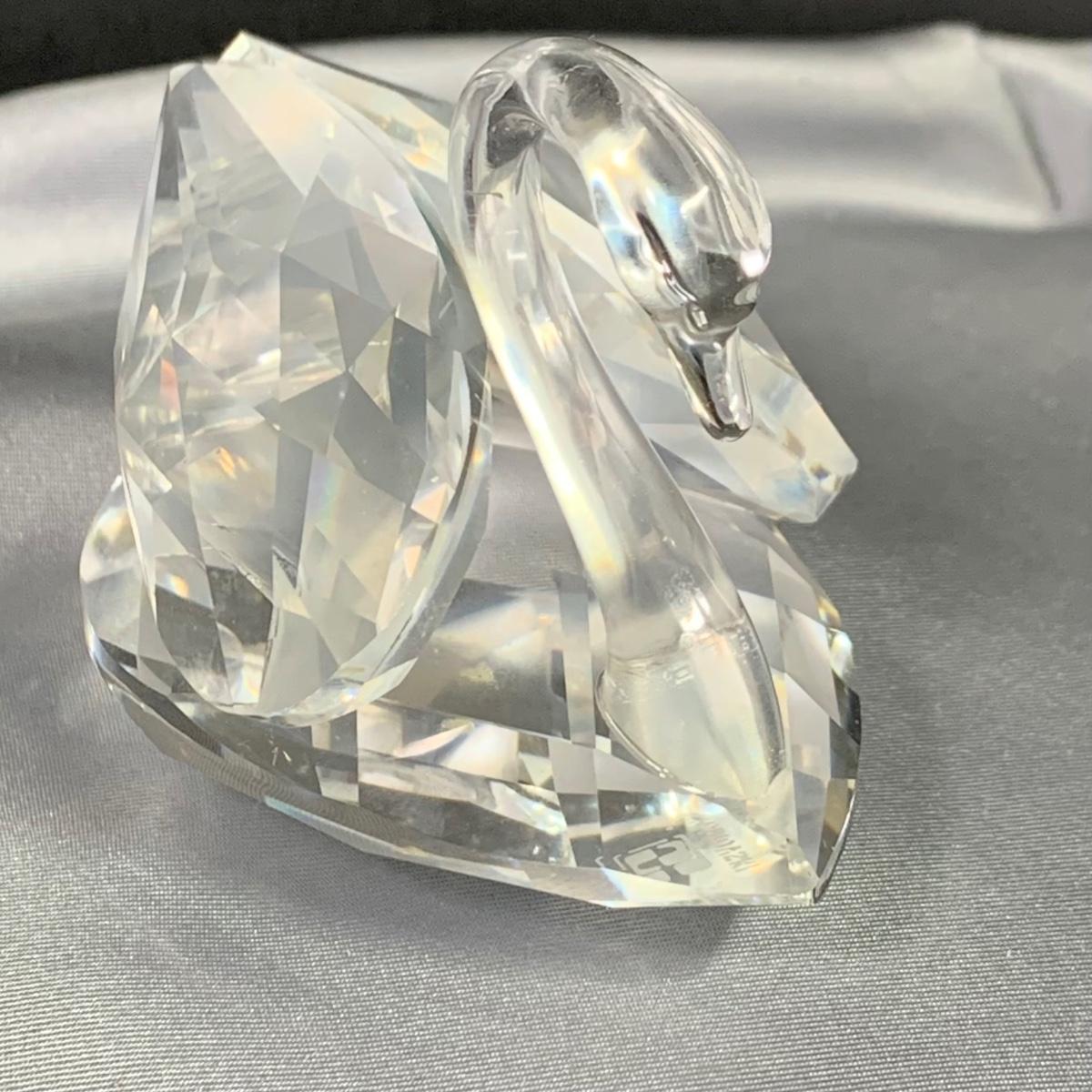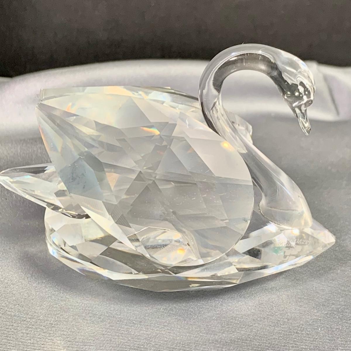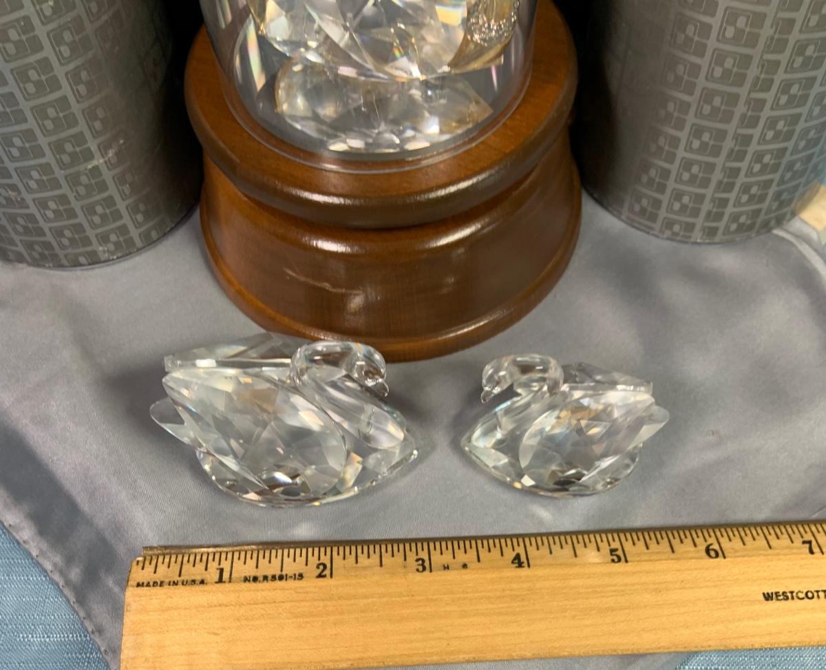 LOT:34G: 2 Swarovski Crystal Swans with Original Boxes and a Souviner Swan Music Box