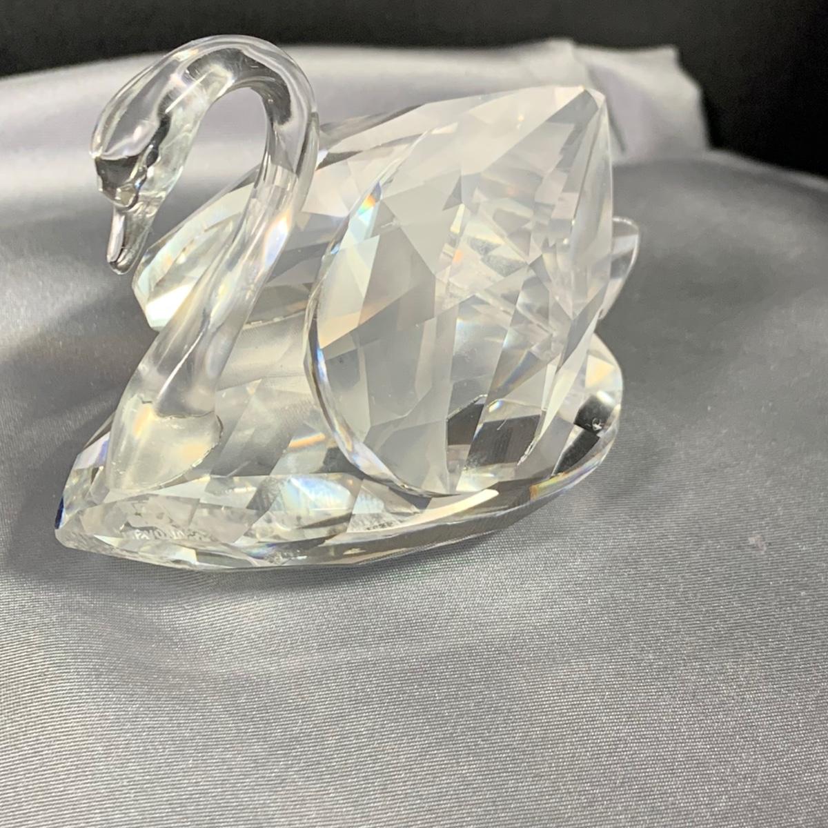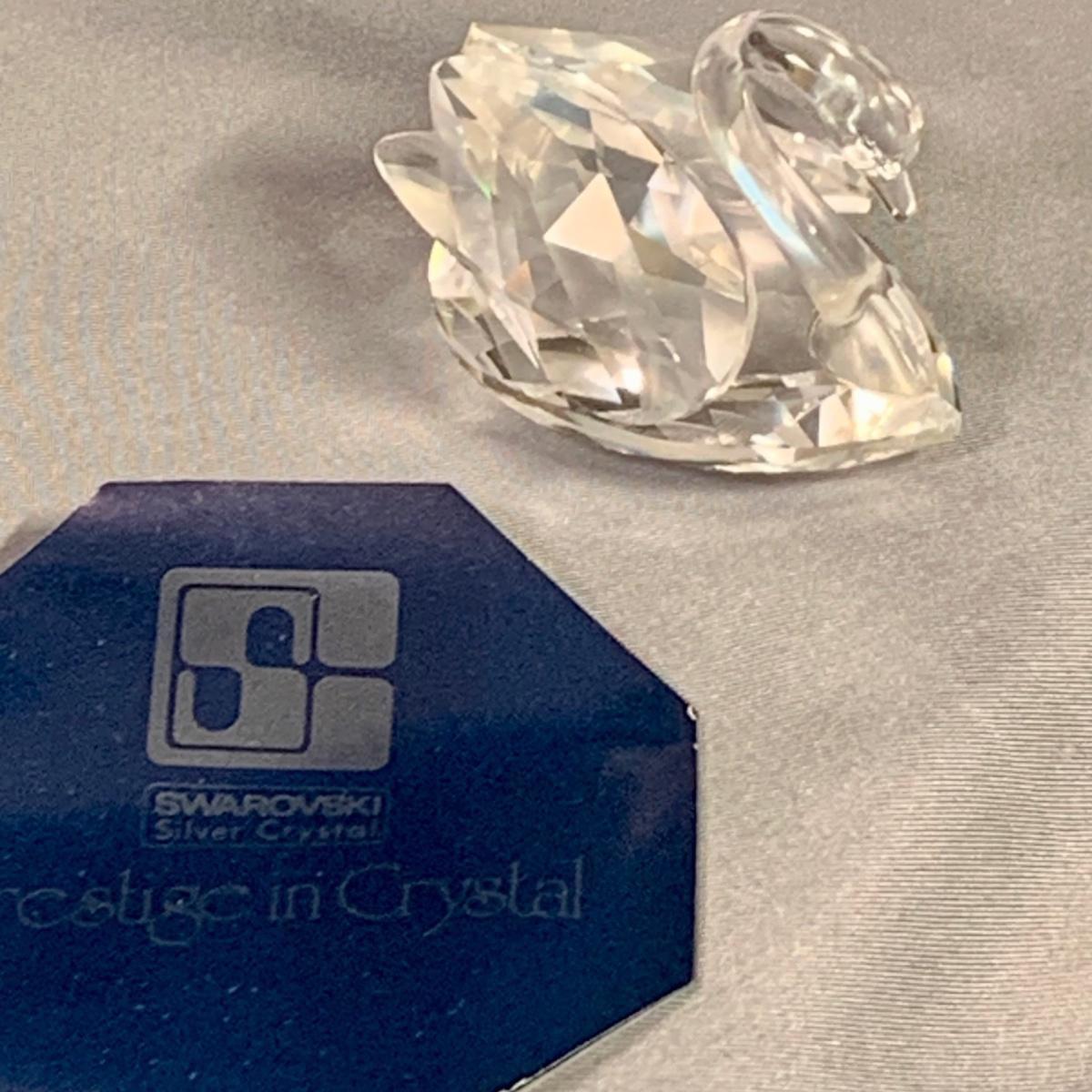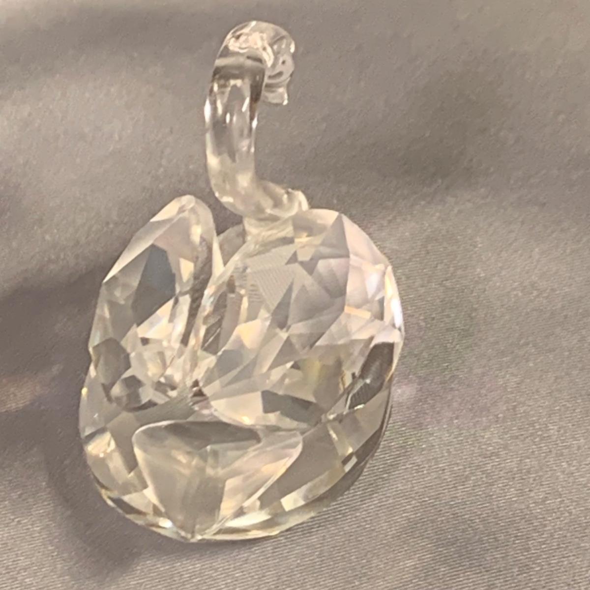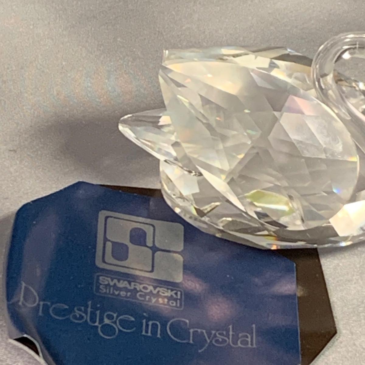 LOT:34G: 2 Swarovski Crystal Swans with Original Boxes and a Souviner Swan Music Box
