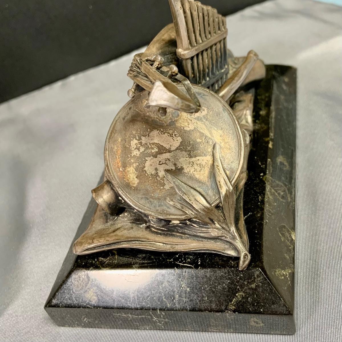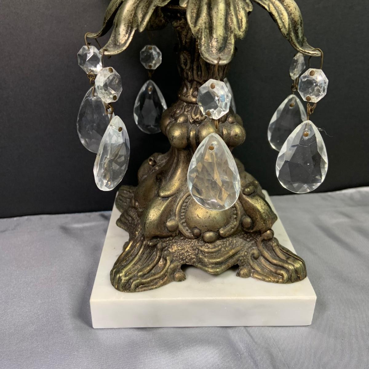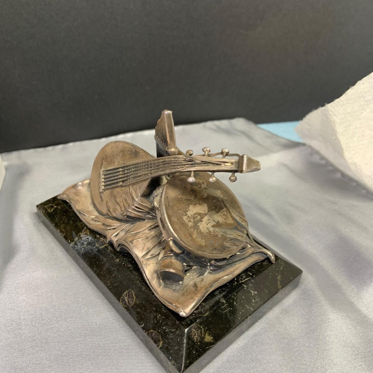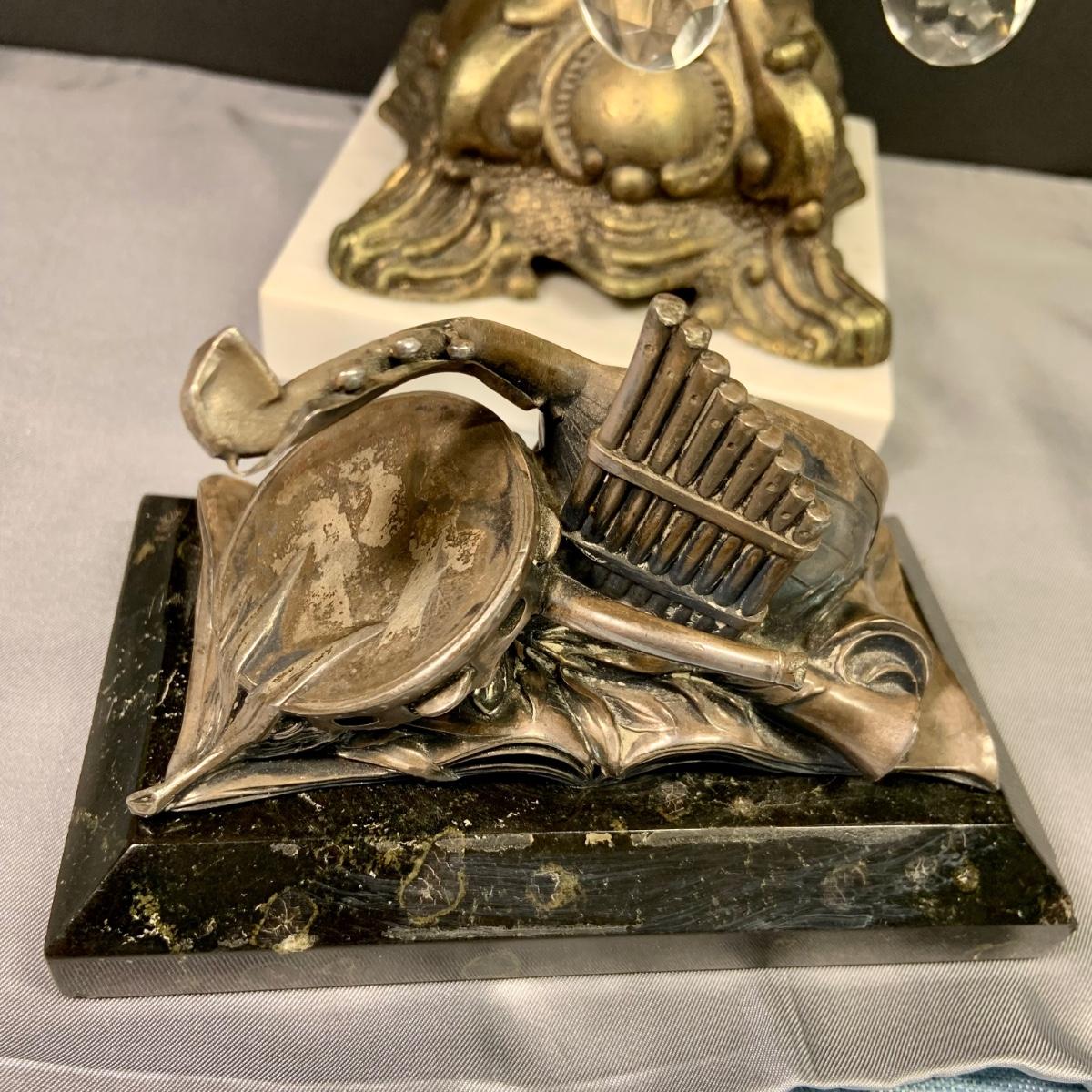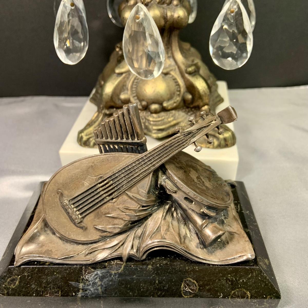 LOT:38G: Crystal Compot Candy Dish with Lid, Crystals and Marble Base and  Musical Instruments Sculpture