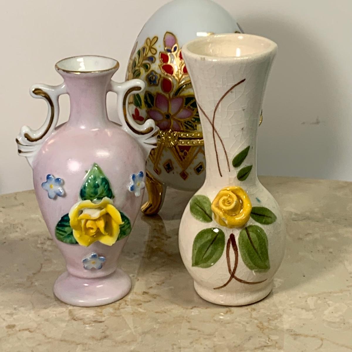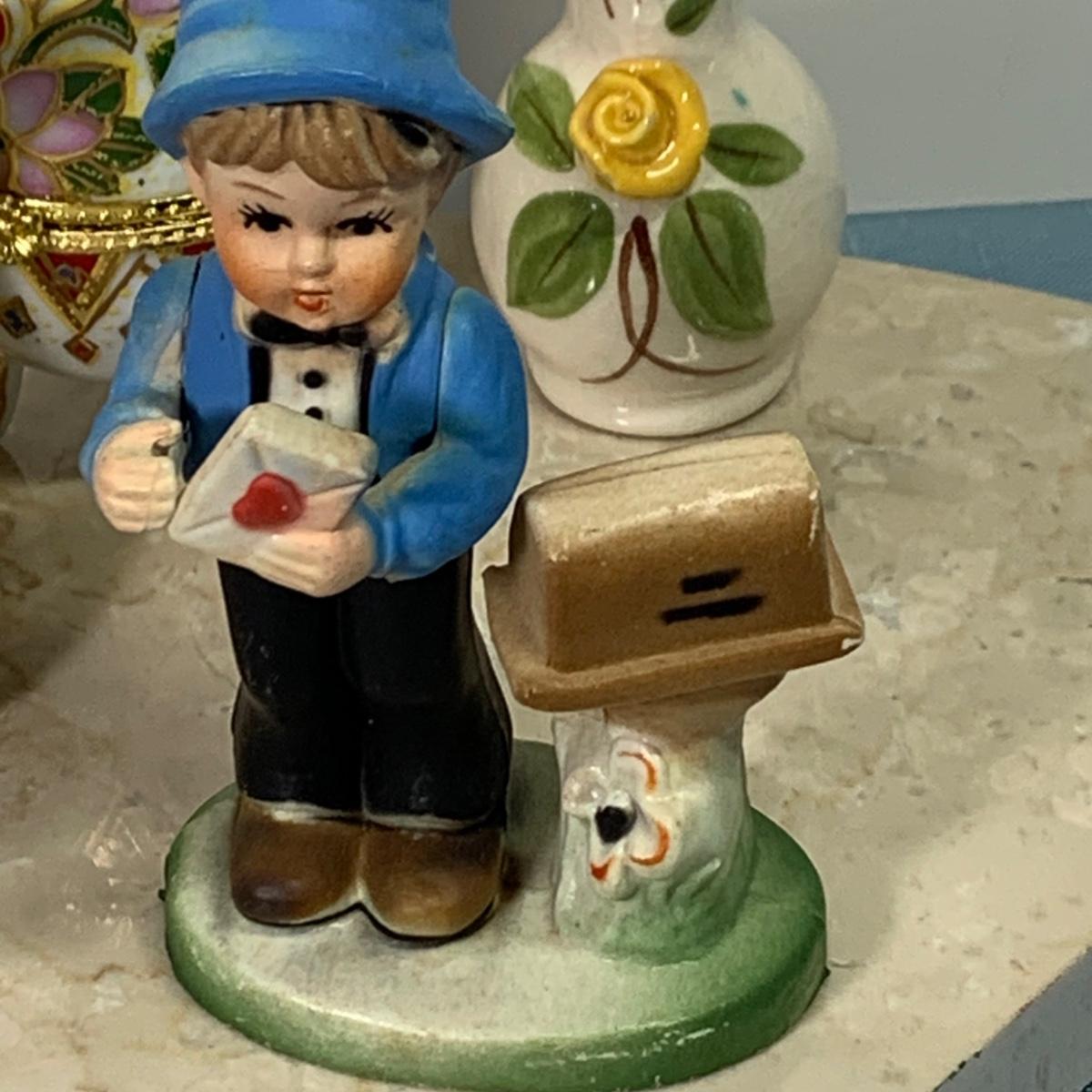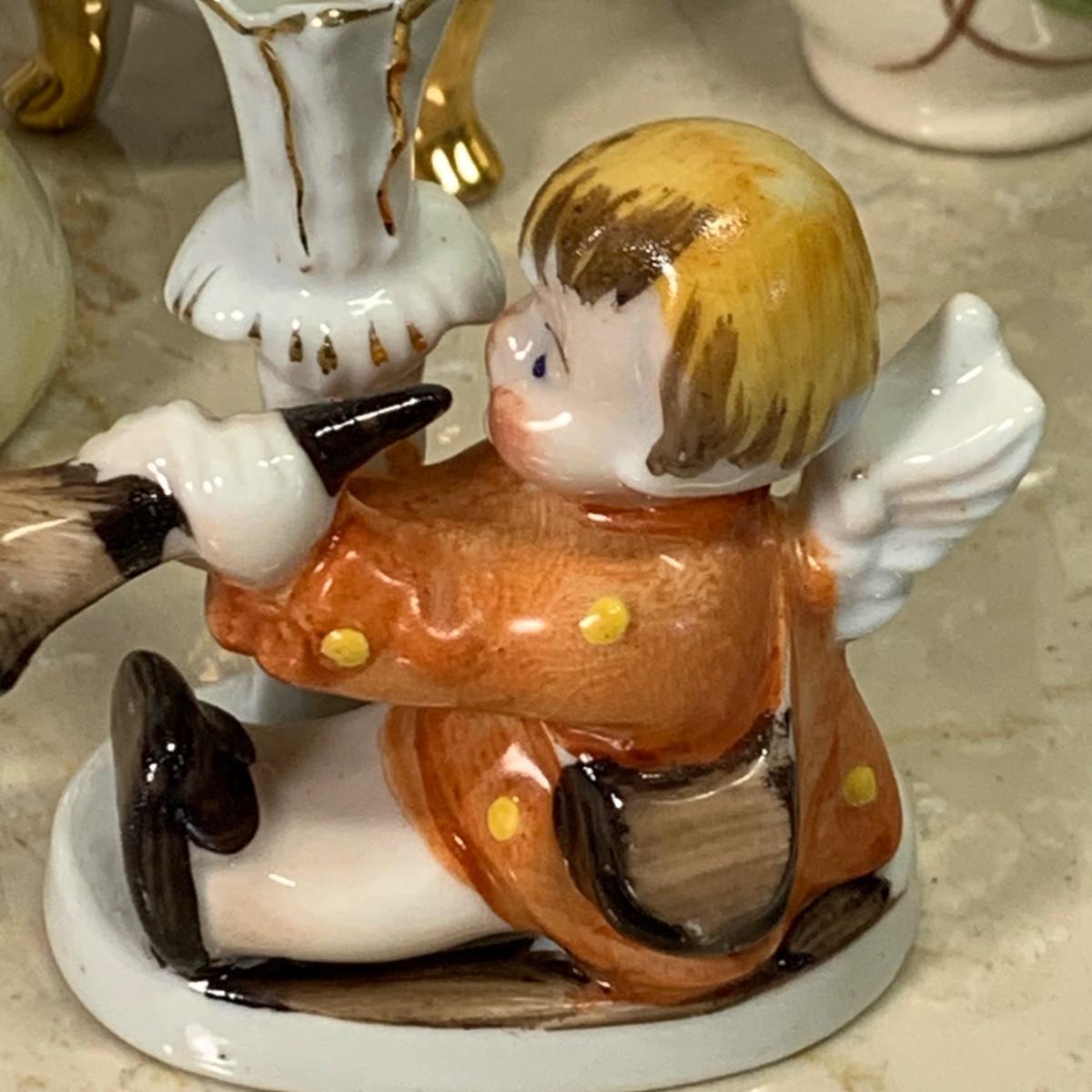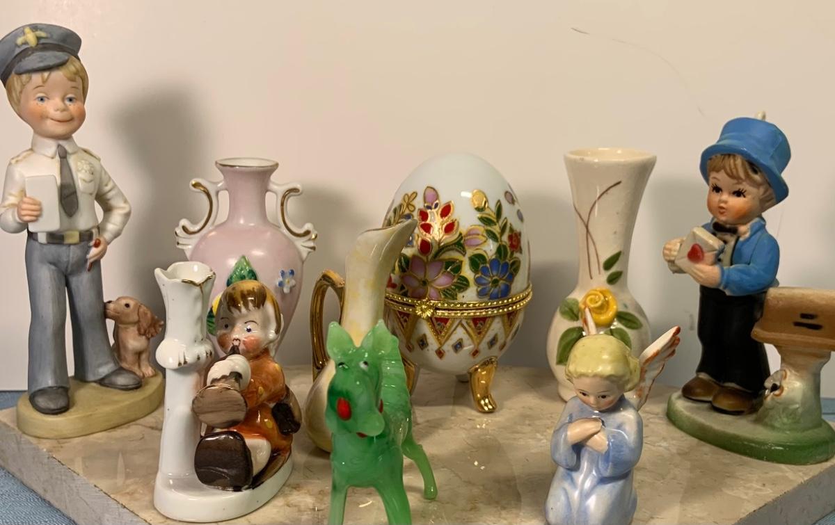 LOT:41G: Vintage Figurines and Assorted Smalls Including Goebel Angel; Vase and Figure Made in Occupied Japan; Green Glass Dog and More