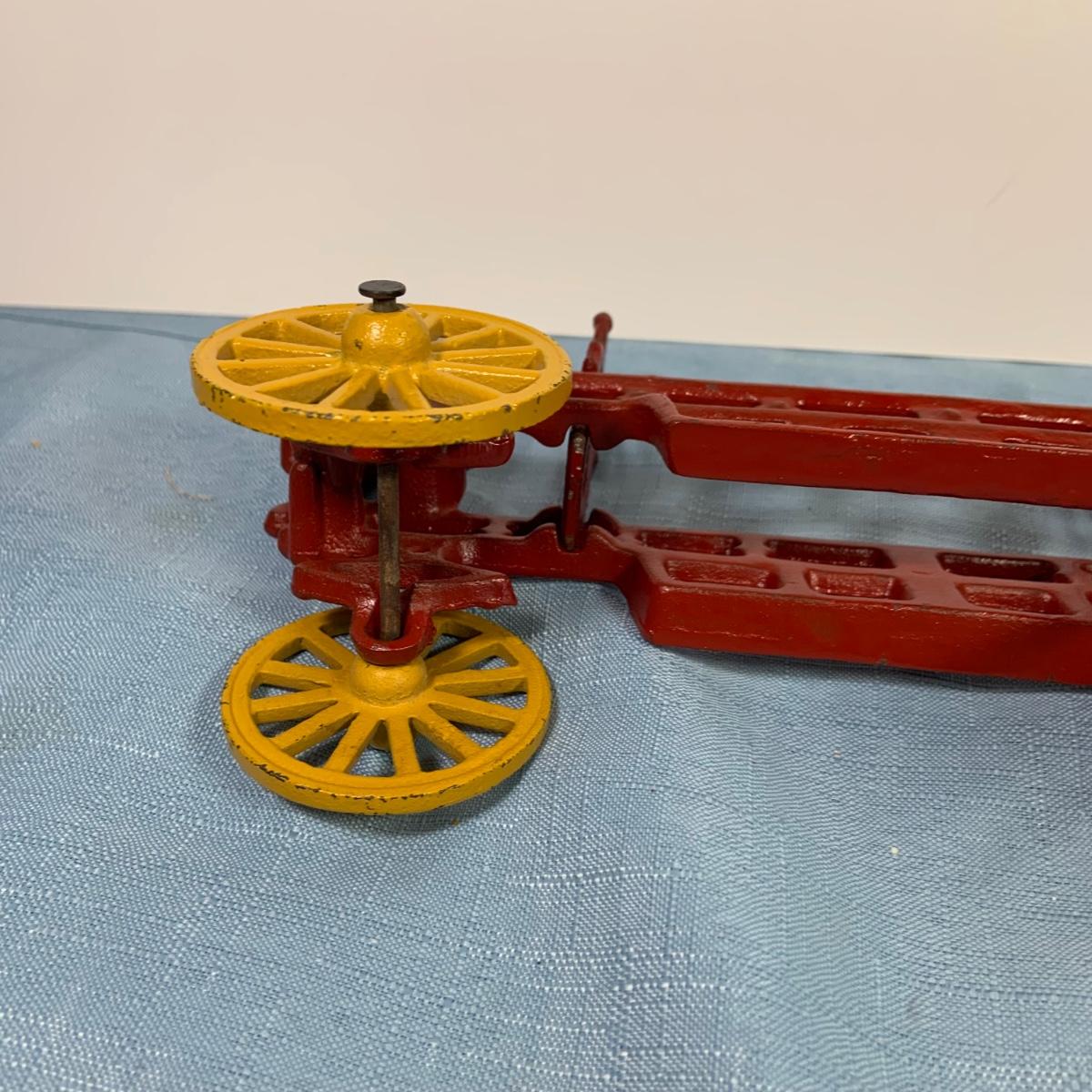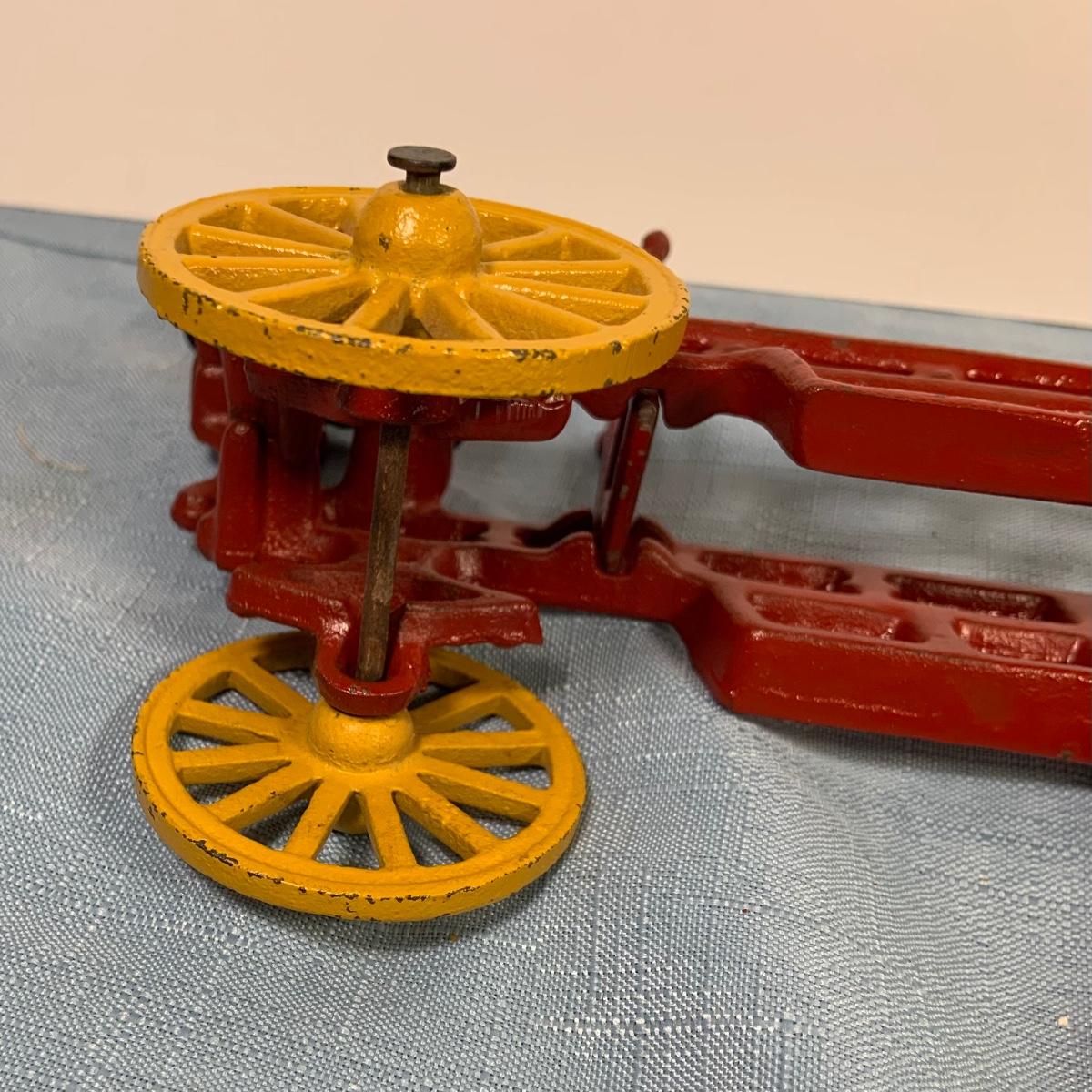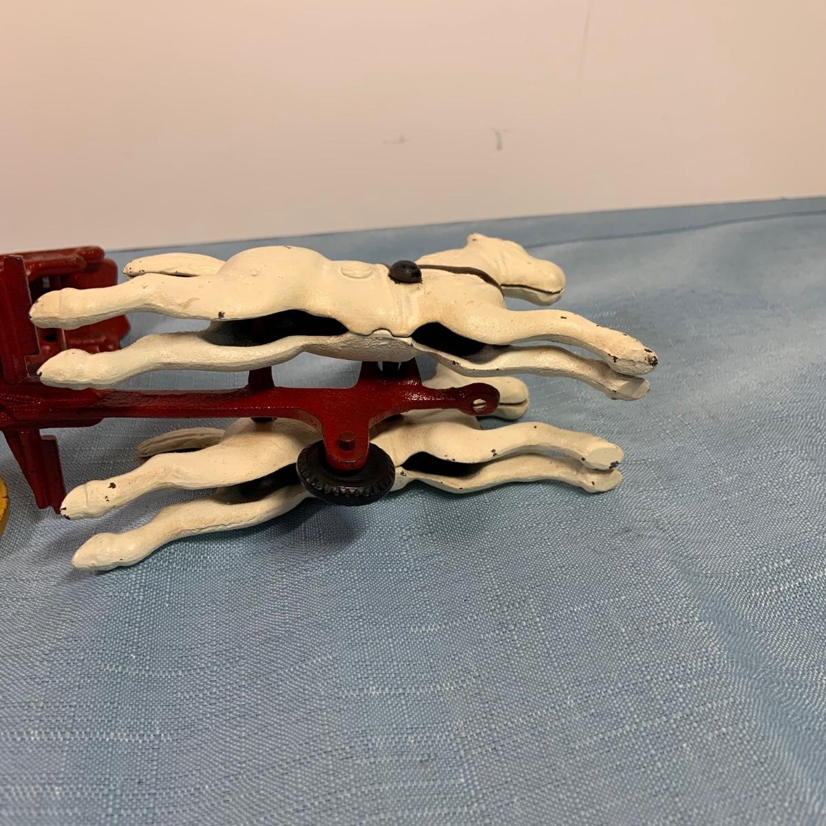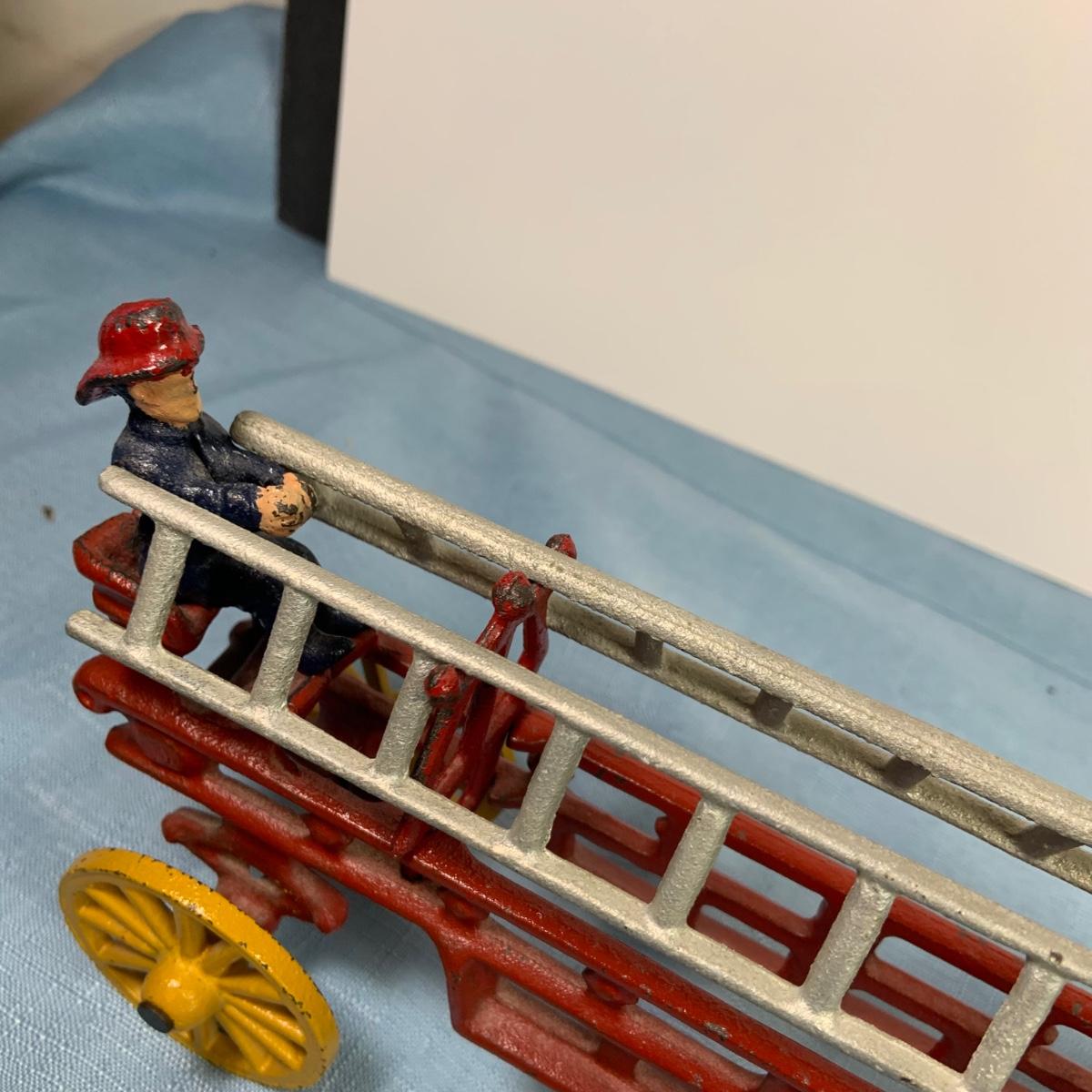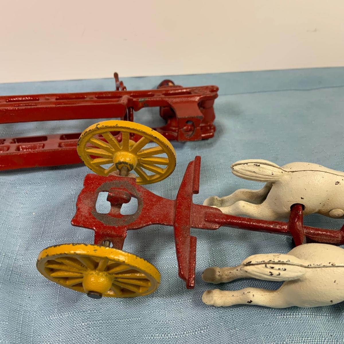 LOT:51G: Cast Iron Toy Horse Drawn Hook and Ladder Fire Carrage with Fightermen