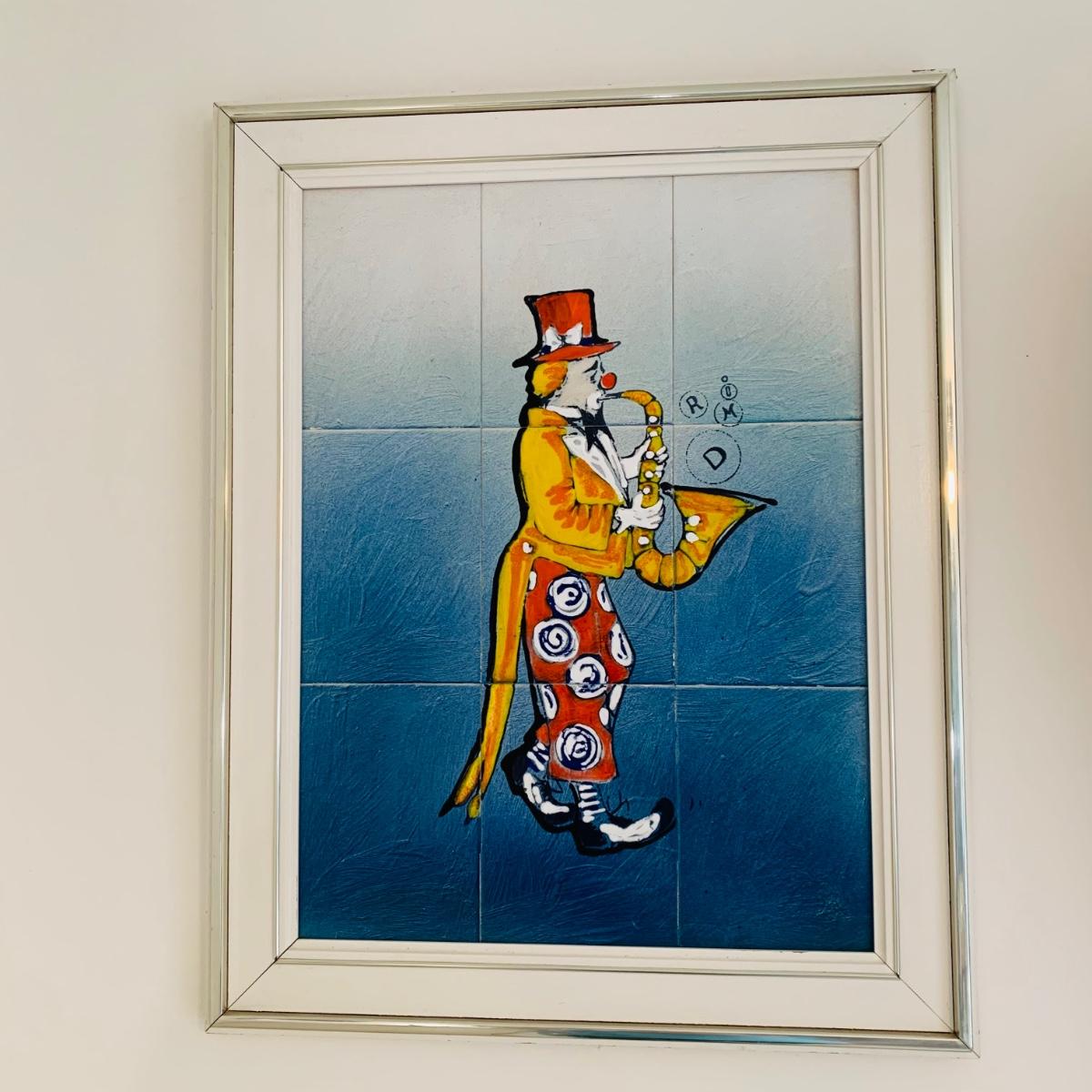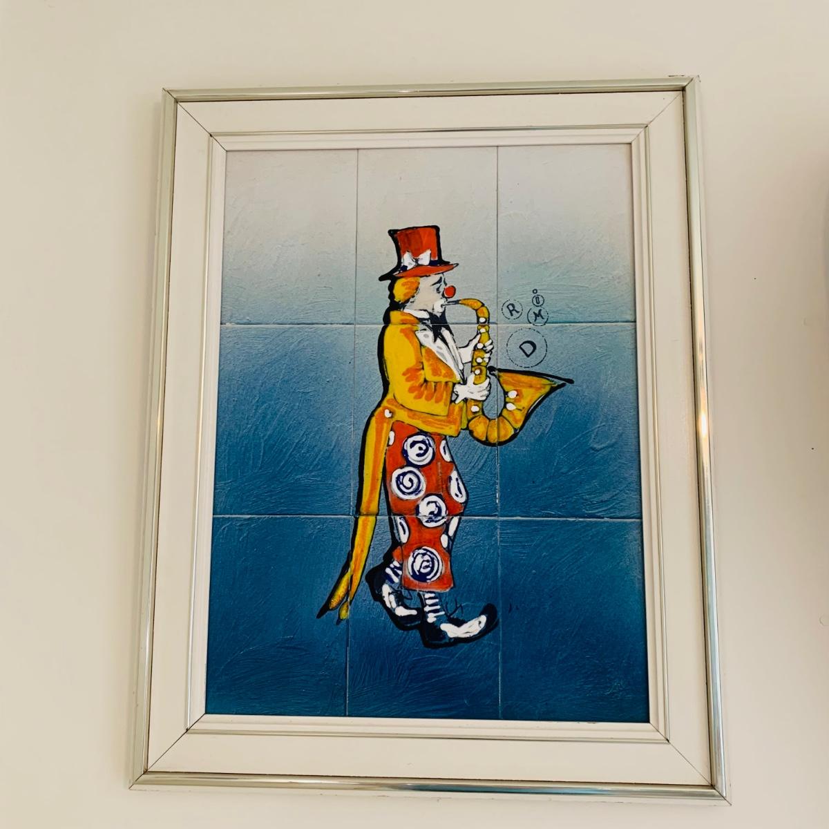 LOT 56R: Clown w/Saxaphone Painted Tiles