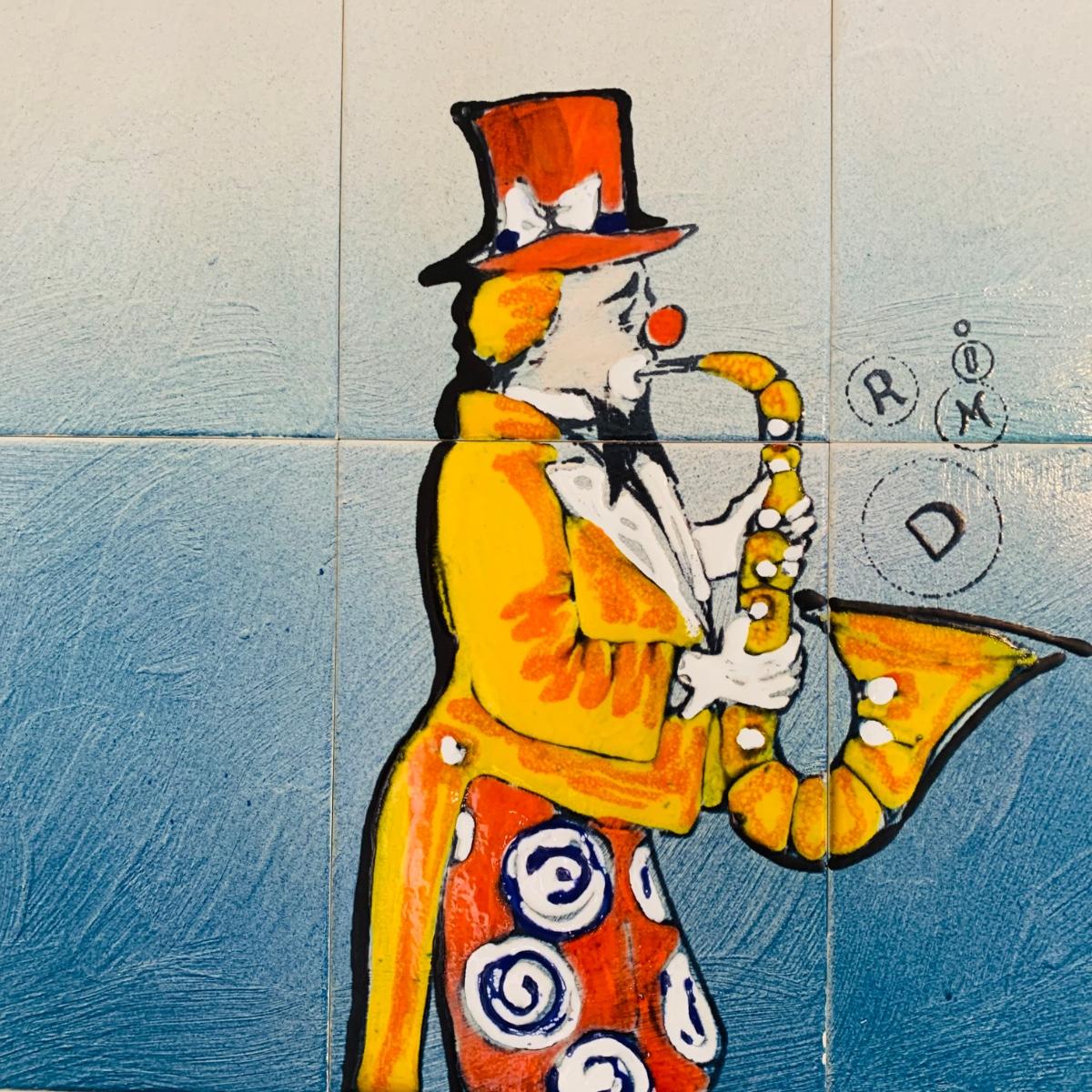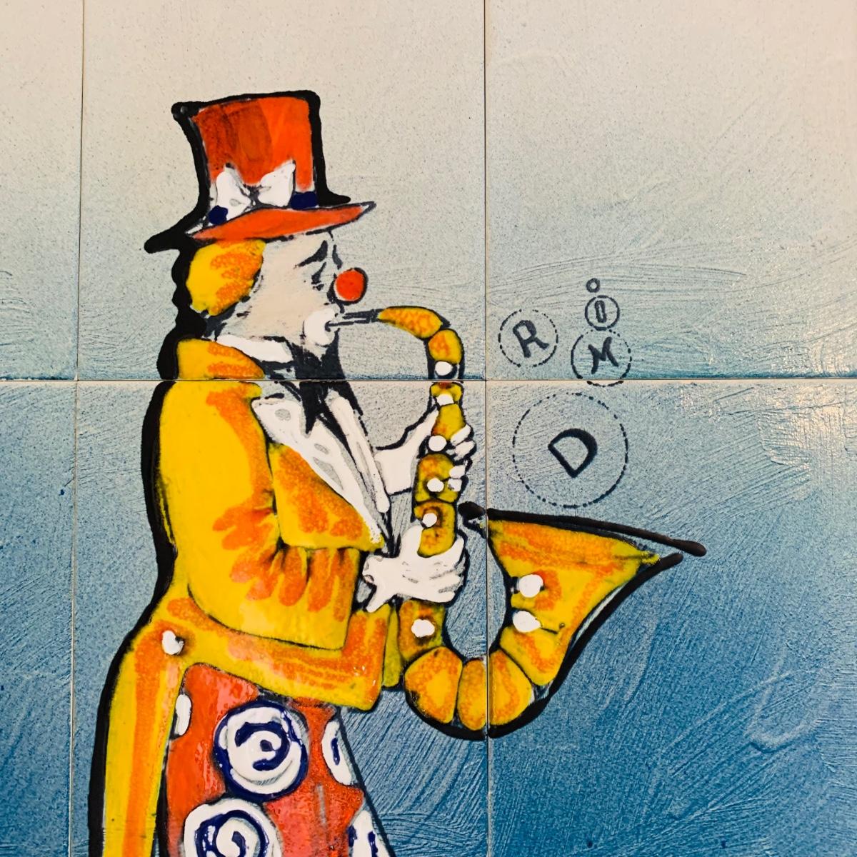 LOT 56R:  Clown w/Saxaphone Painted Tiles