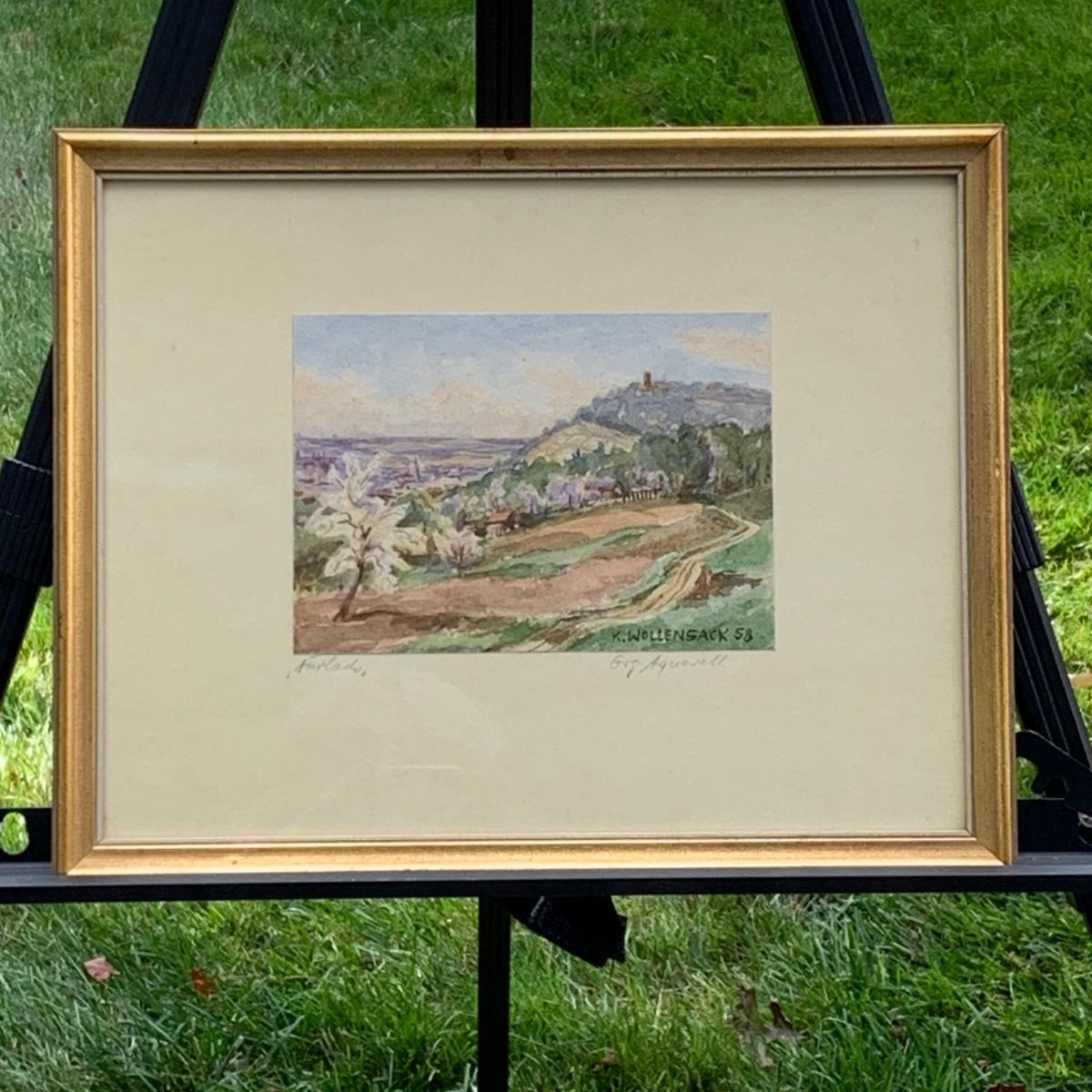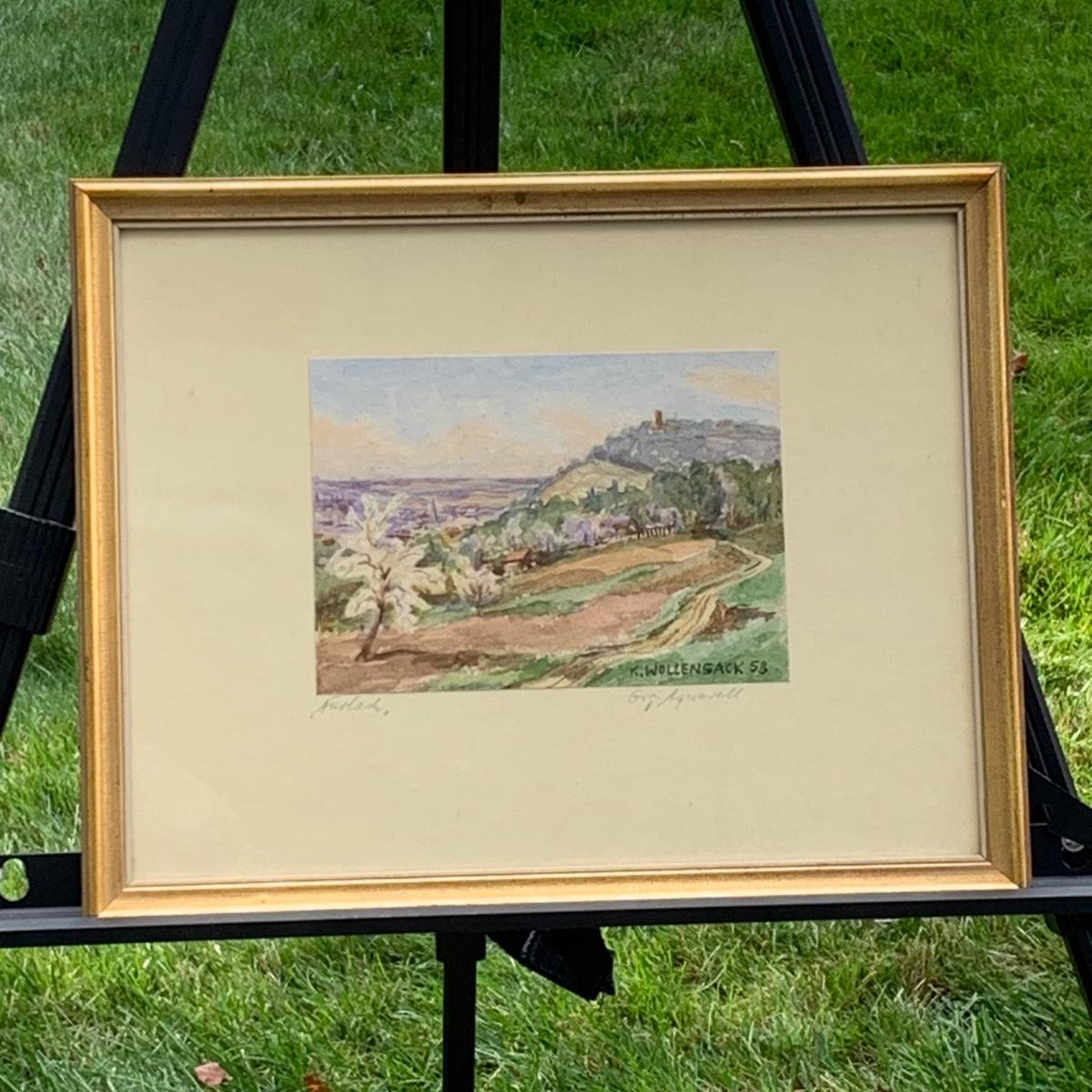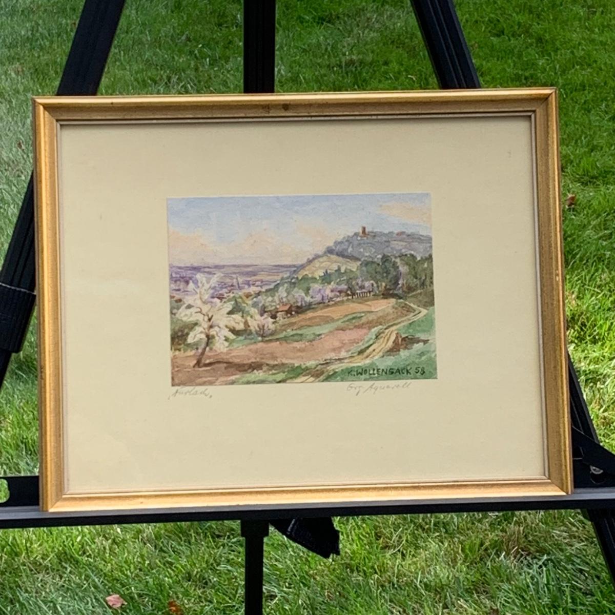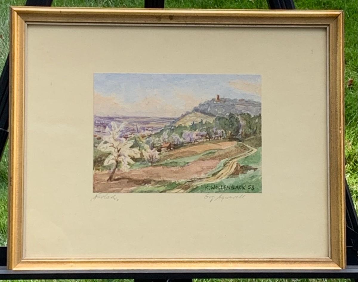 LOT 70R: Framed & Signed Watercolor w/German Label,  Dated 1958