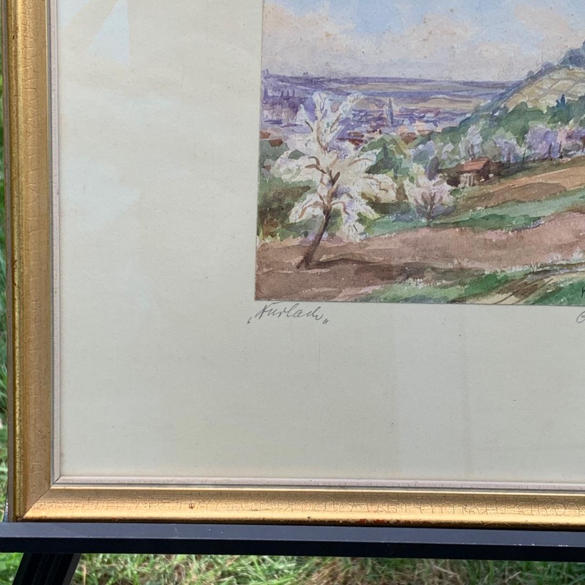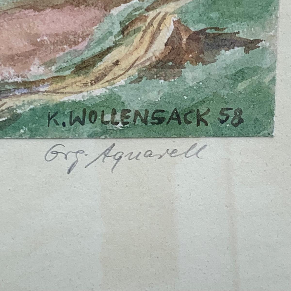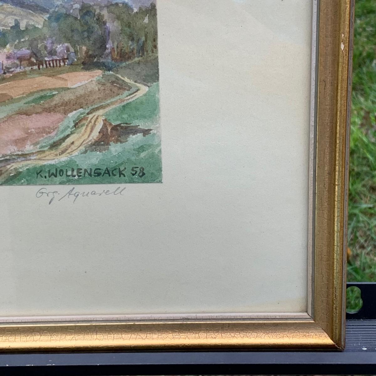 LOT 70R: Framed & Signed Watercolor w/German Label,  Dated 1958