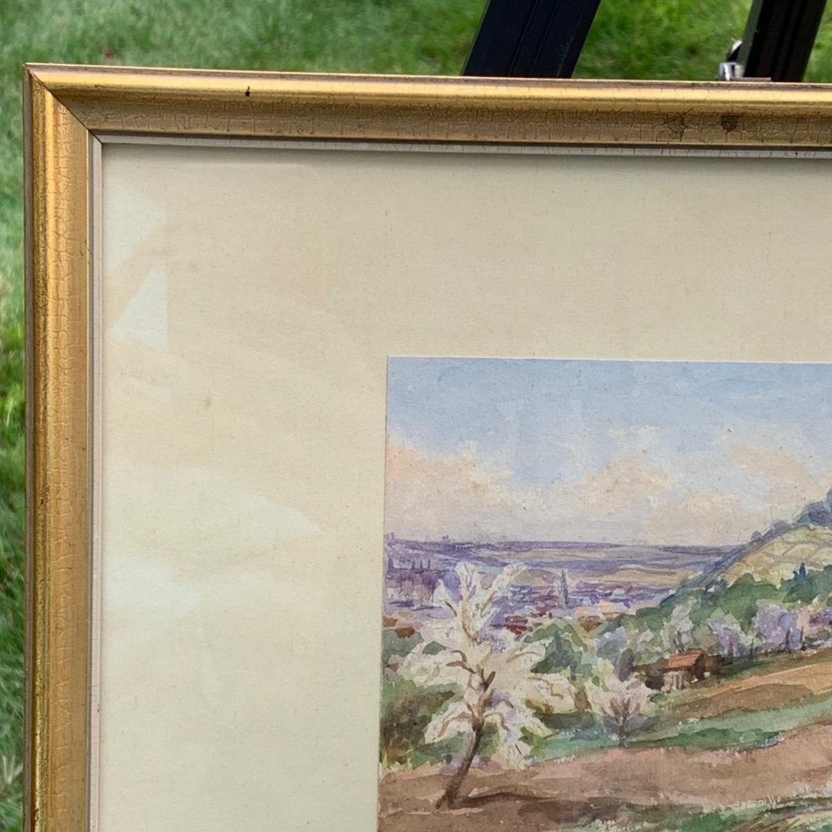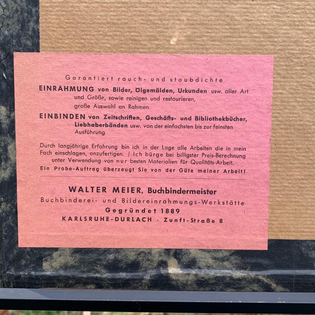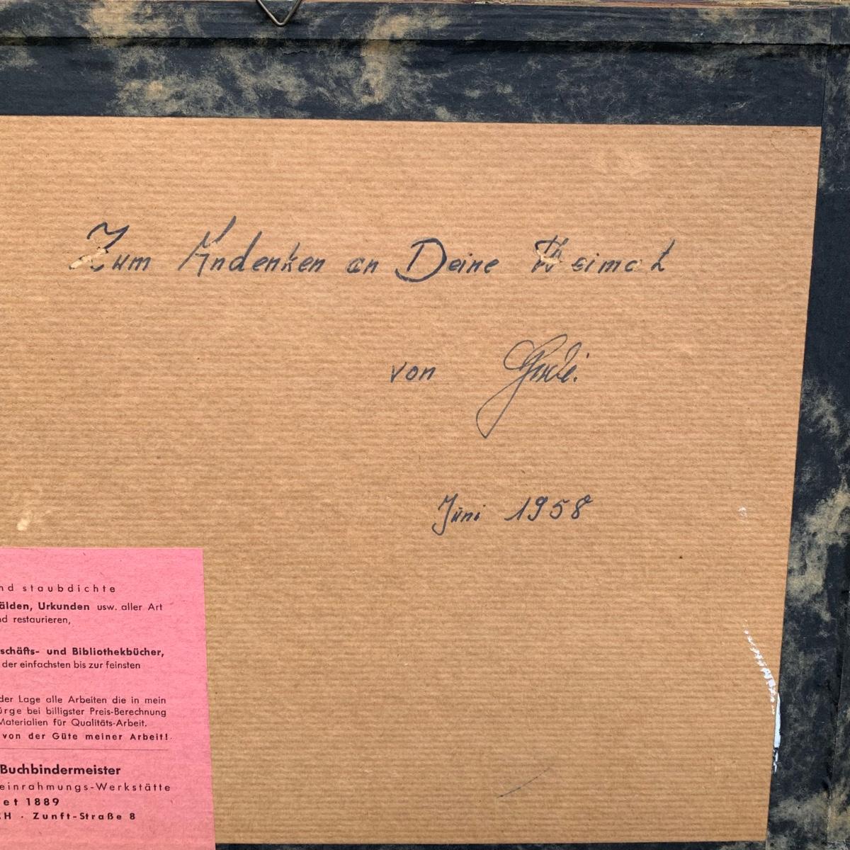 LOT 70R: Framed & Signed Watercolor w/German Label, Dated 1958