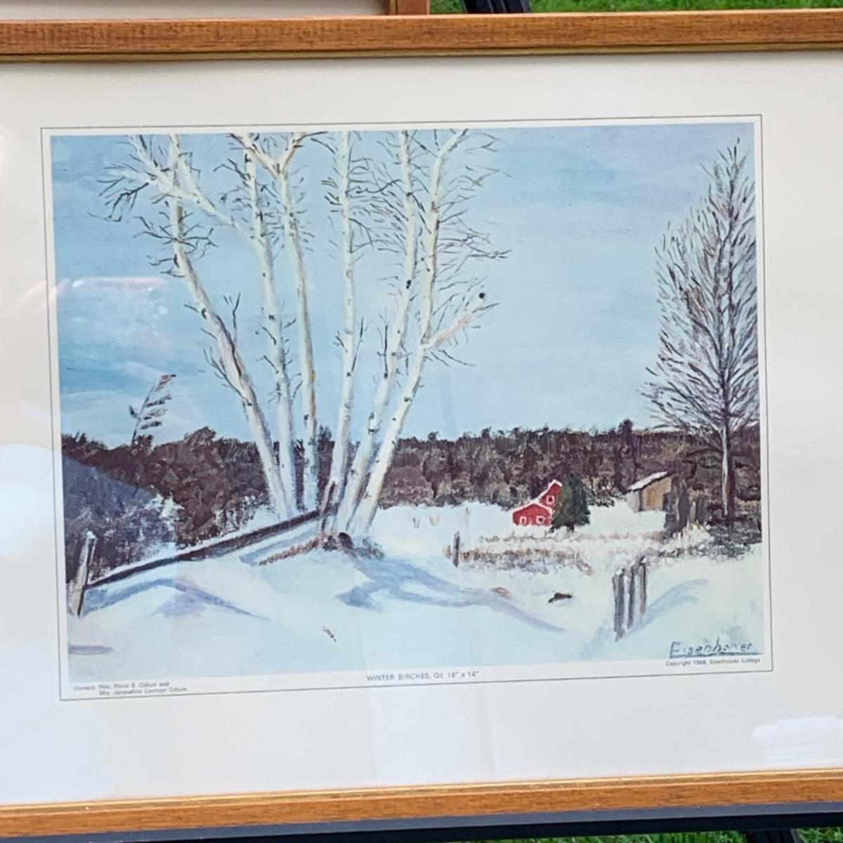 LOT 71R: Winter Birches & Mountain Lake Framed Prints  Art by Dwight D. Eisenhower -Eisenhower Library,