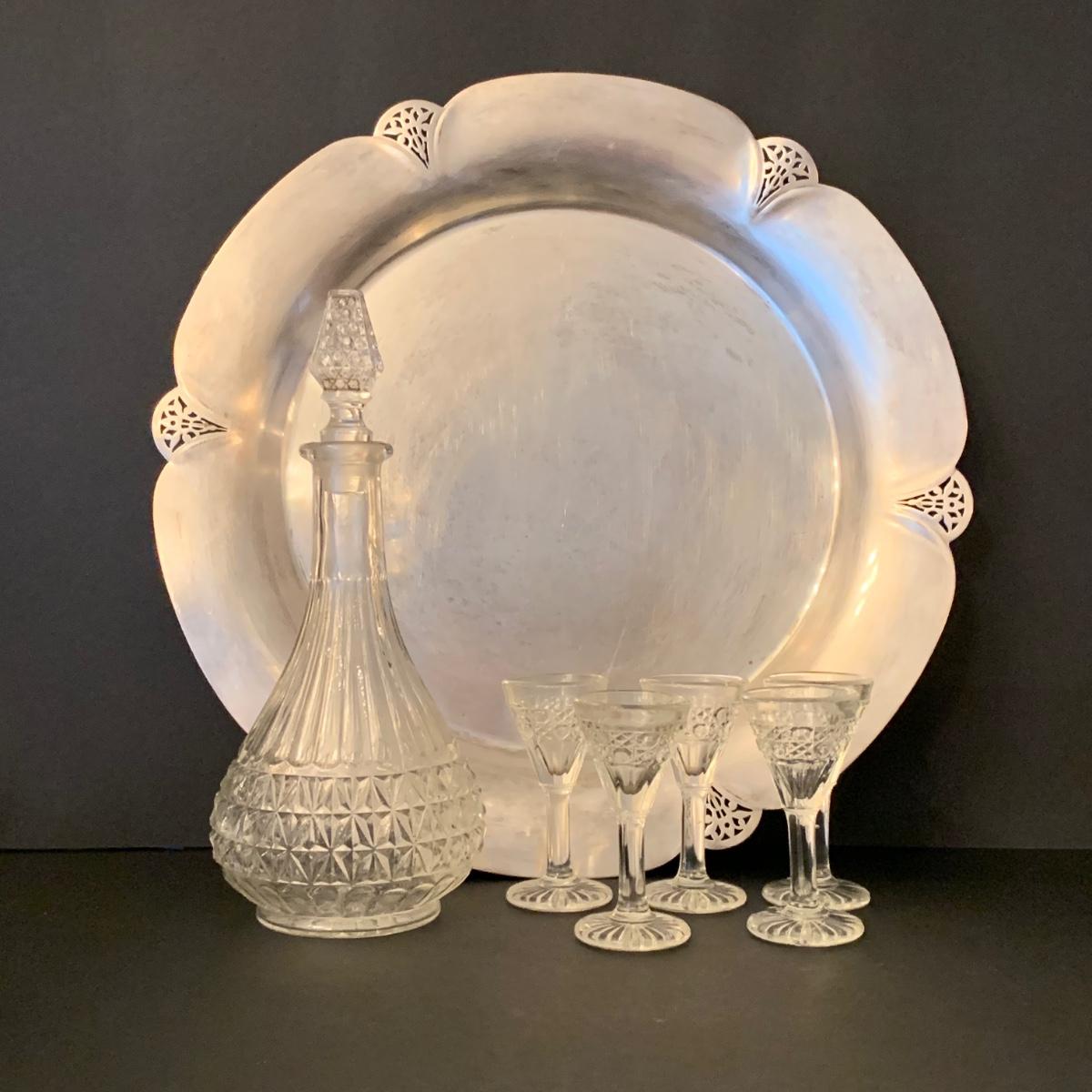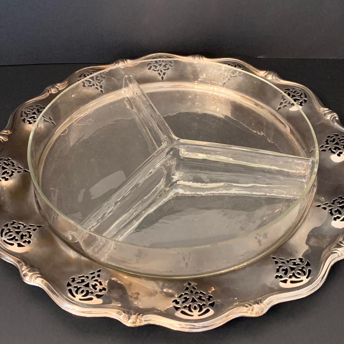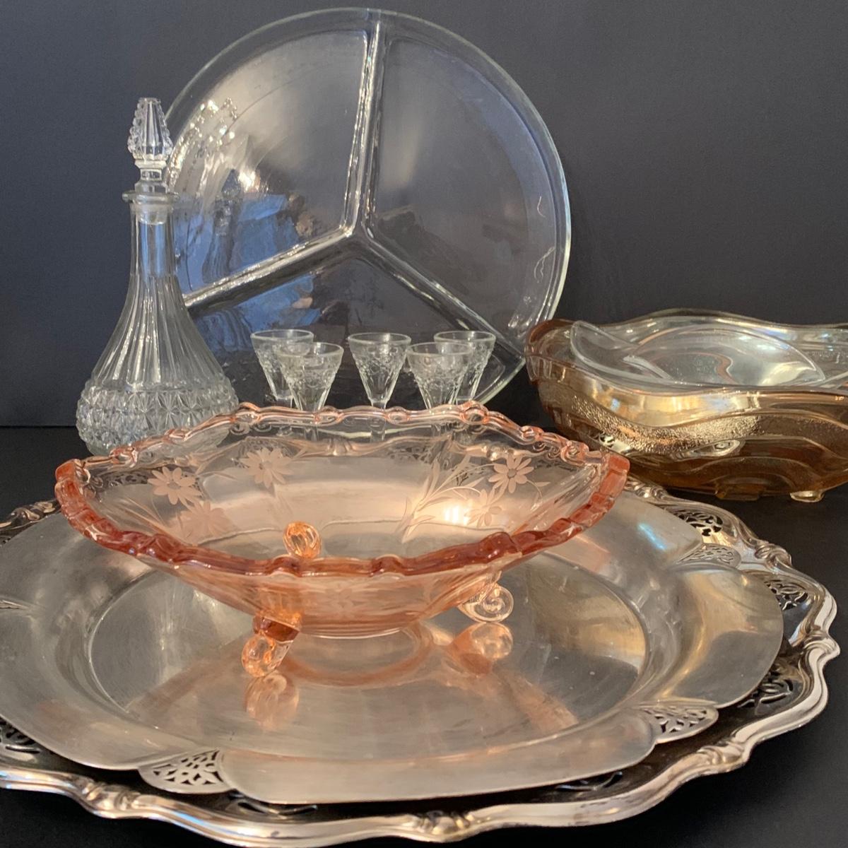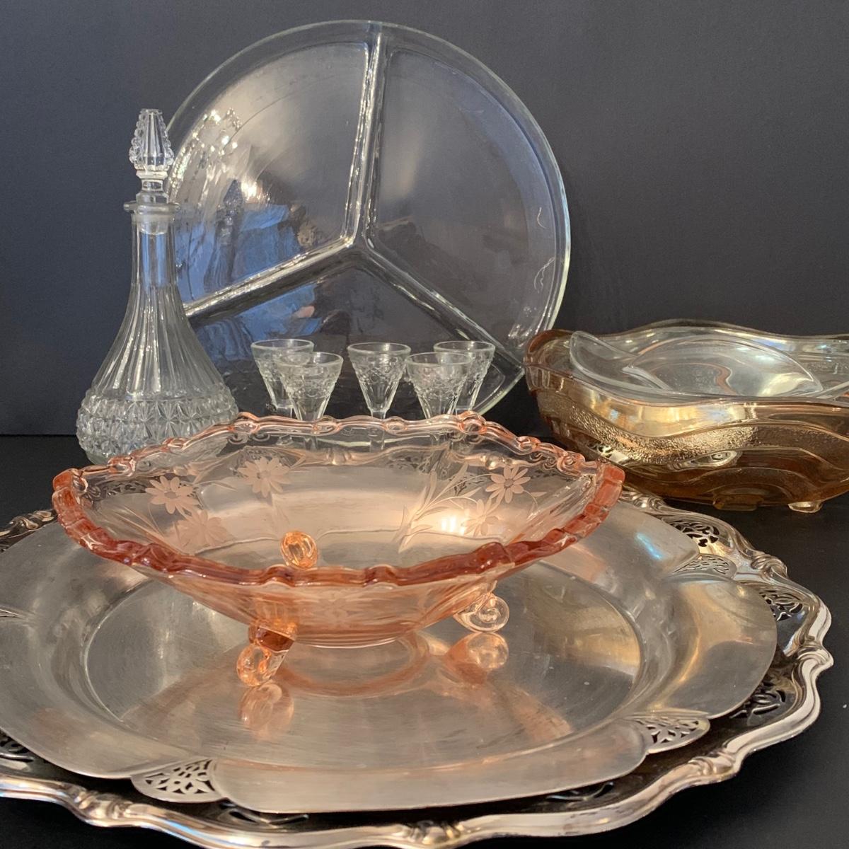LOT 75R: Vintage Crystal/Glass Collection w/Silver Plate Serving Platters