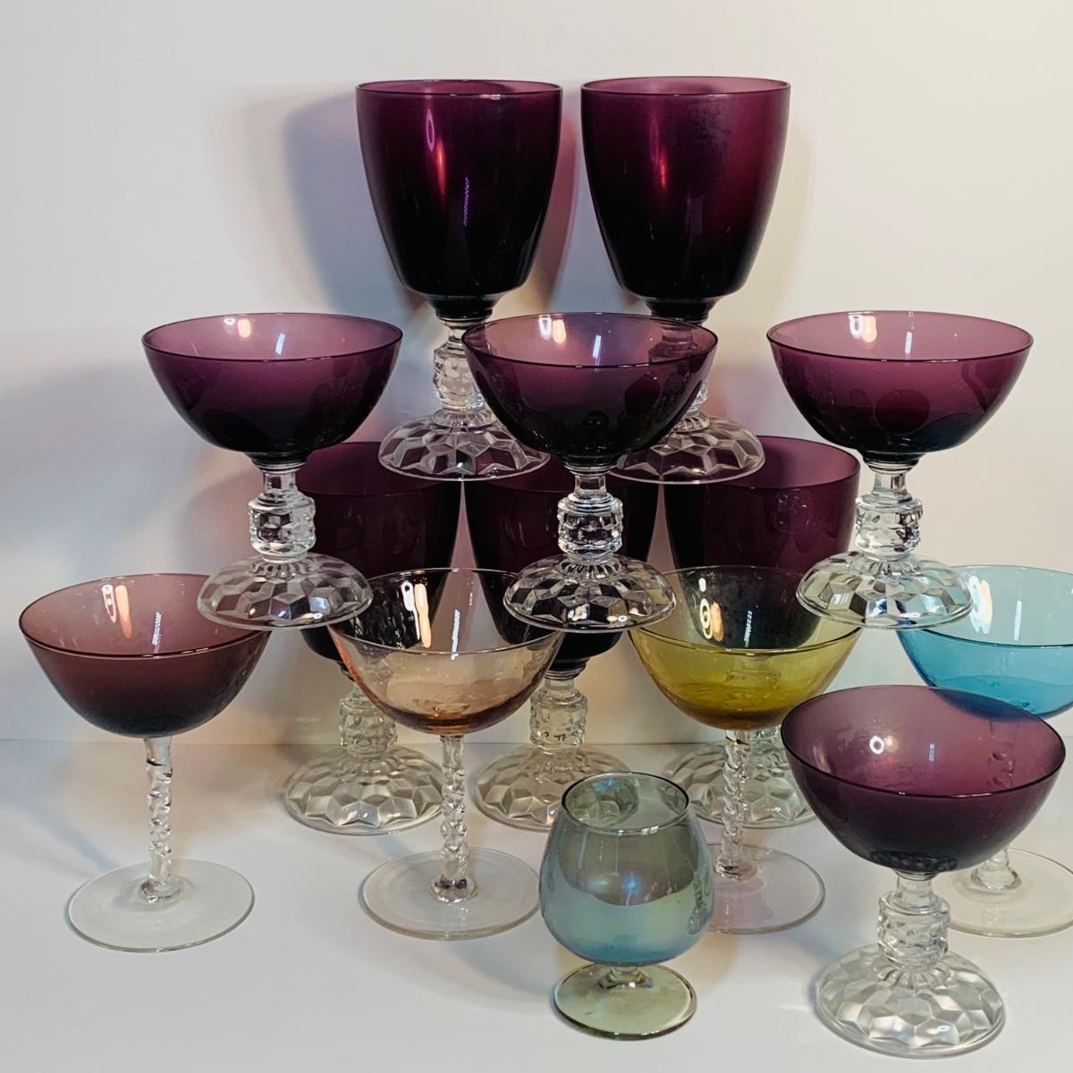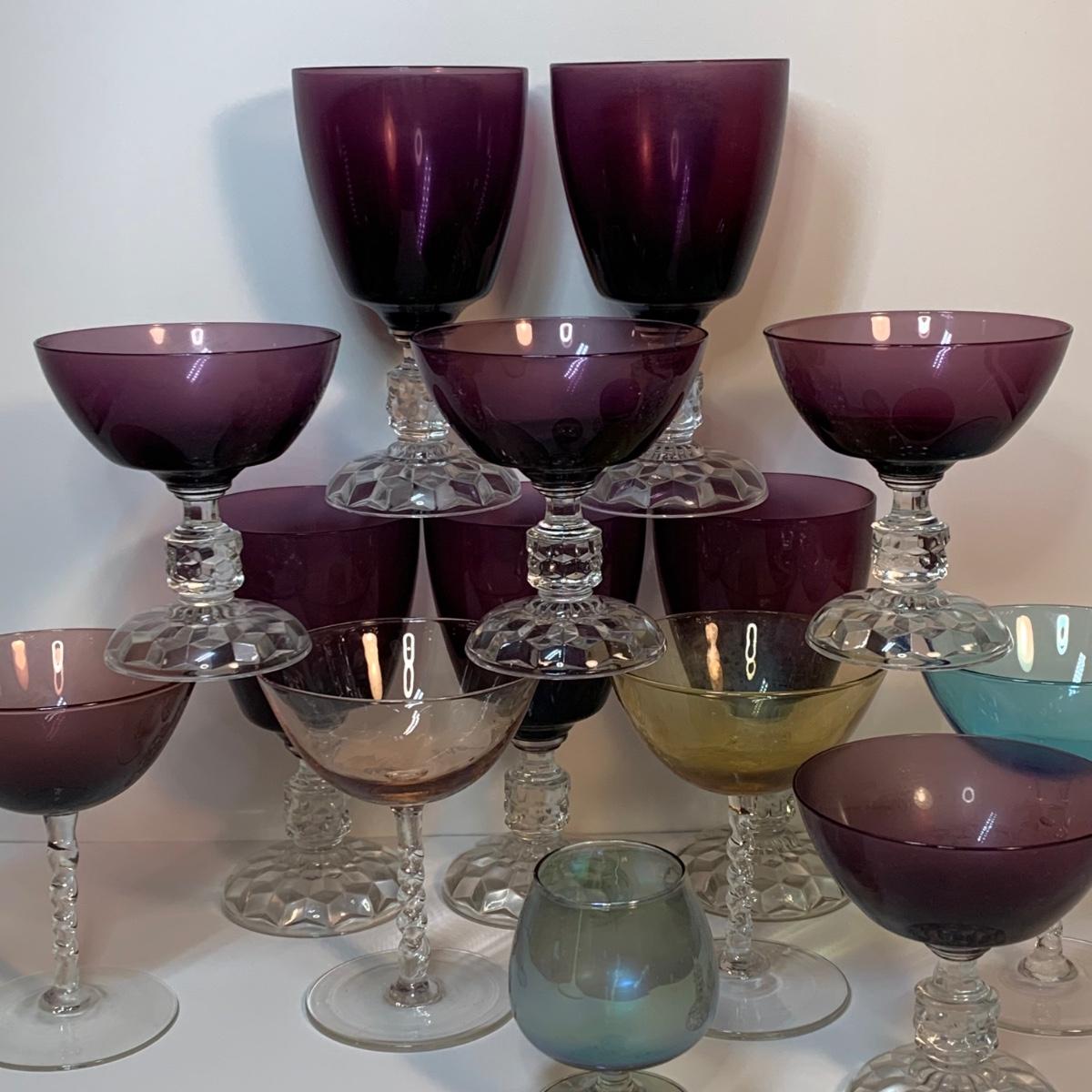 LOT 79R: Vintage Fostoria American Lady Amethyst Footed Glassware & More