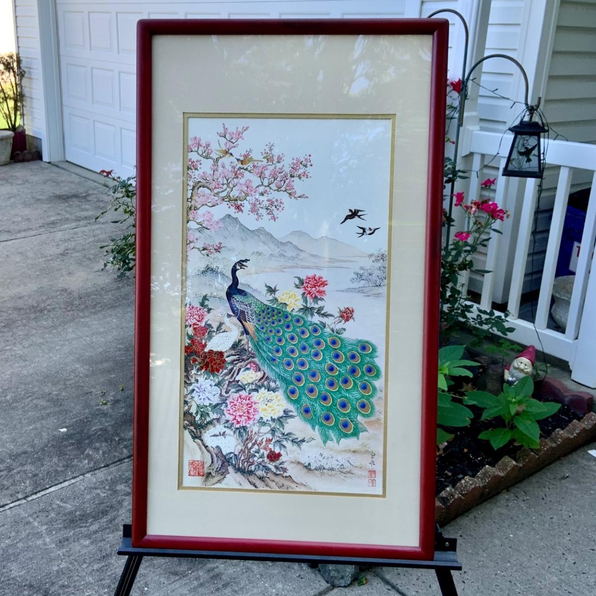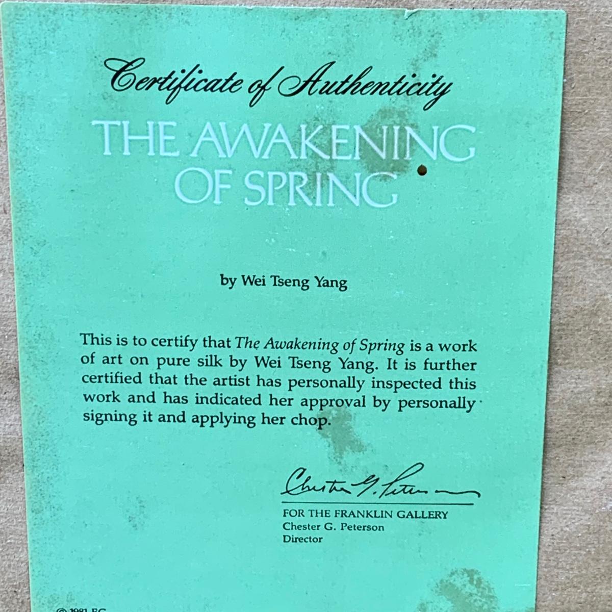 LOT:88G: Wei Tseng Yang Framed Art on Silk"The Awakening of Spring" with COA