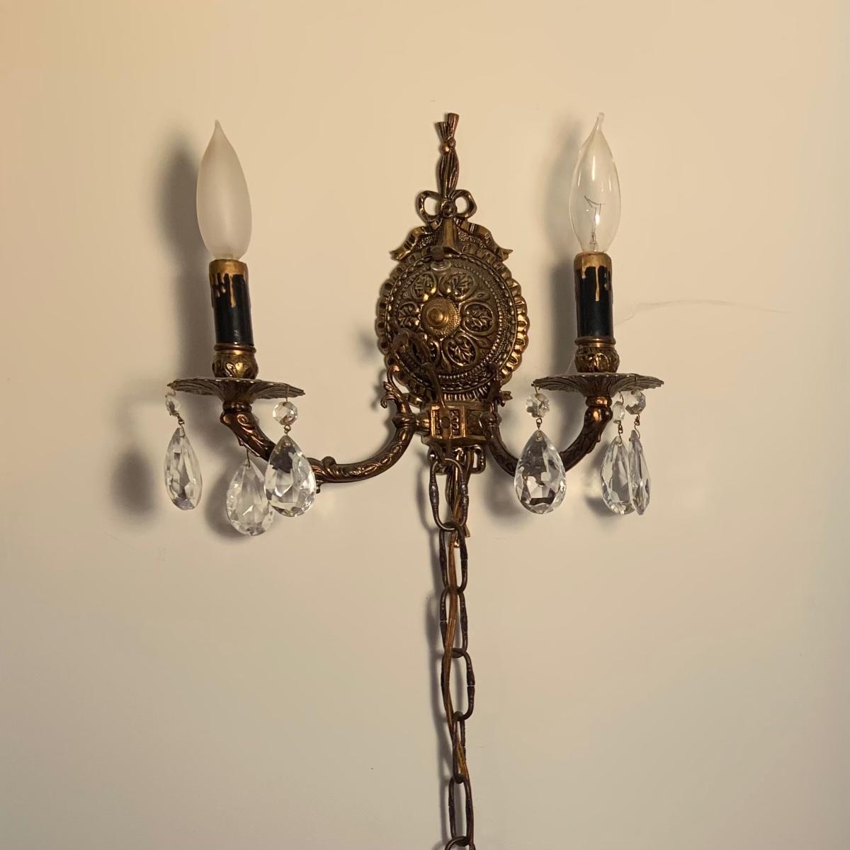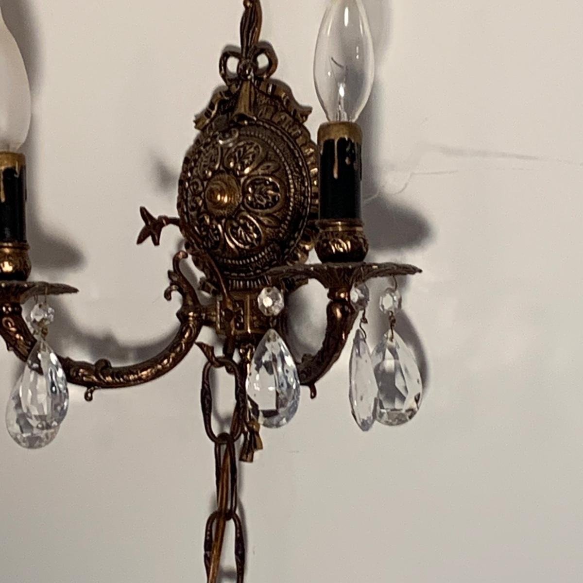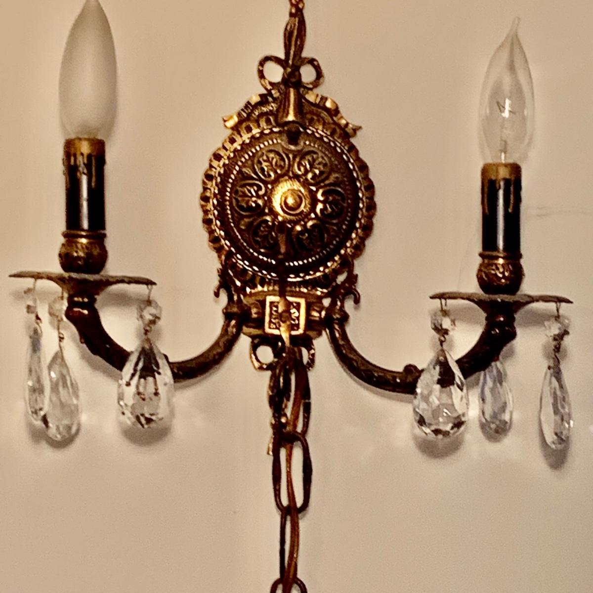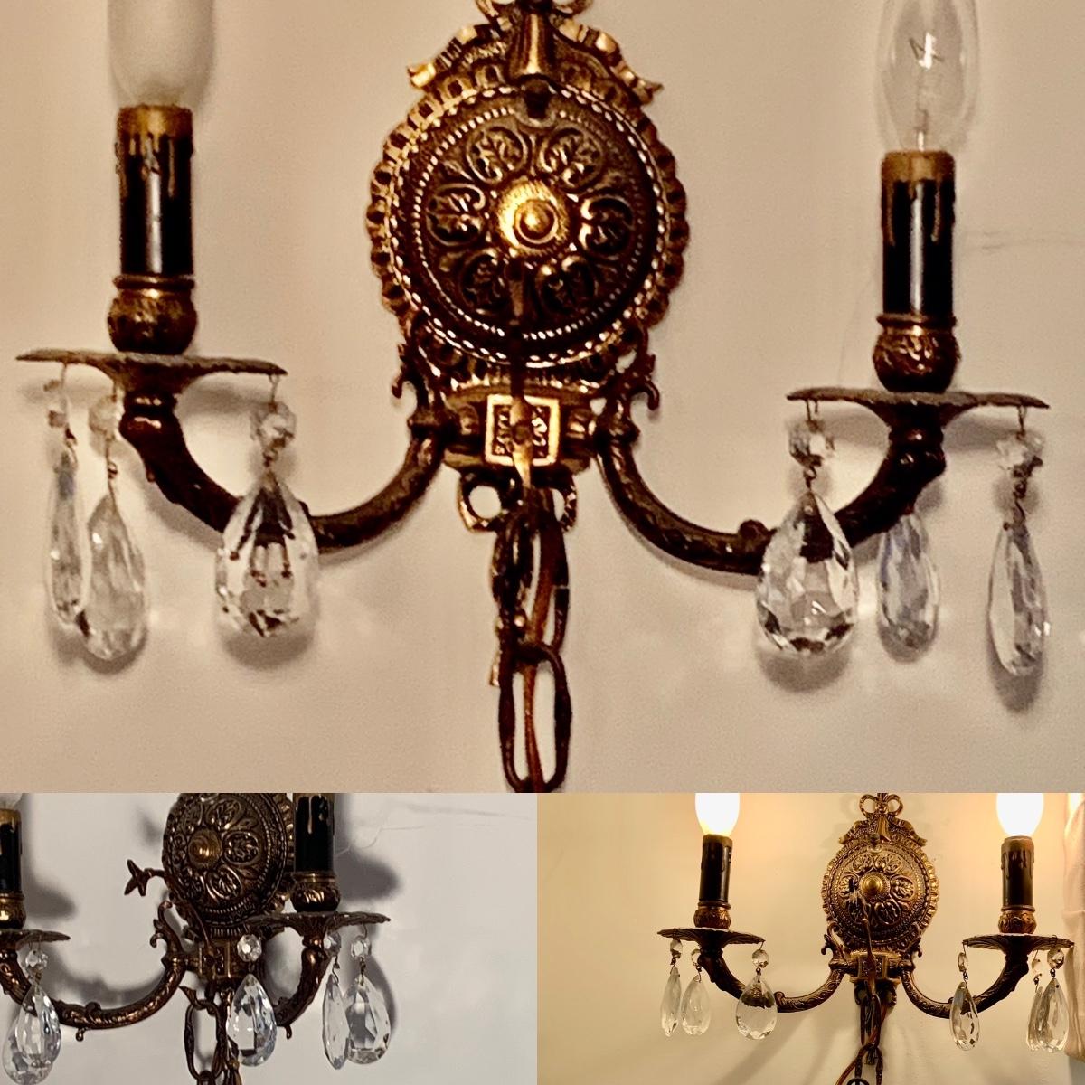 LOT:90G: Two (2) Vintage Electric Candelabra Wall Sconces with Crystals