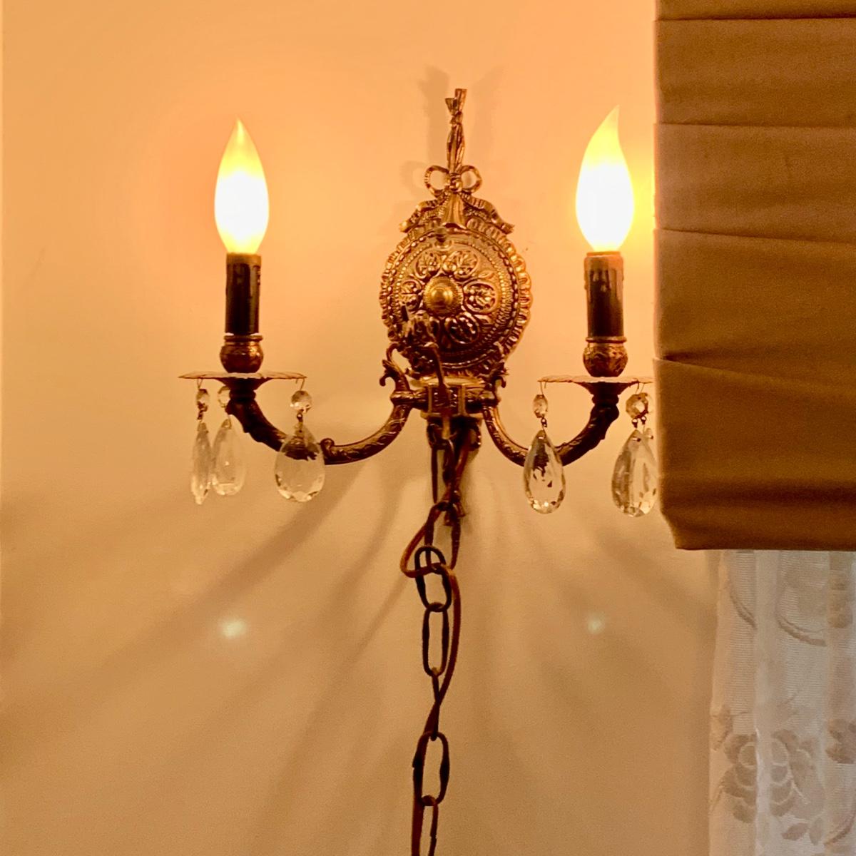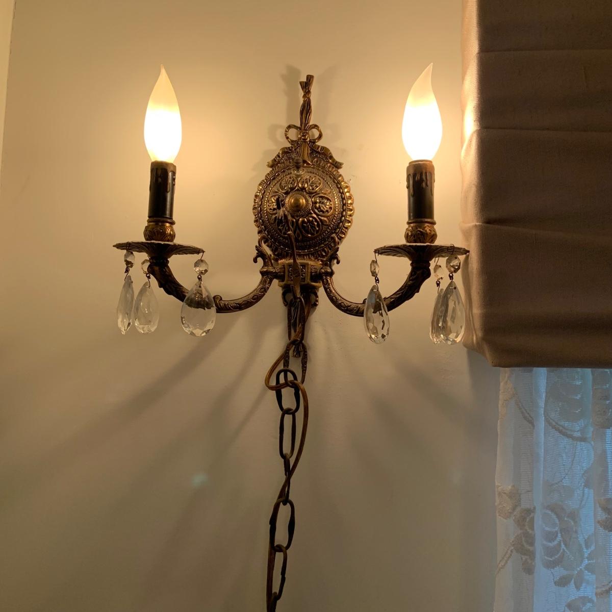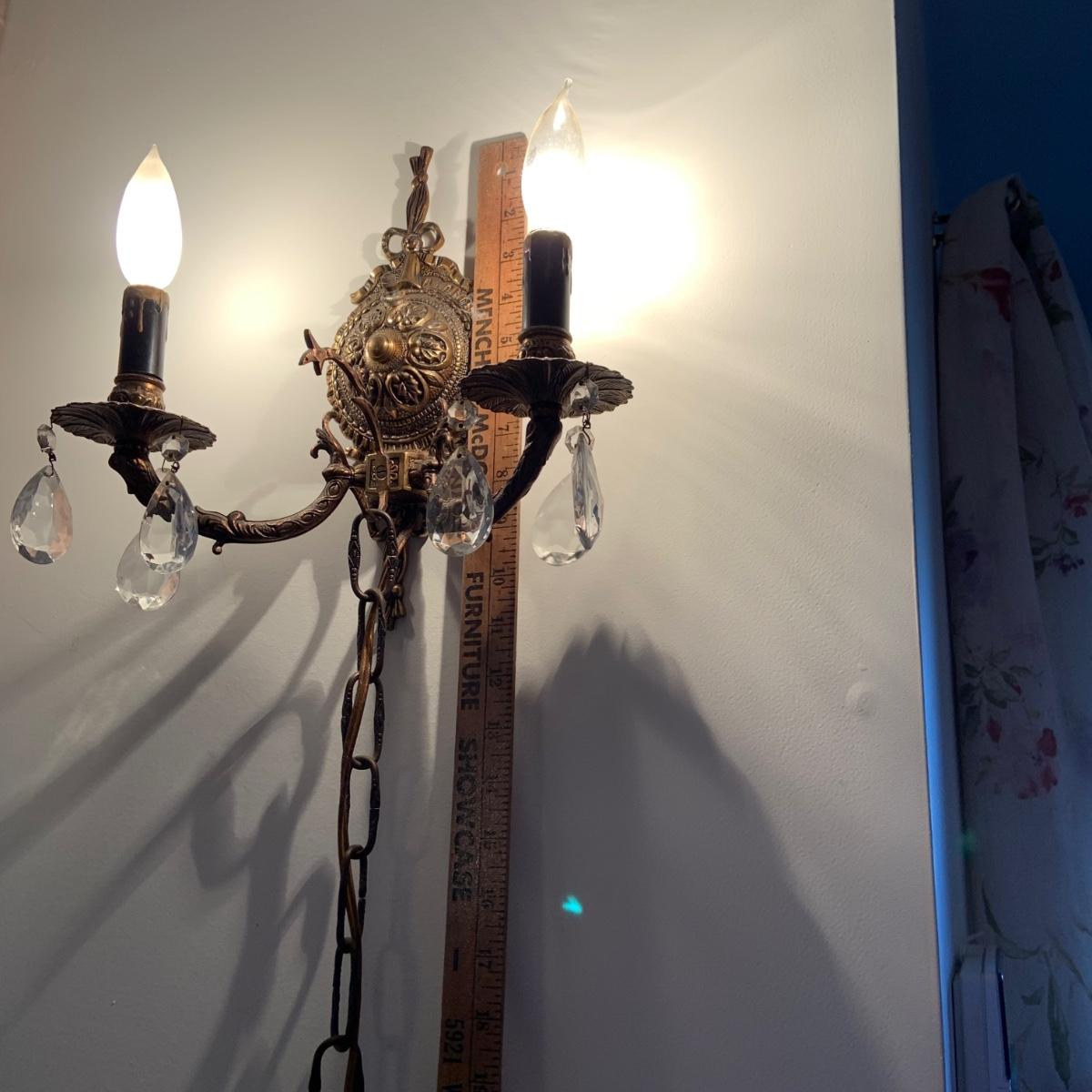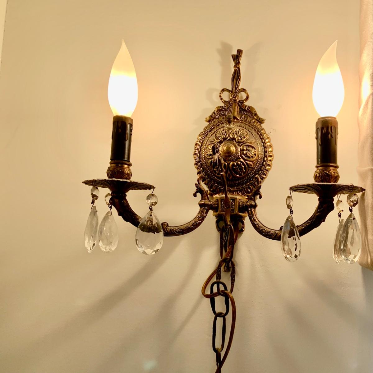 LOT:90G: Two (2) Vintage Electric Candelabra Wall Sconces with Crystals