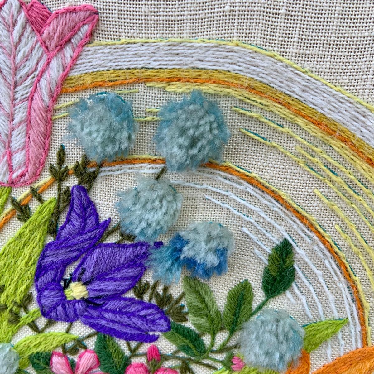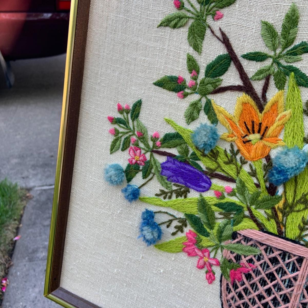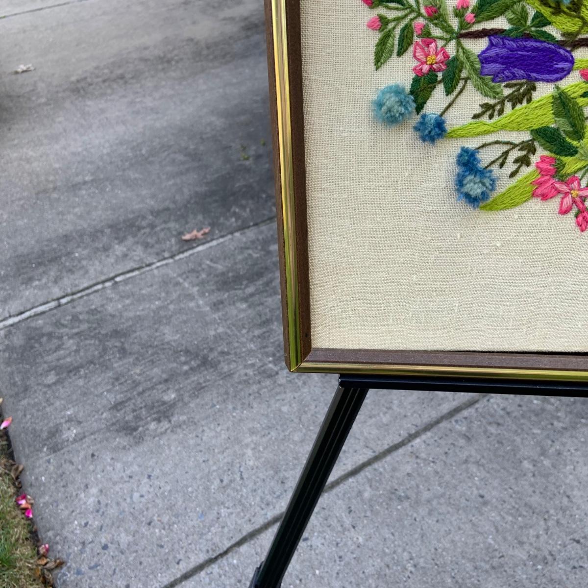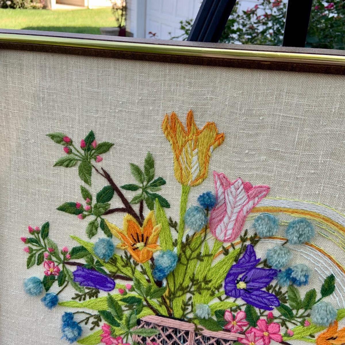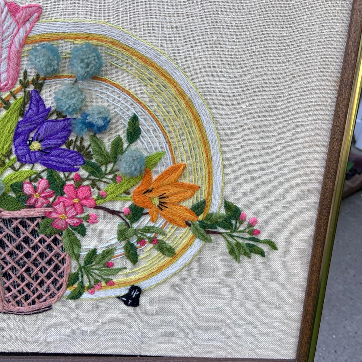 LOT:96G:Vintage Hand Crafted Framed Crewel Embroidered Flowers