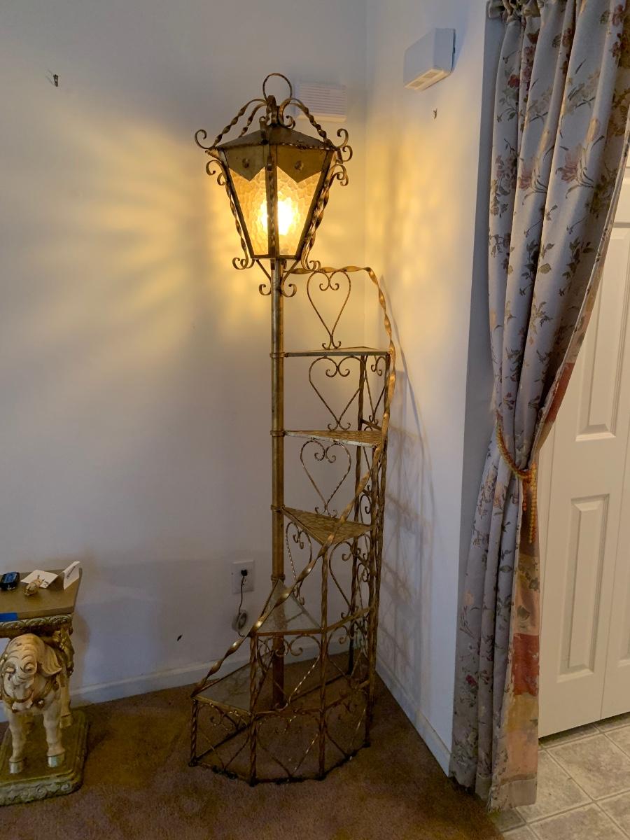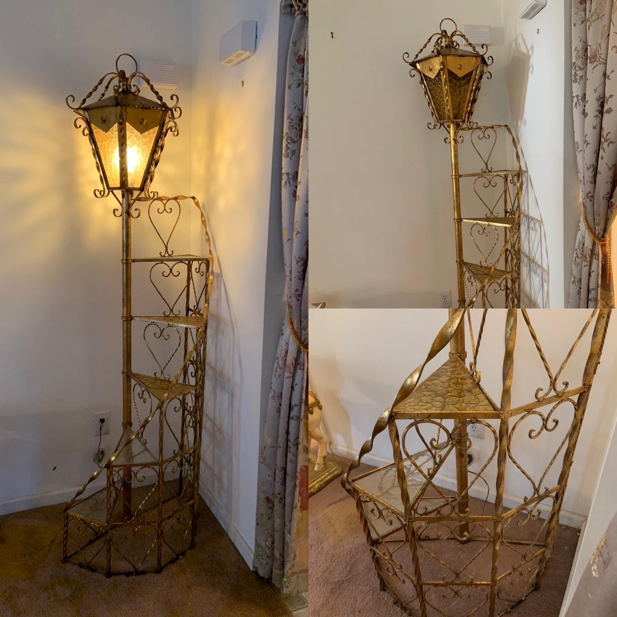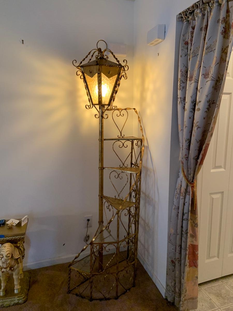 LOT:99G: Vintage 6 Tier Sprial Staircase Lamp Post Shelf/ Floor Lamp.