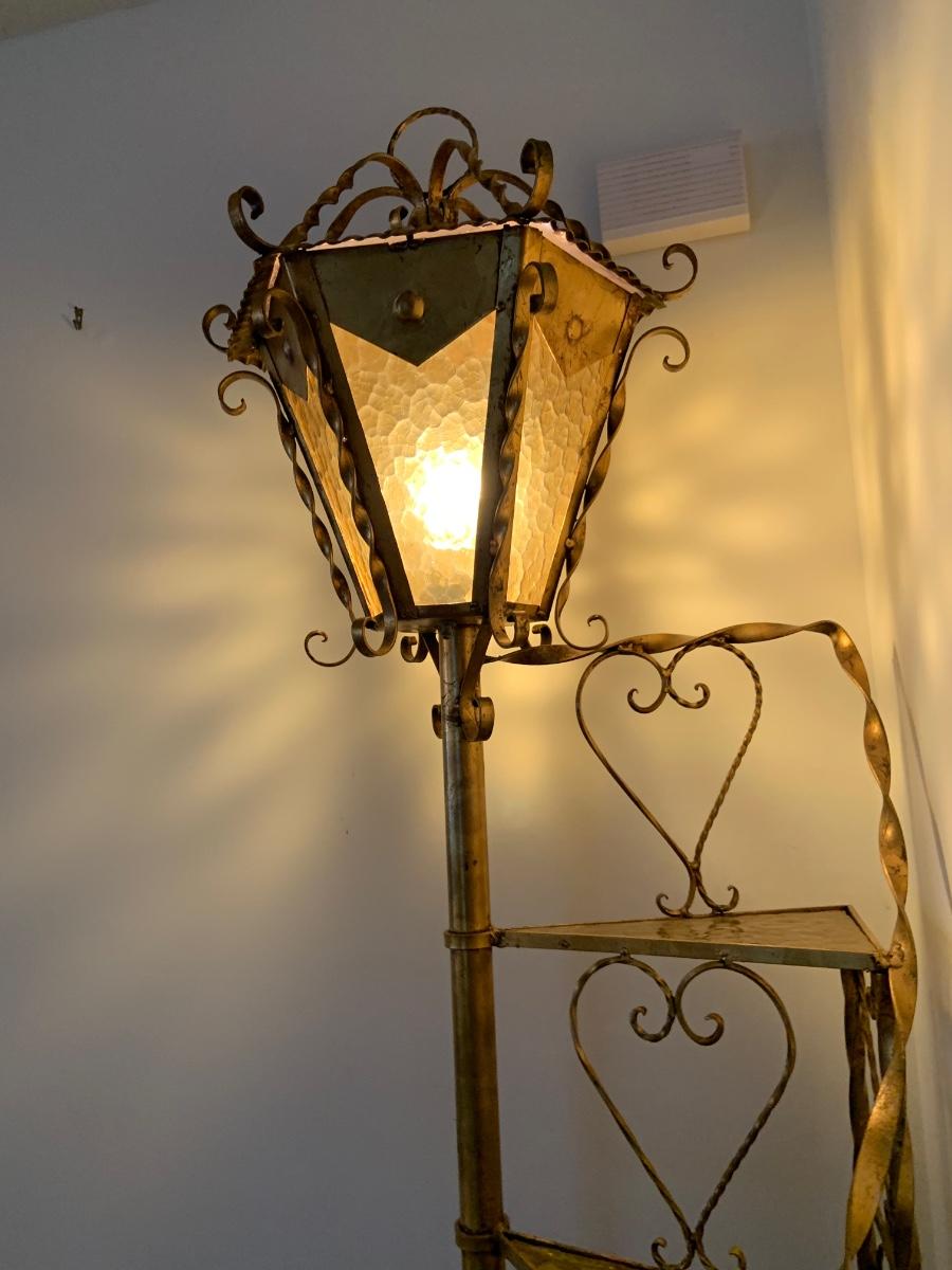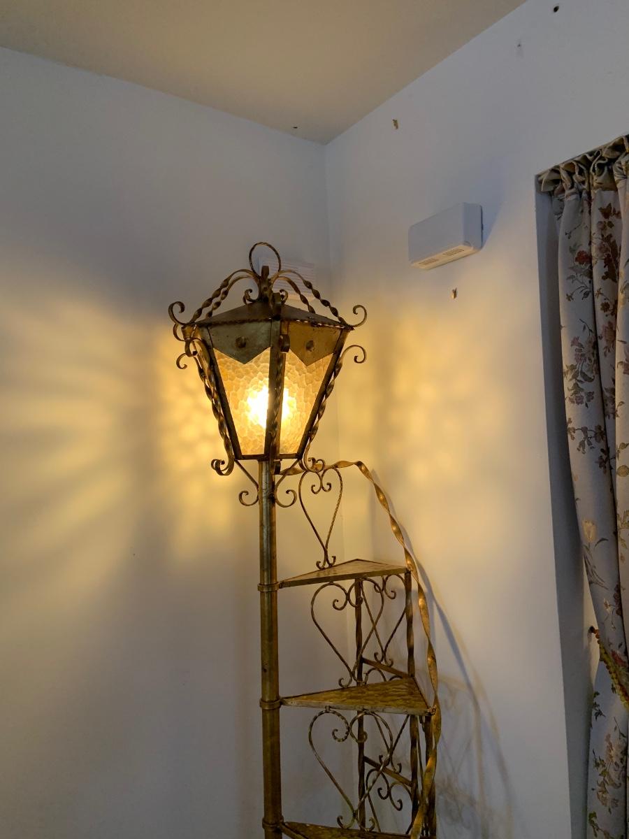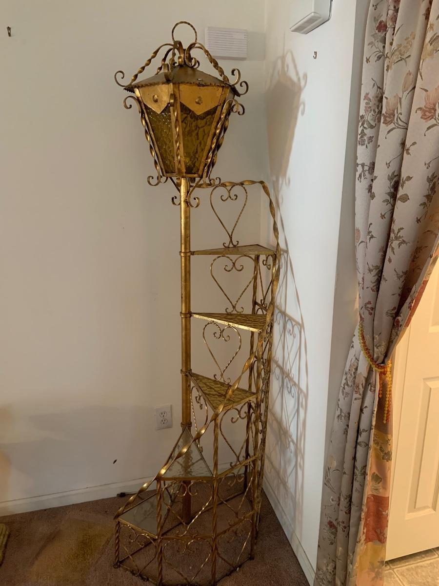 LOT:99G: Vintage 6 Tier Sprial Staircase Lamp Post Shelf/ Floor Lamp.