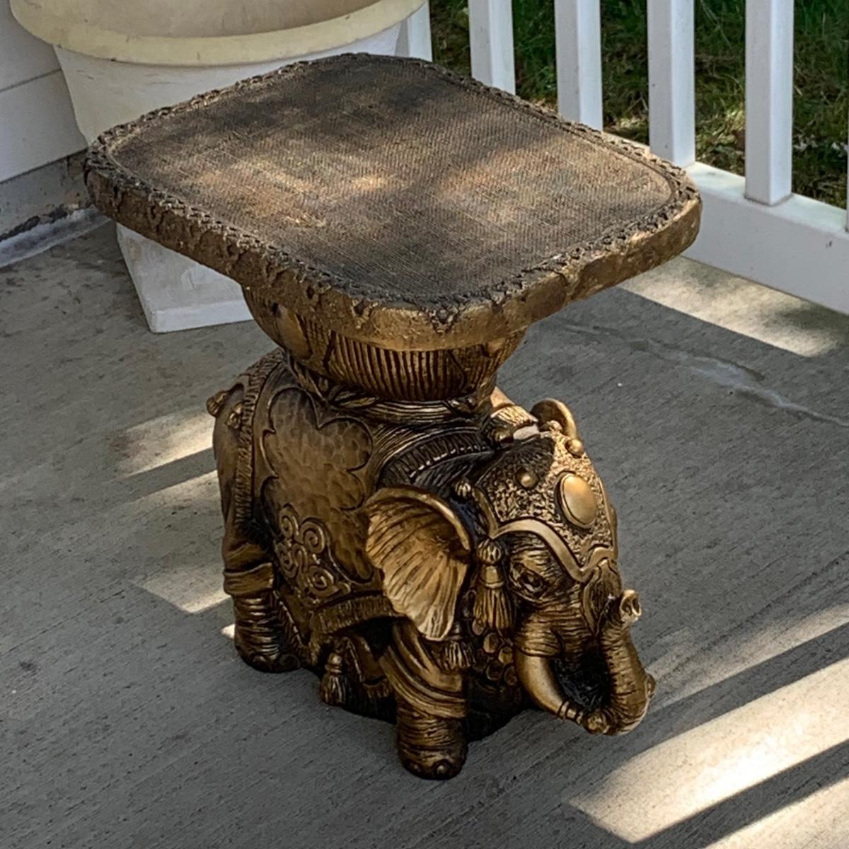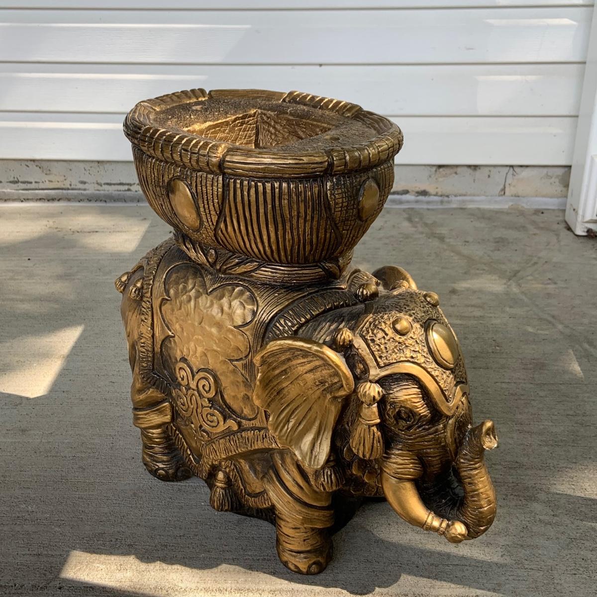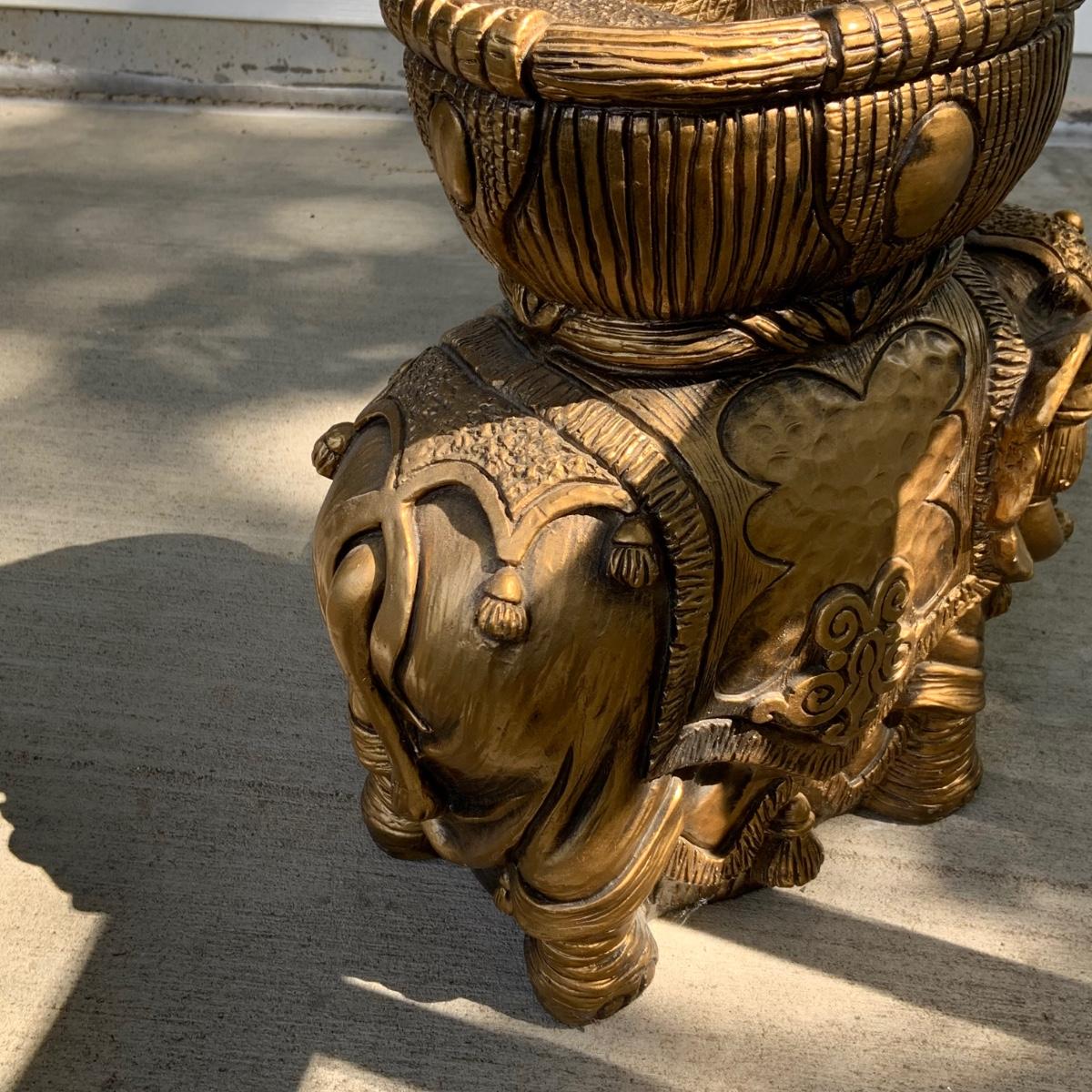 The trunk of the elephant has been repaired and there is some paint flaking. It measures 13 x 18 x 20" Please see all pictures as they are the best representation of the items. The pictures show condition, measurements if taken, and what is included in the lot. Due to the large amount that we photograph and the time frame, we are not always able to take measurements. All items unless noted, are pre-owned and have been used. If you purchased furniture, you must bring help. We do not allow one person to carry large furniture out on their own. Bring help, tools and a truck for the safety of our client’s homes, and your personal safety. Any damages that result to the property including walls, and floors due to moving of the furniture will be charged to the buyer. Company policy. Thank you.