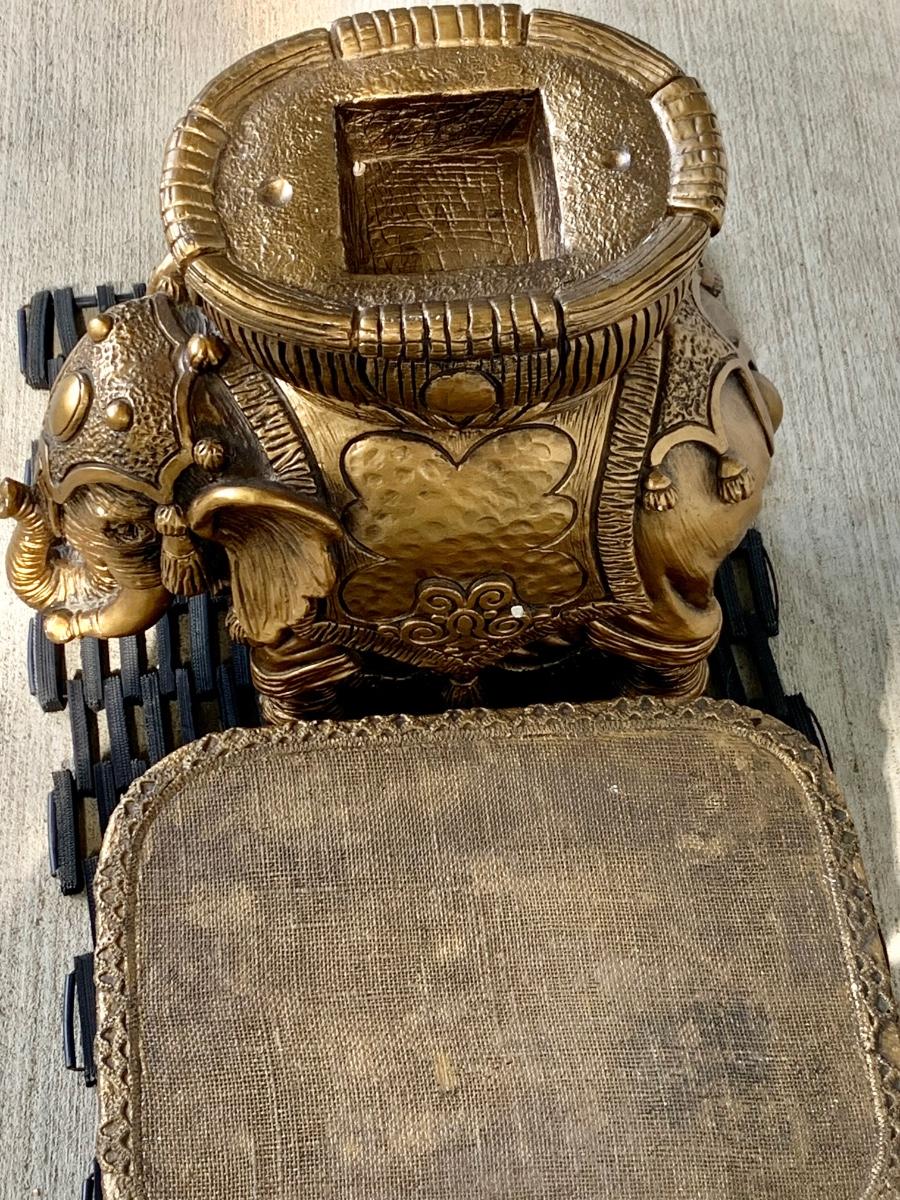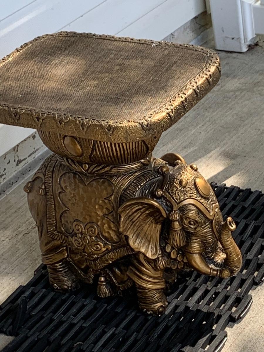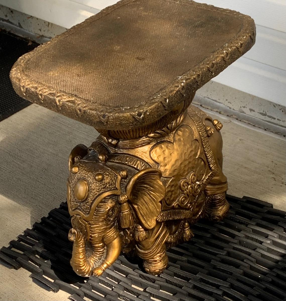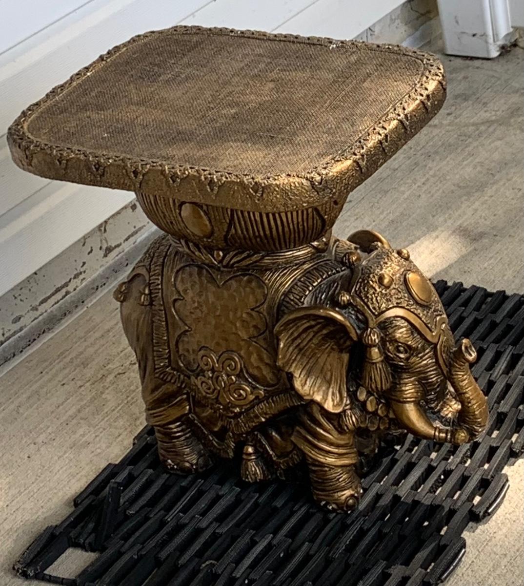 LOT:101G: Vintage Gold Bohemian Elephant Chalkware Table - The Top is a Separate Piece