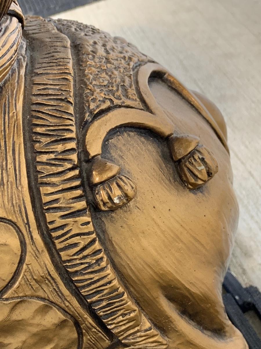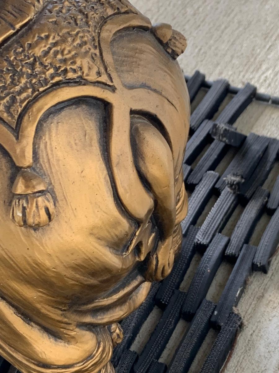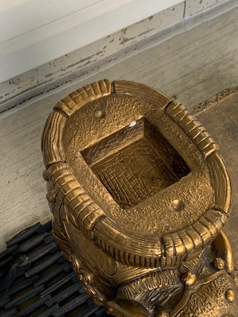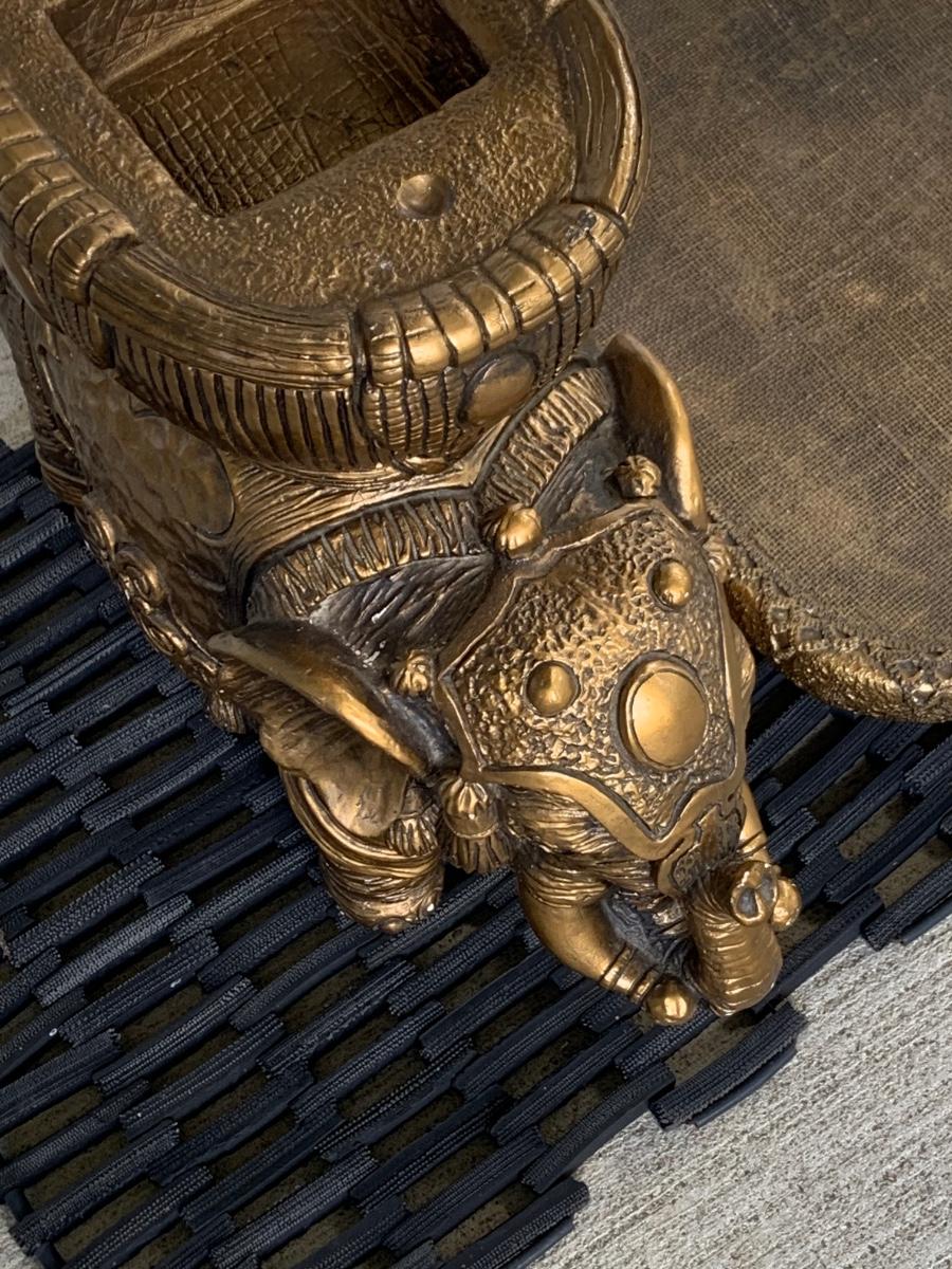LOT:101G: Vintage Gold Bohemian Elephant Chalkware Table - The Top is a Separate Piece