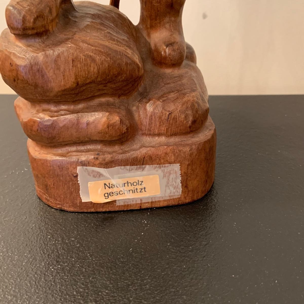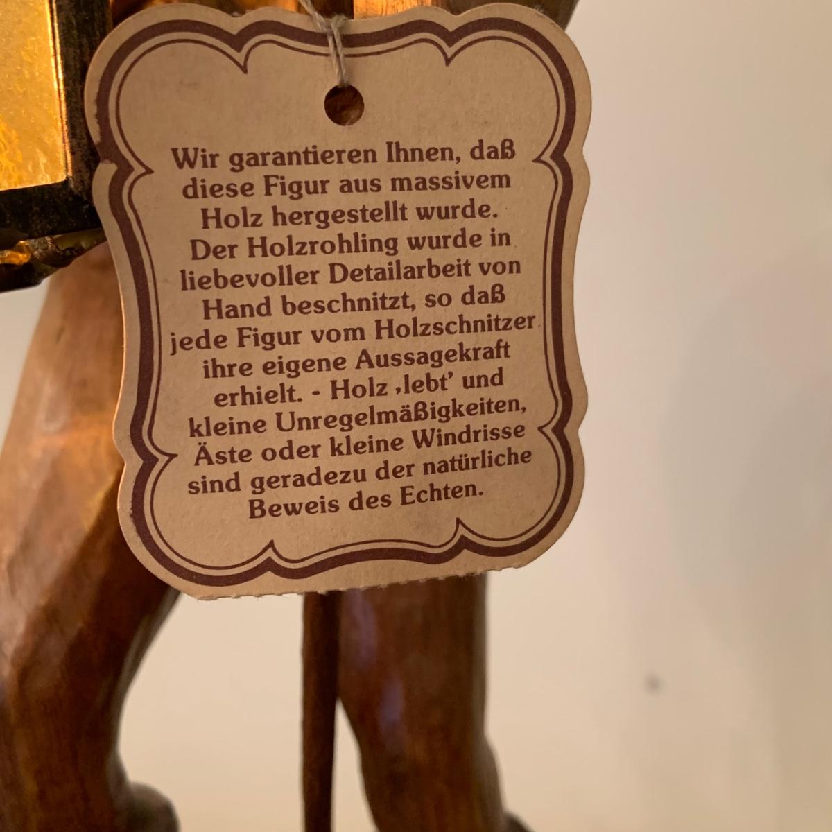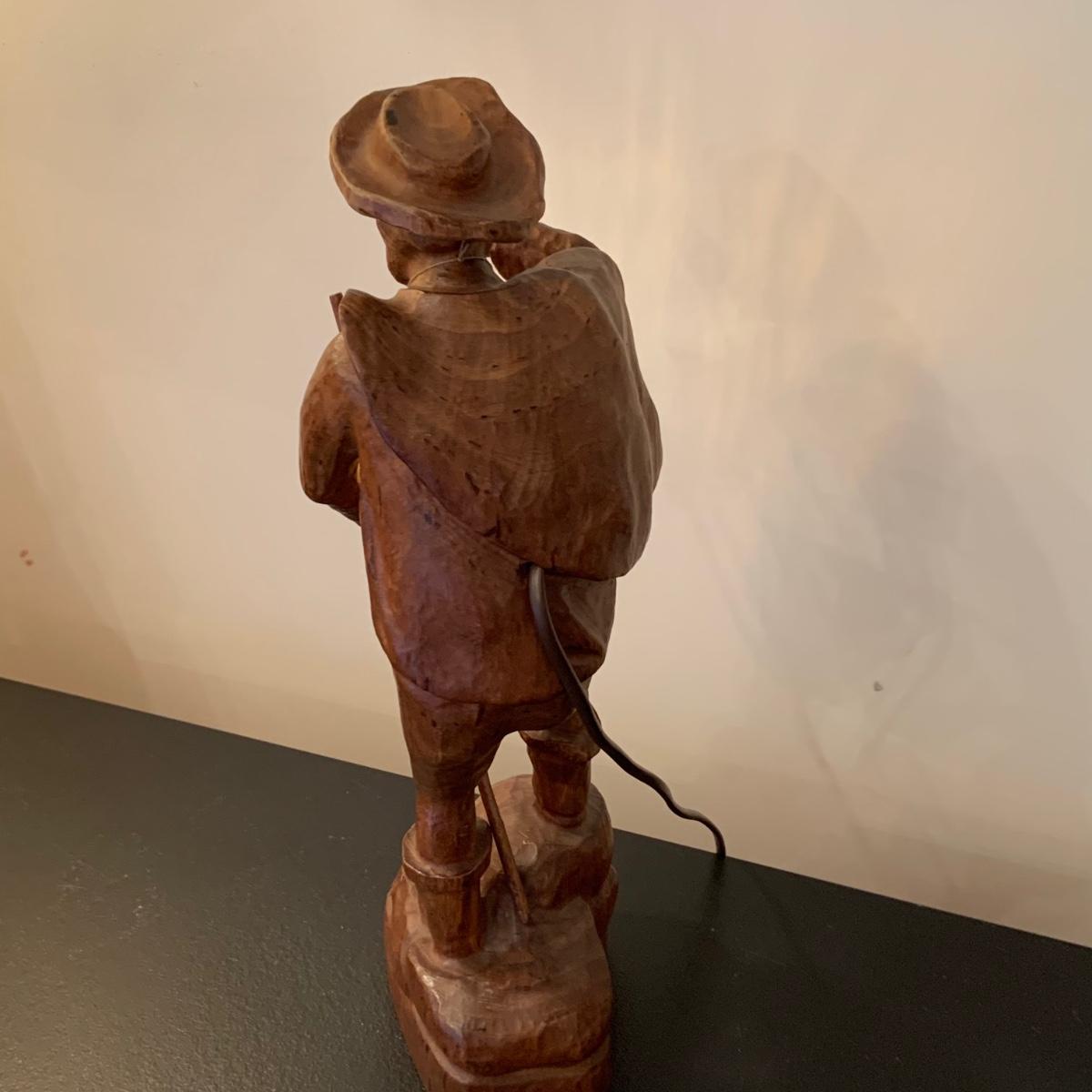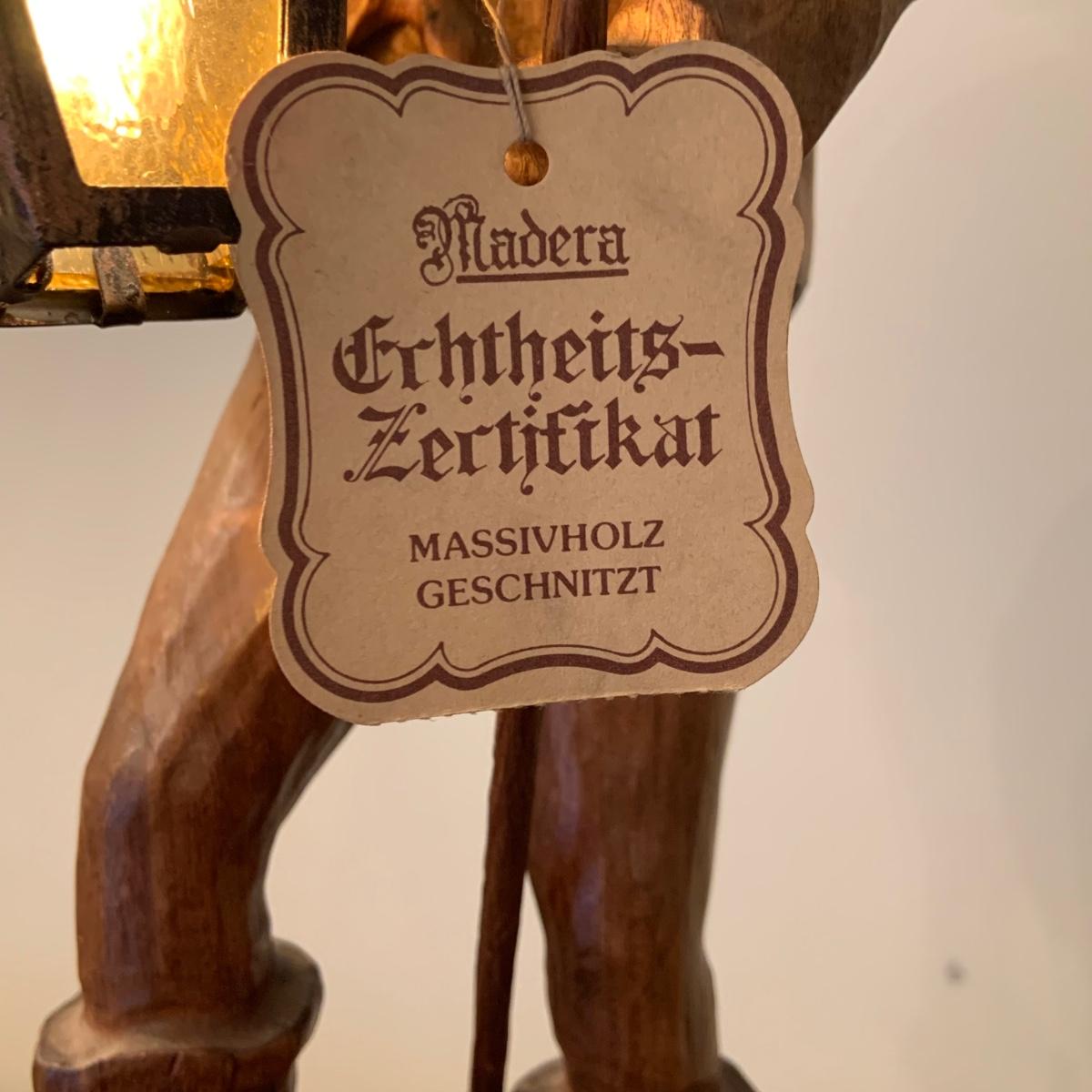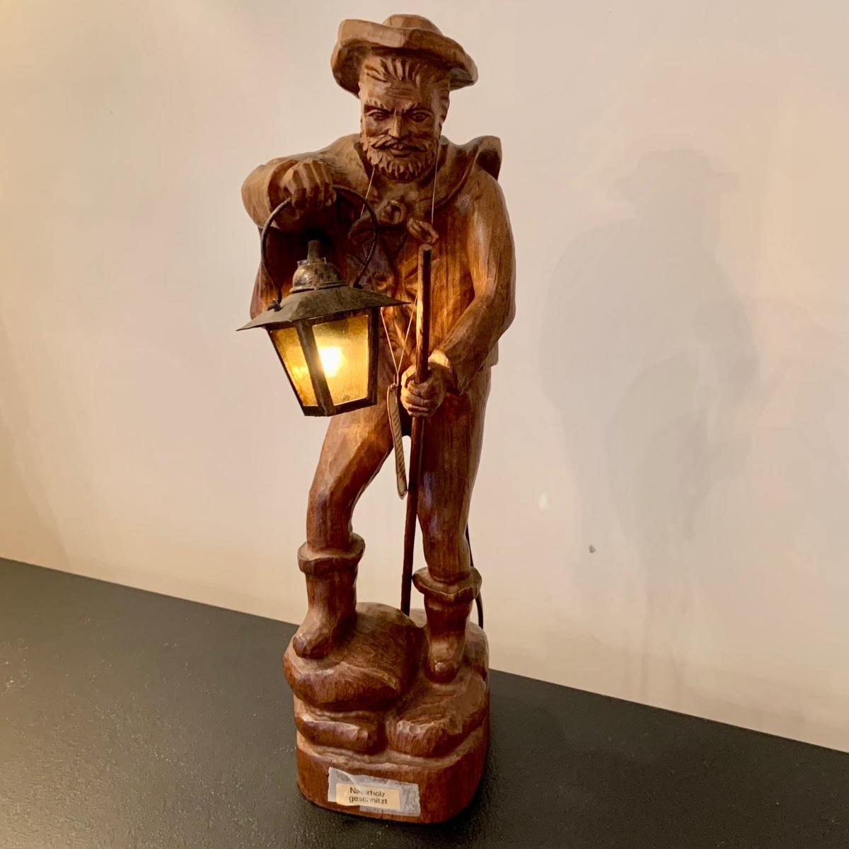 LOT:107G: Vintage Mid Century German Black Forest Carved Wooden Watchman Table Lamp with COA in German