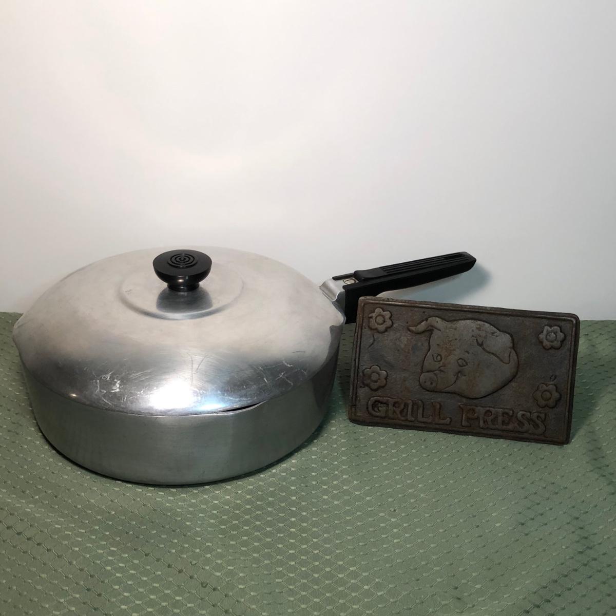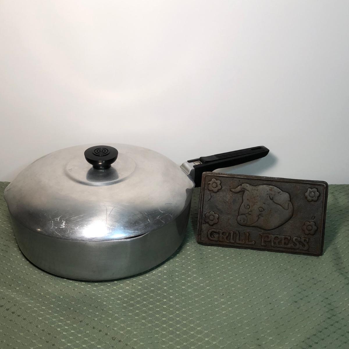 LOT 110M: Wagnerware Magnalite w/ Lid & Grill Press