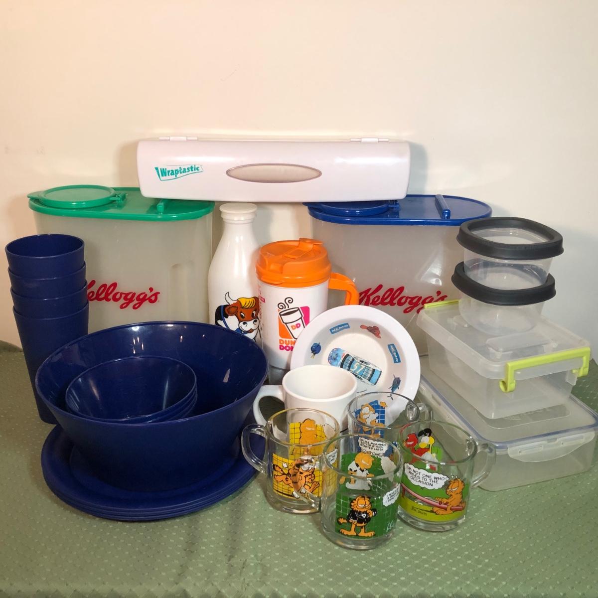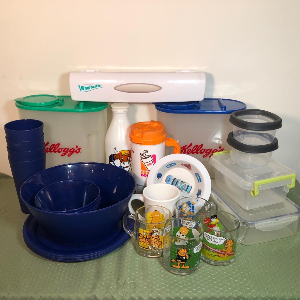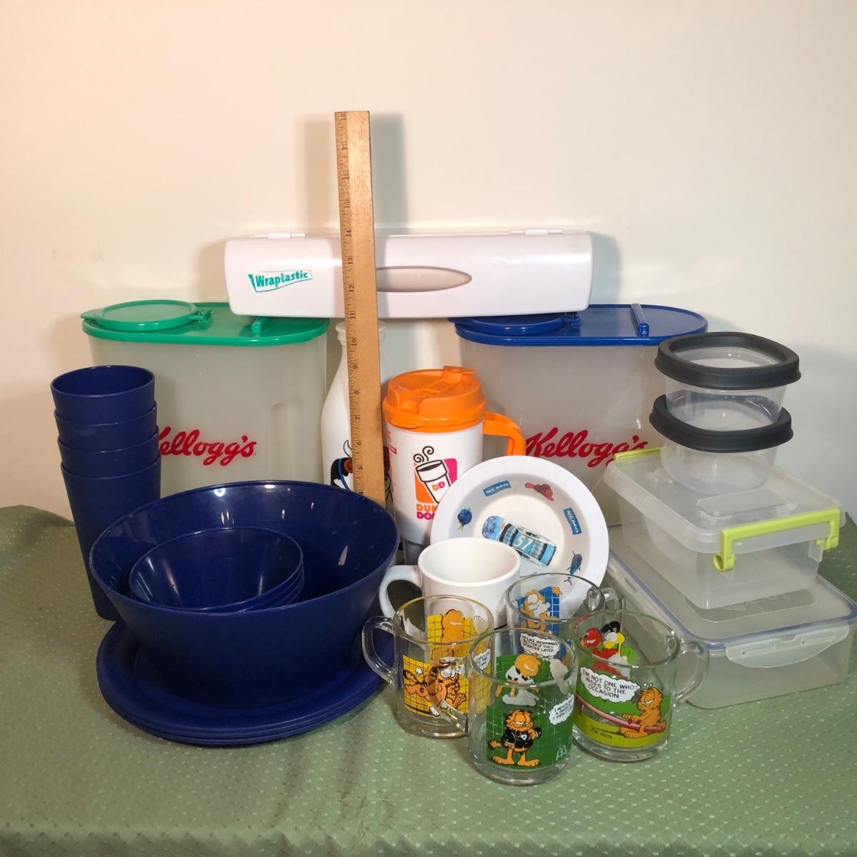 LOT 119M: Kitchen Collection - Kellogg's Cereal Storage Containers, Dunkin Donuts Mugs, McDonald's Garfield Glasses & More