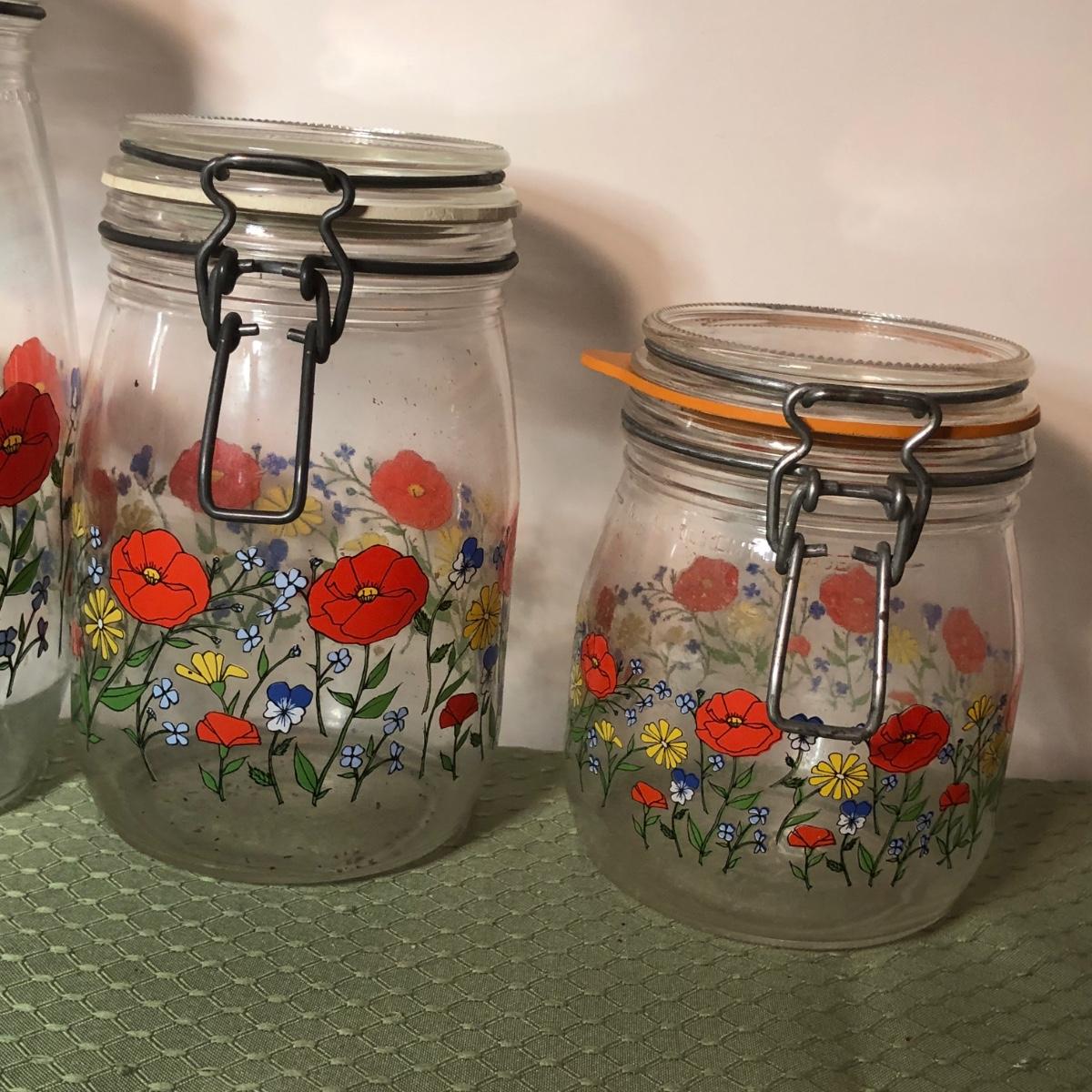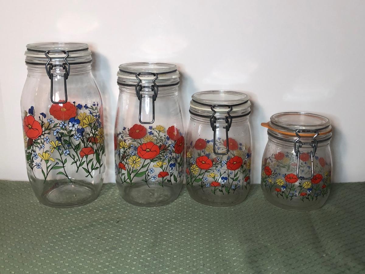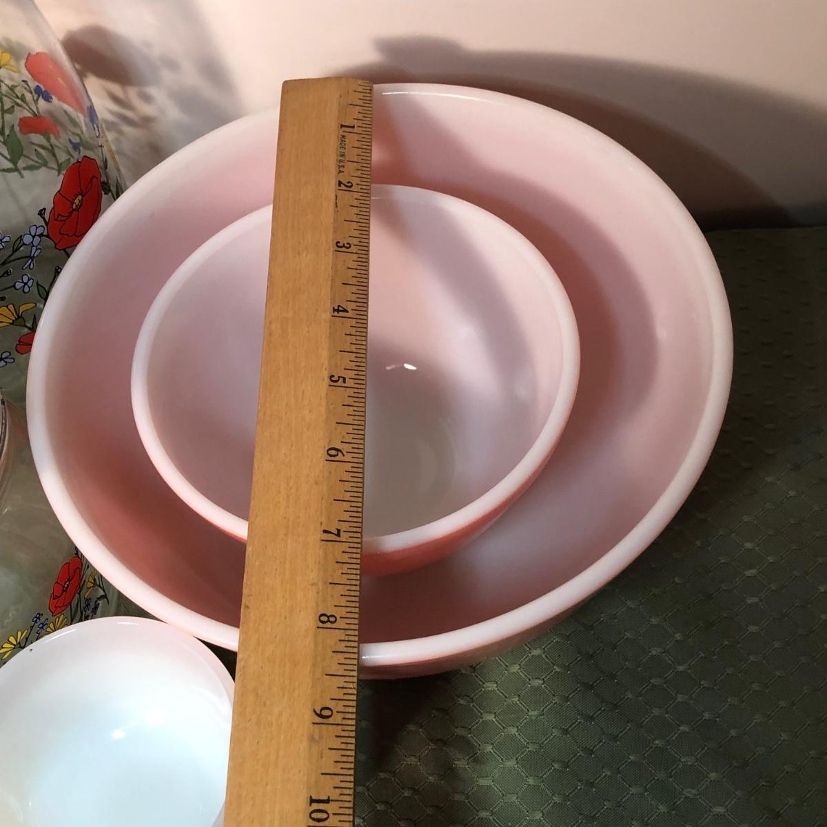 LOT 130M: Arc Glass Poppy Canisters, Pink Pyrex Mixing Bowls & More