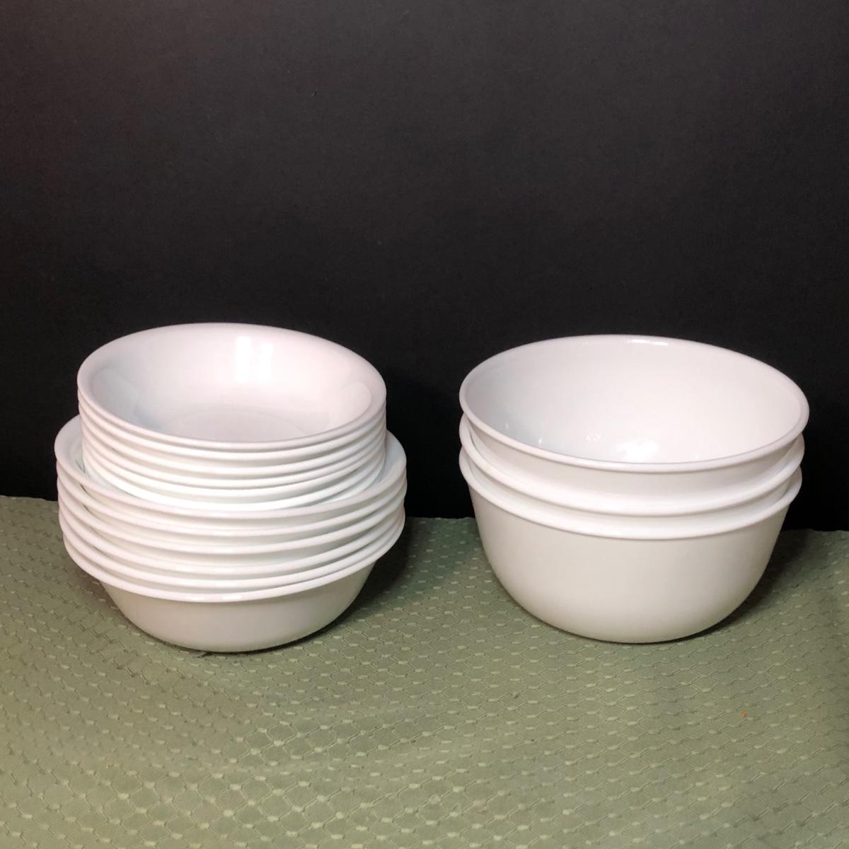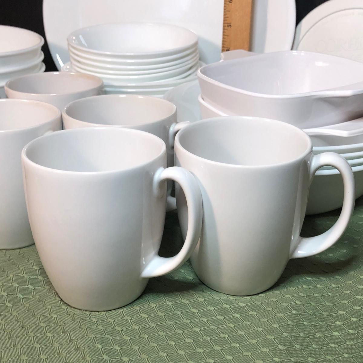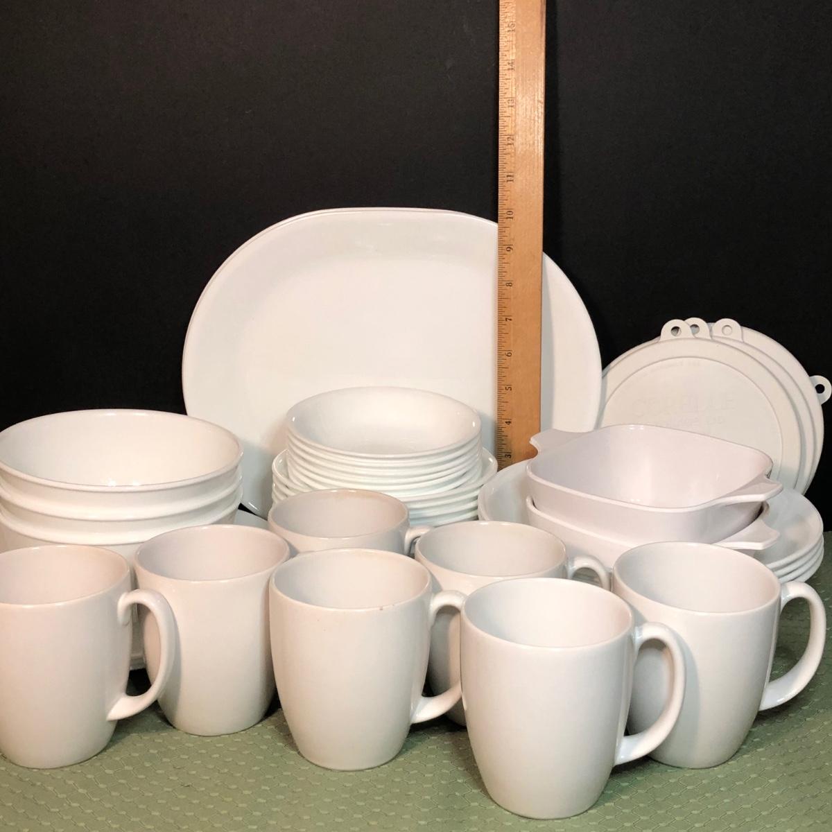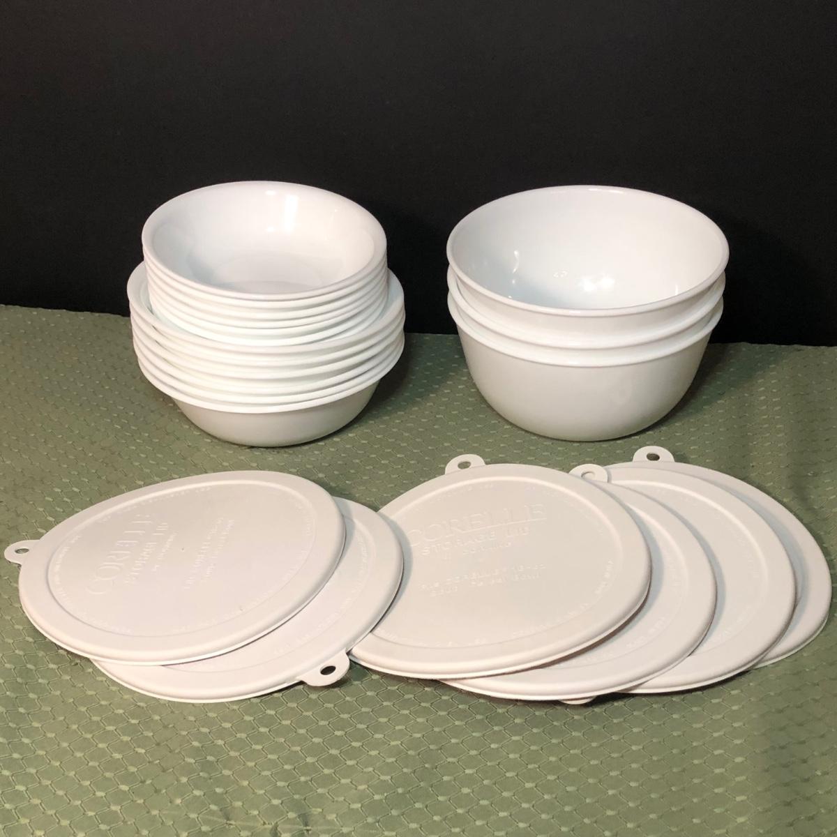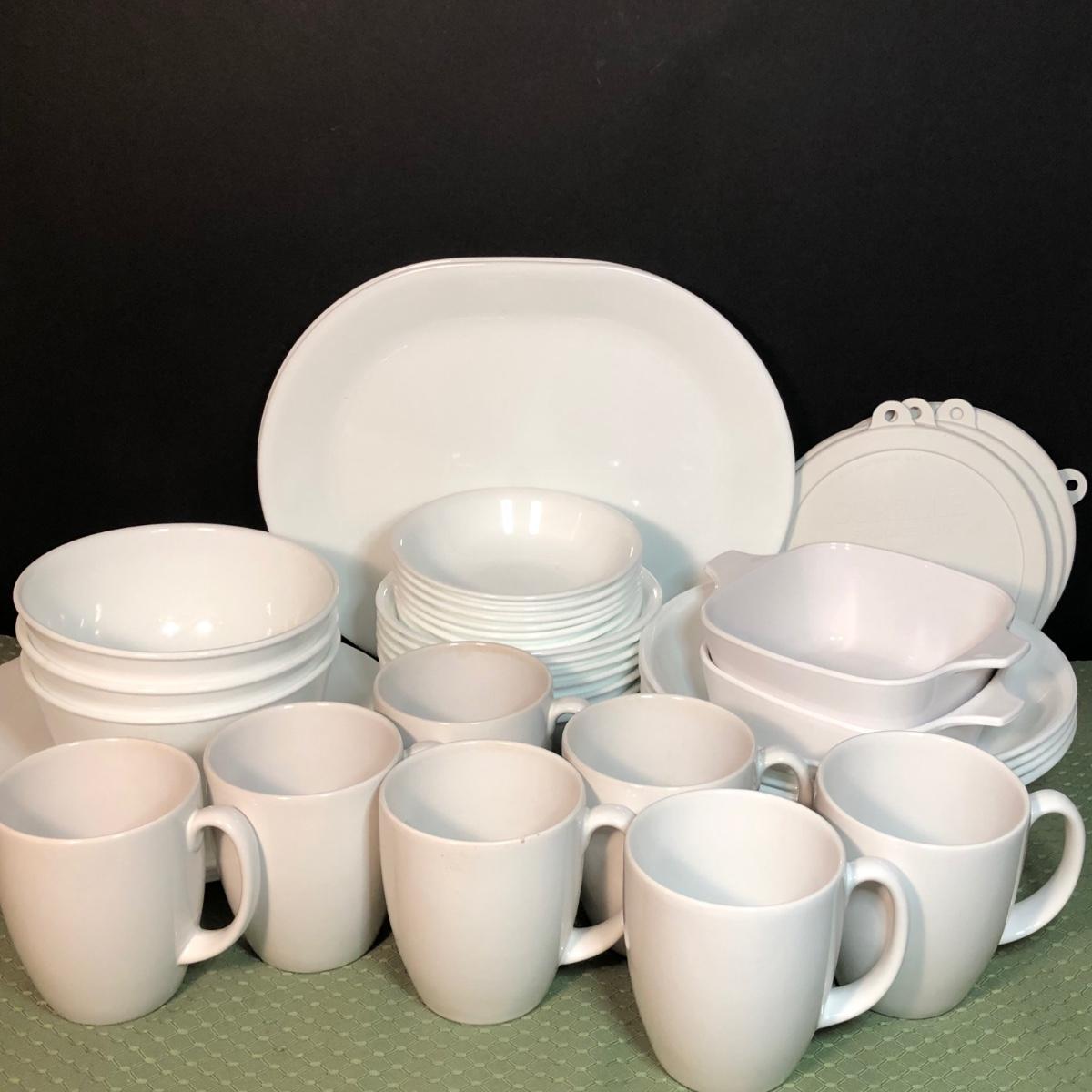 LOT 133M: Corelle Plates, Bowls, Mugs & Storage Lids