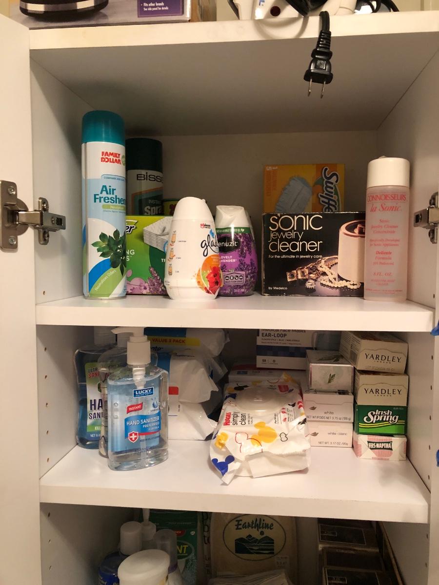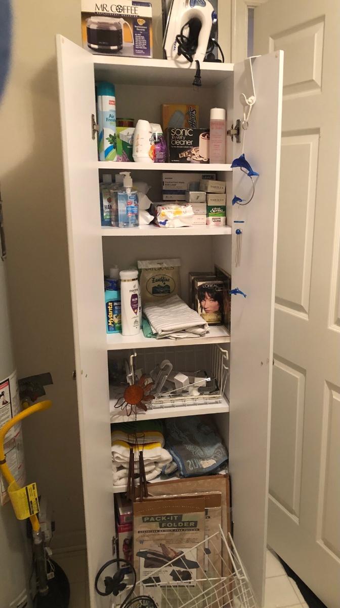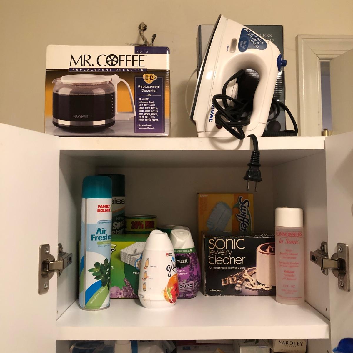 LOT 149M: White Cabinet & ALL of the Household Finds