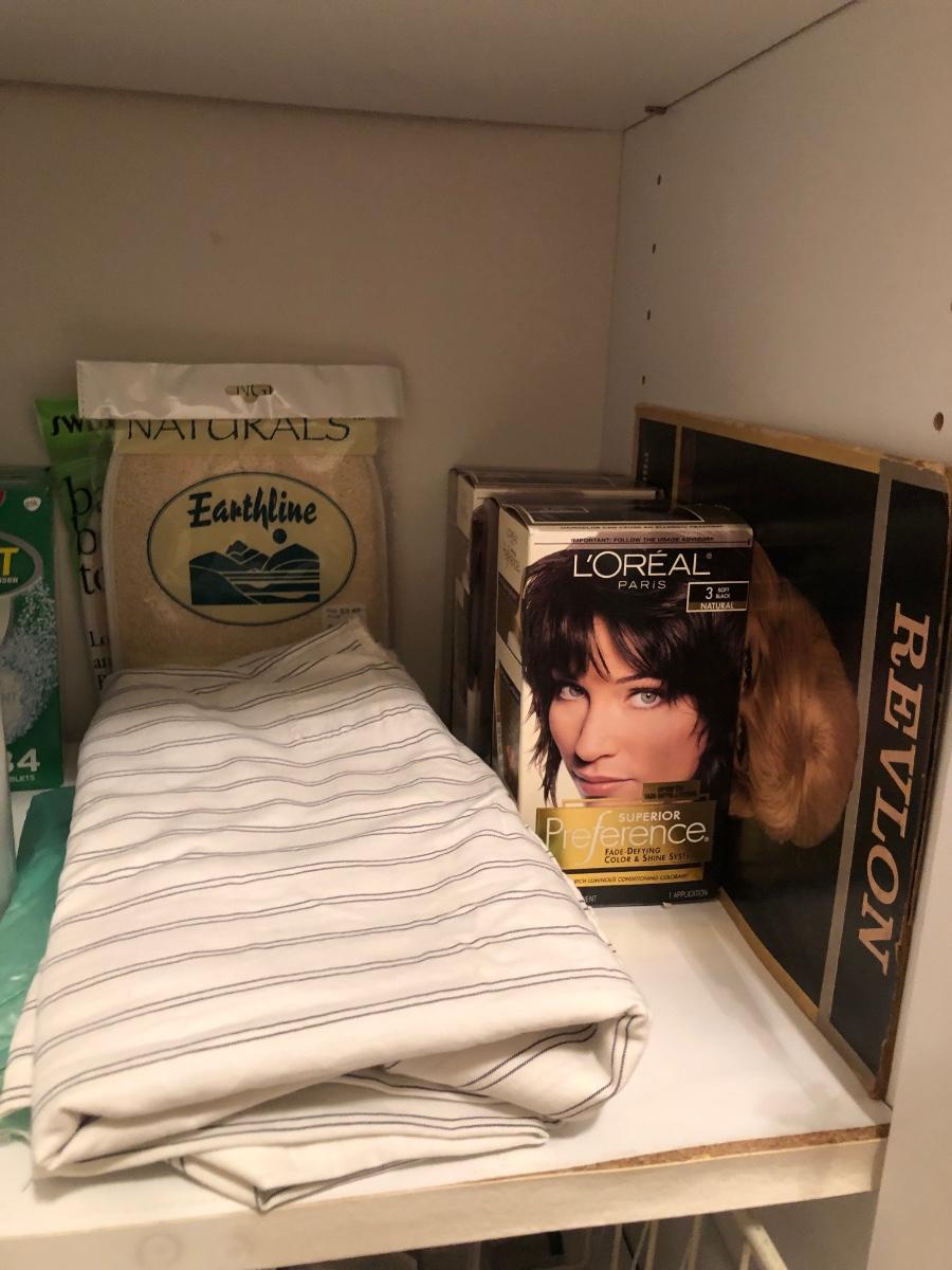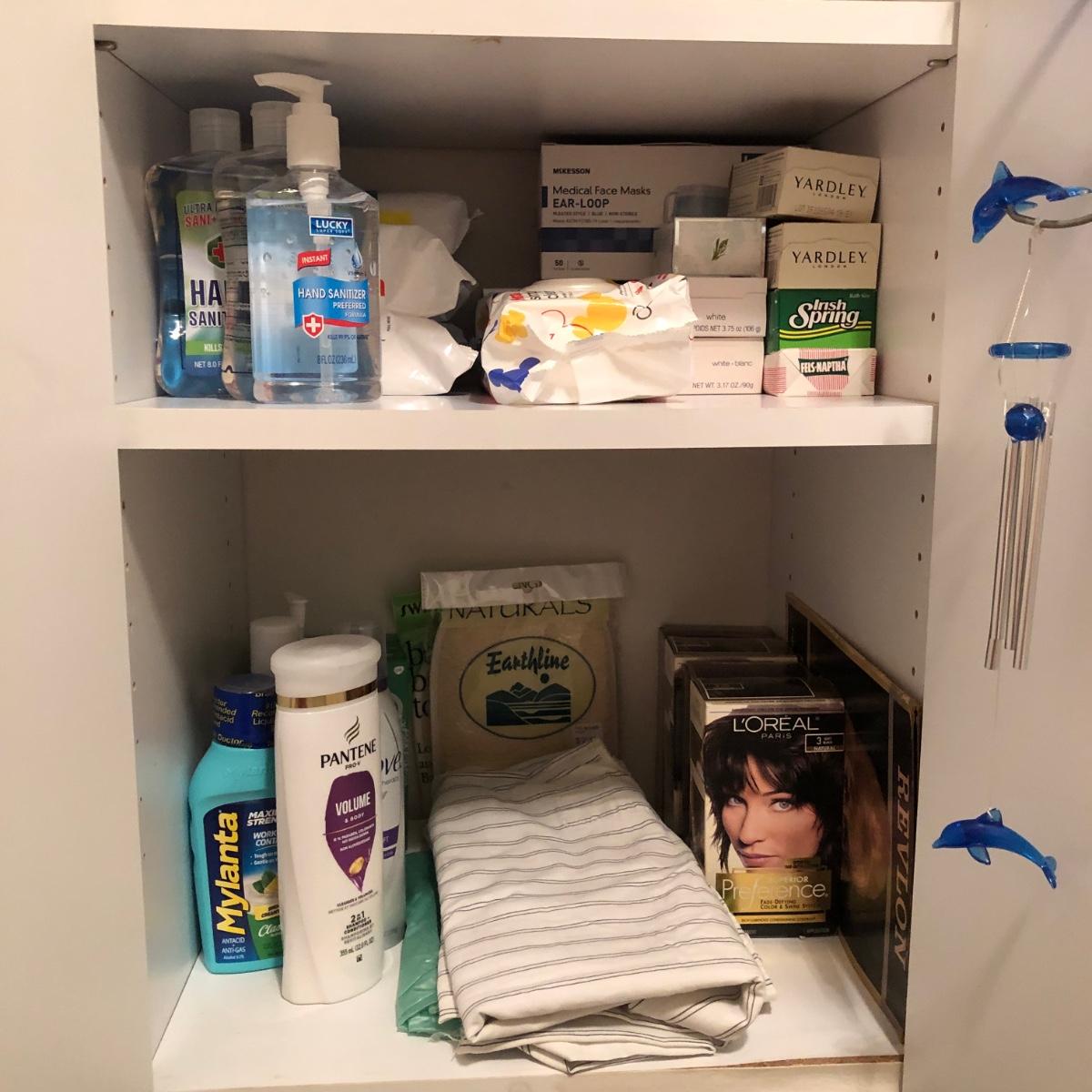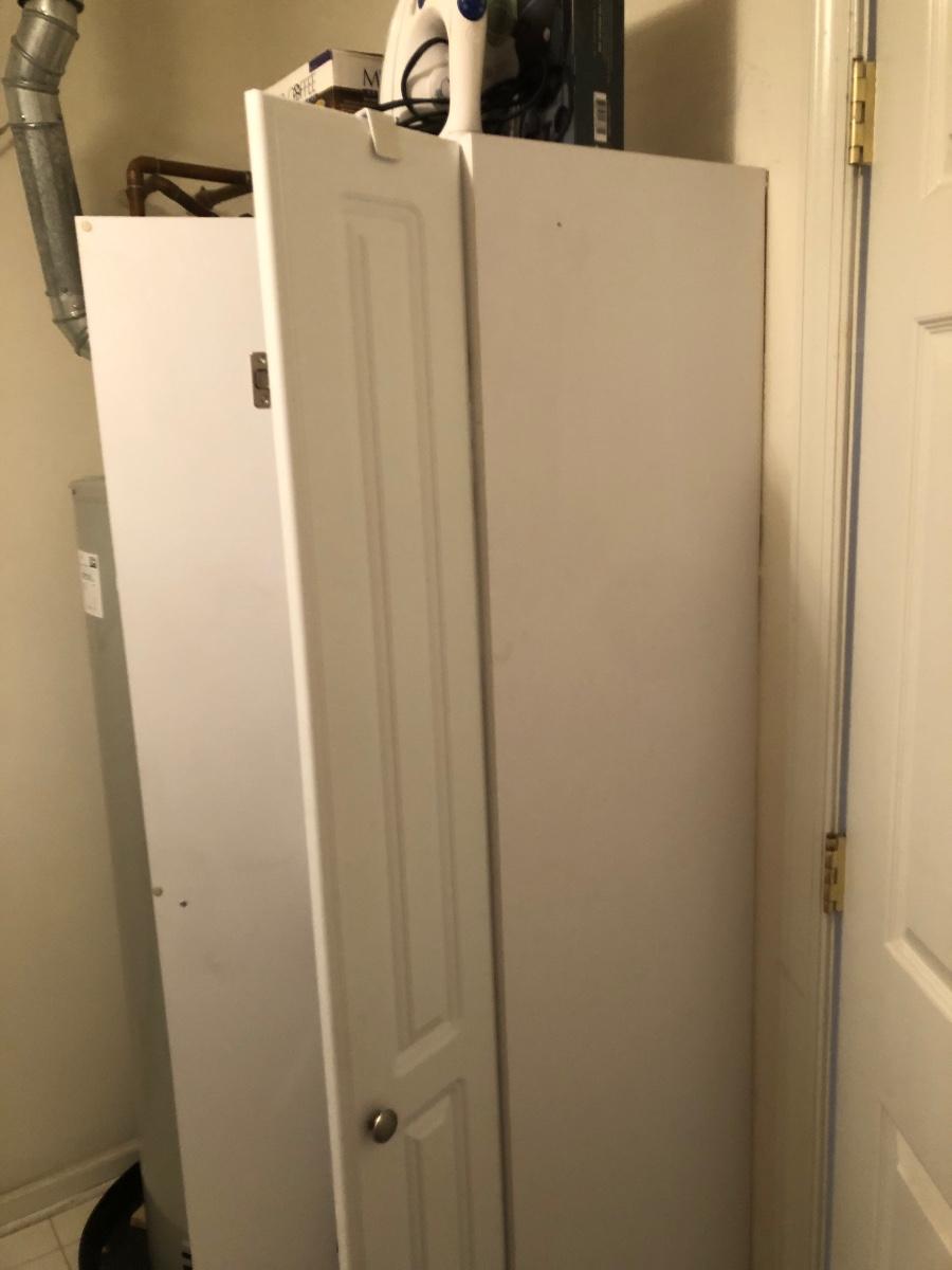 LOT 149M: White Cabinet & ALL of the Household Finds