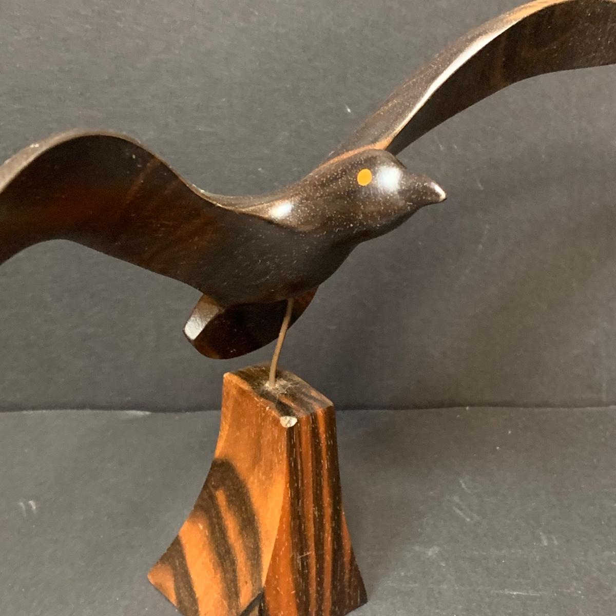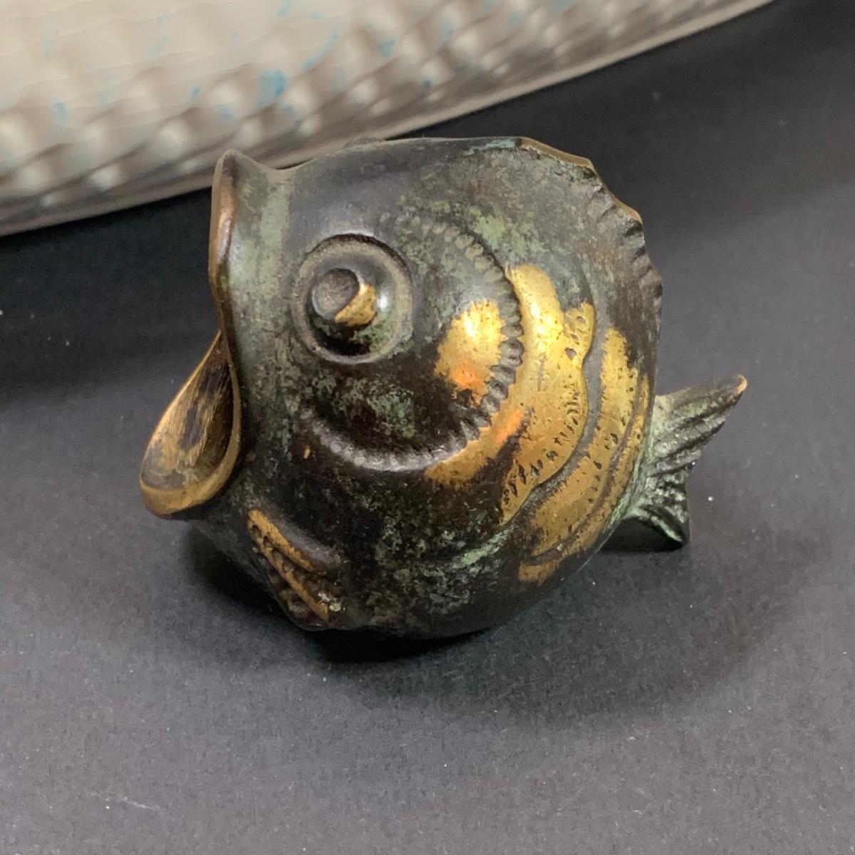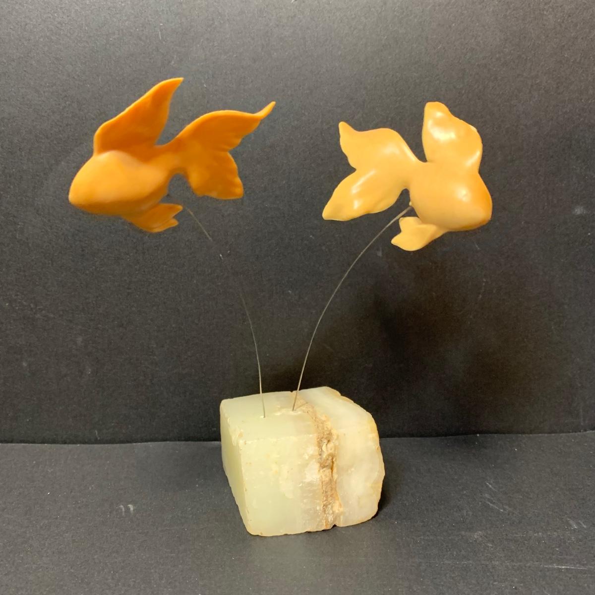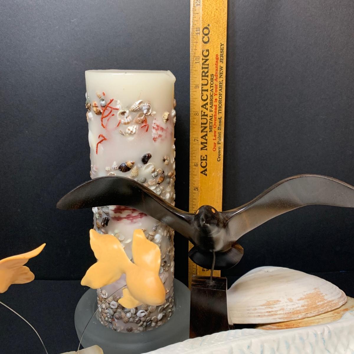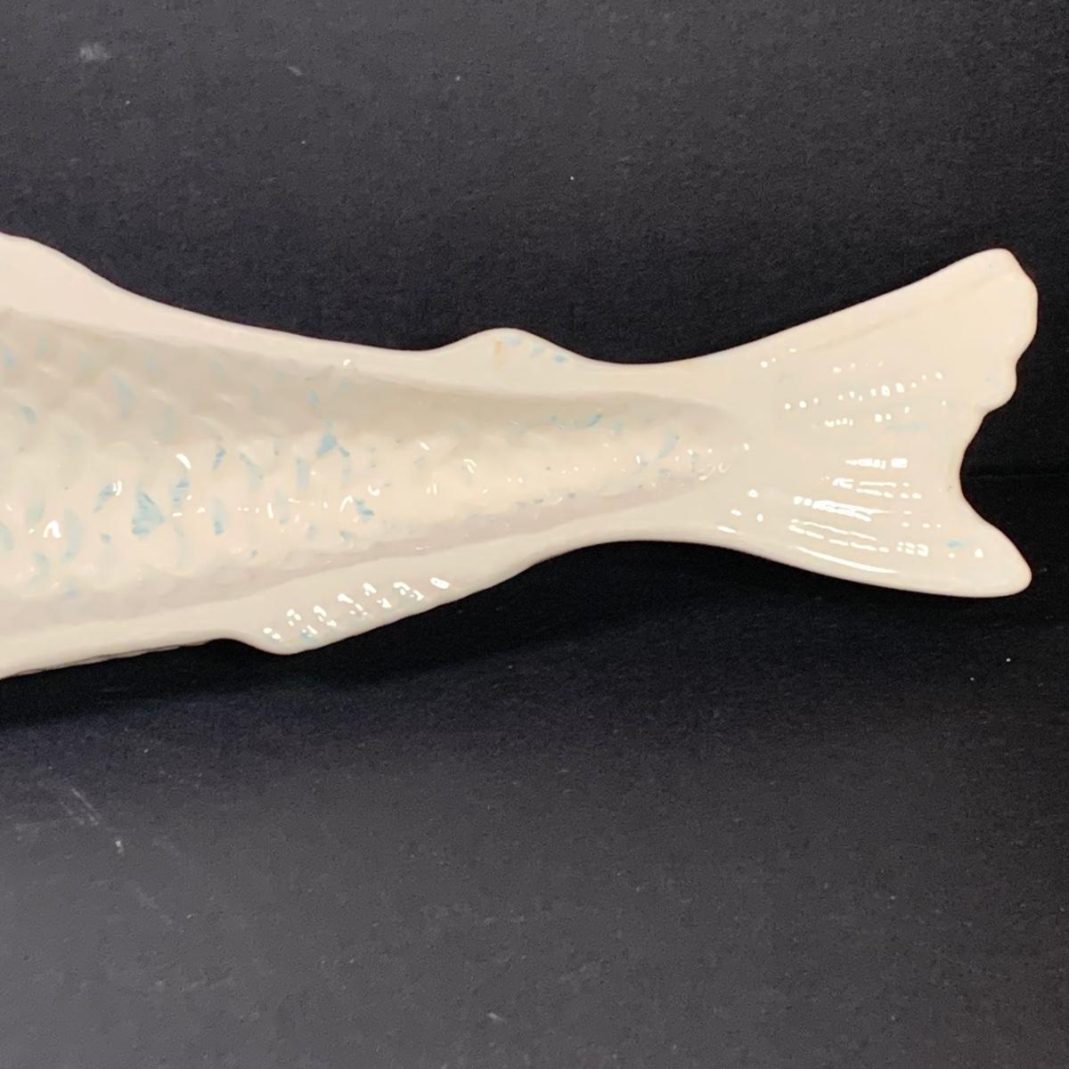 LOT 154R: Vintage Carved Seagull, Wiggle Fish Art w/Stone Base, Brass Ashtray, Boston Warehouse Fish Serving Dish & More