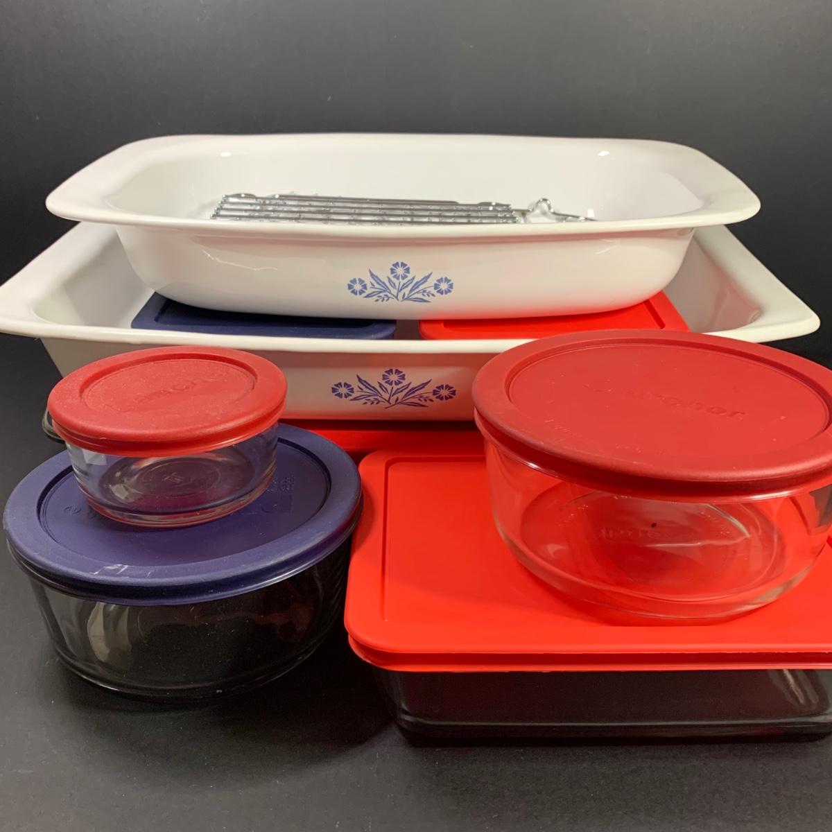 LOT 159R: Vintage Corning Ware Blue Cornflower, Pyrex & Anchor Hocking