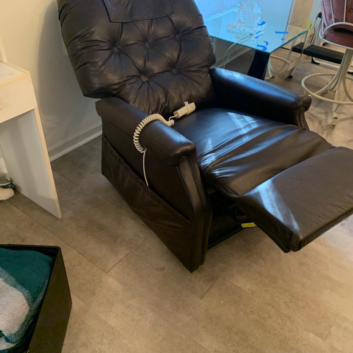 LOT:163G: Pride Mobility Remote Control Faux Leather Recliner/ Lift Chair
