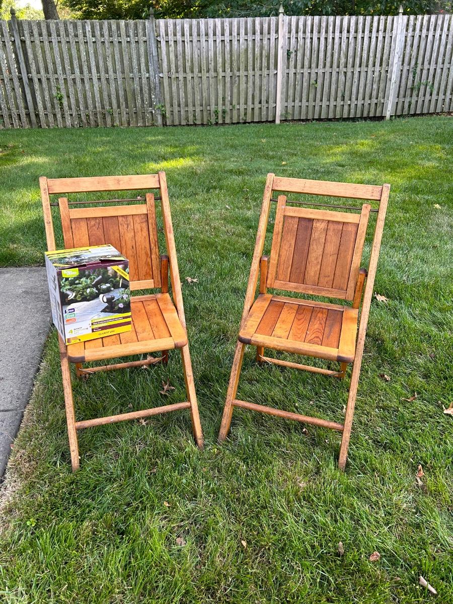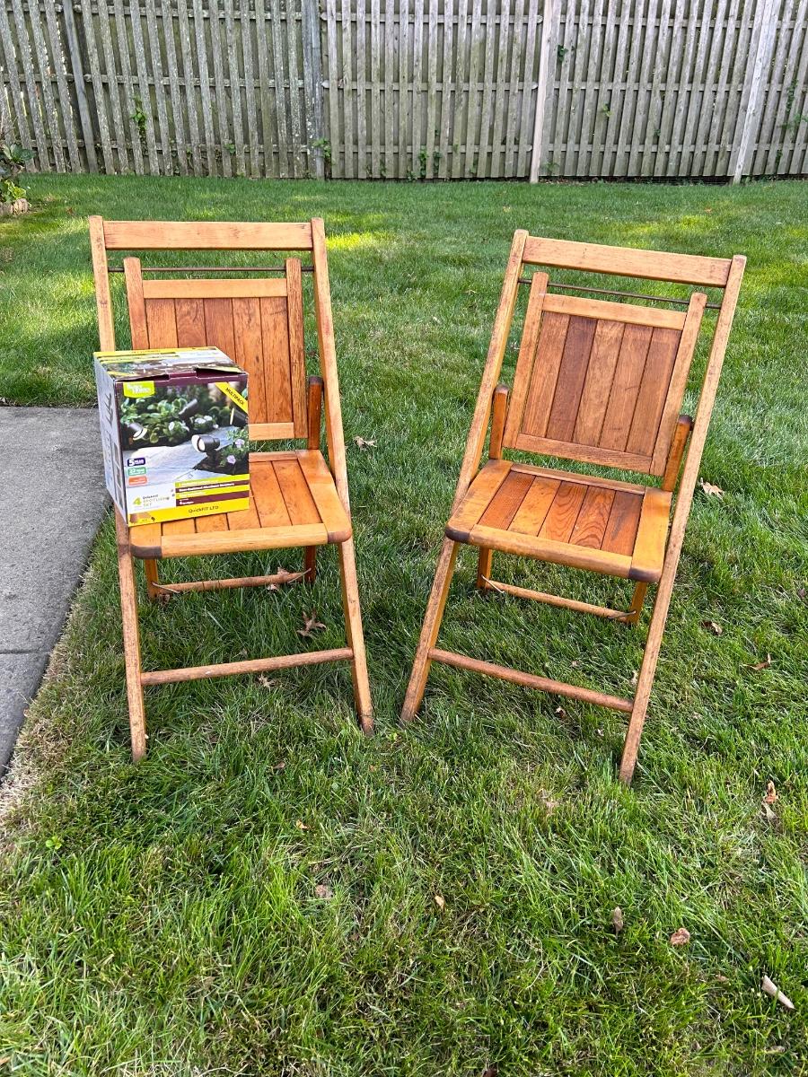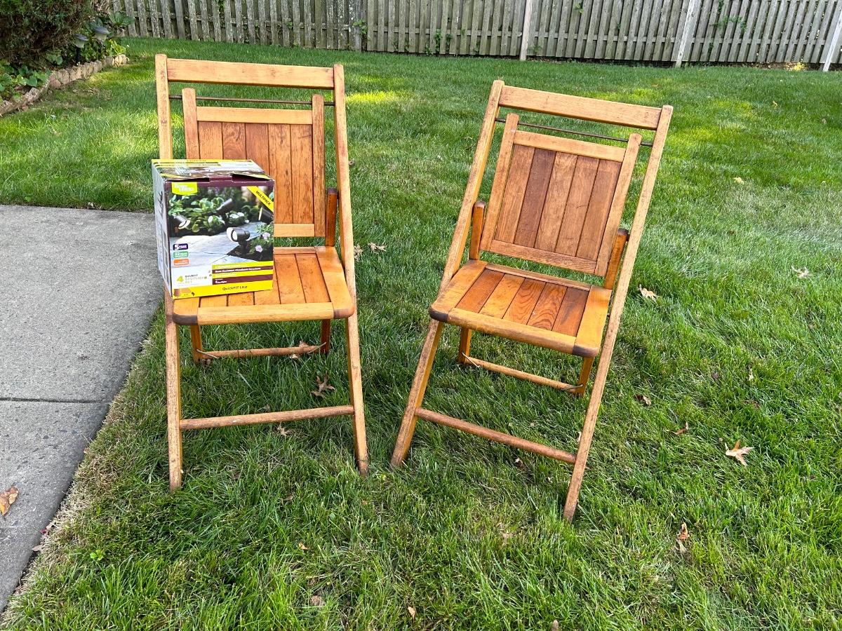 LOT 177C: Wood Folding Chairs And Garden Lights