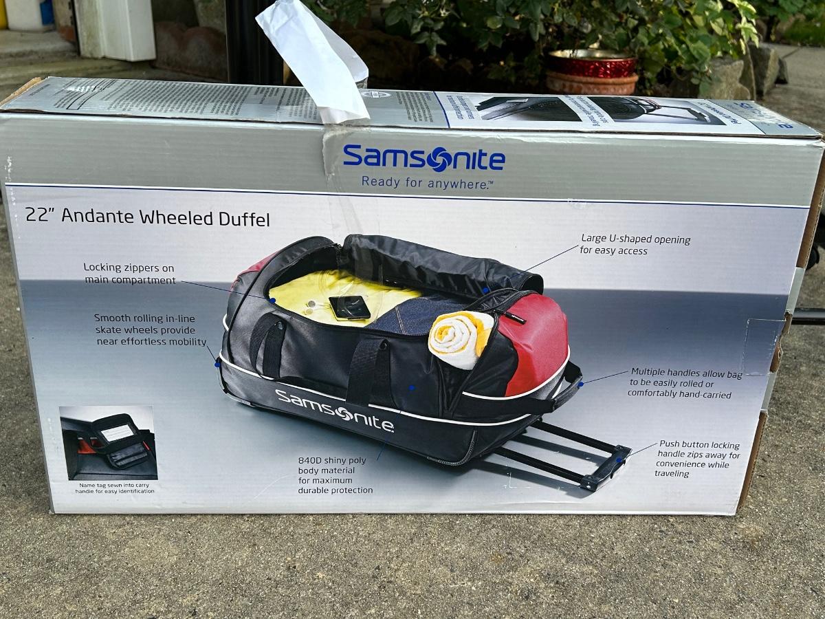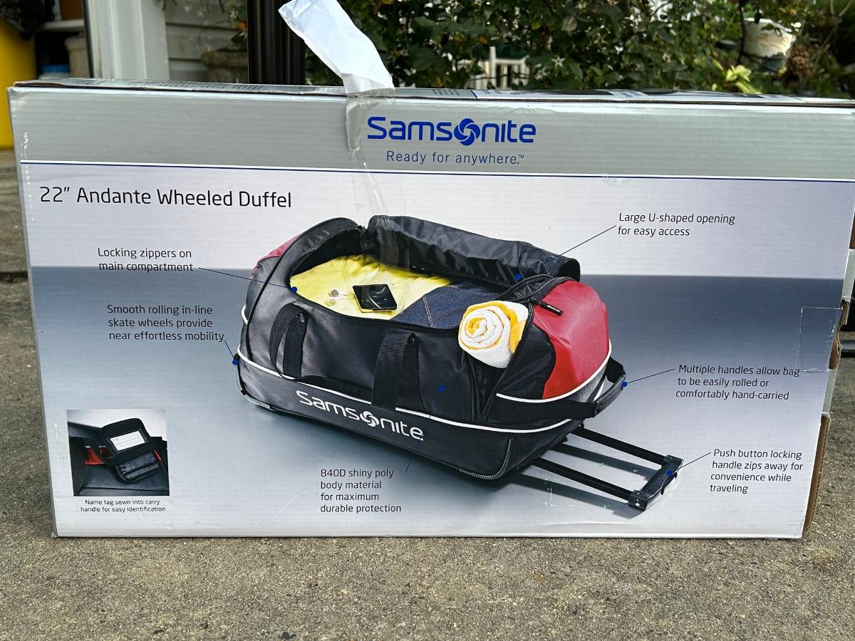 Double rack on wheels. 22" Rolling Duffel bag by Samsonite.