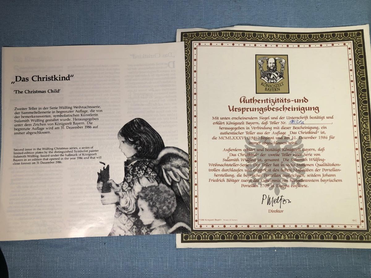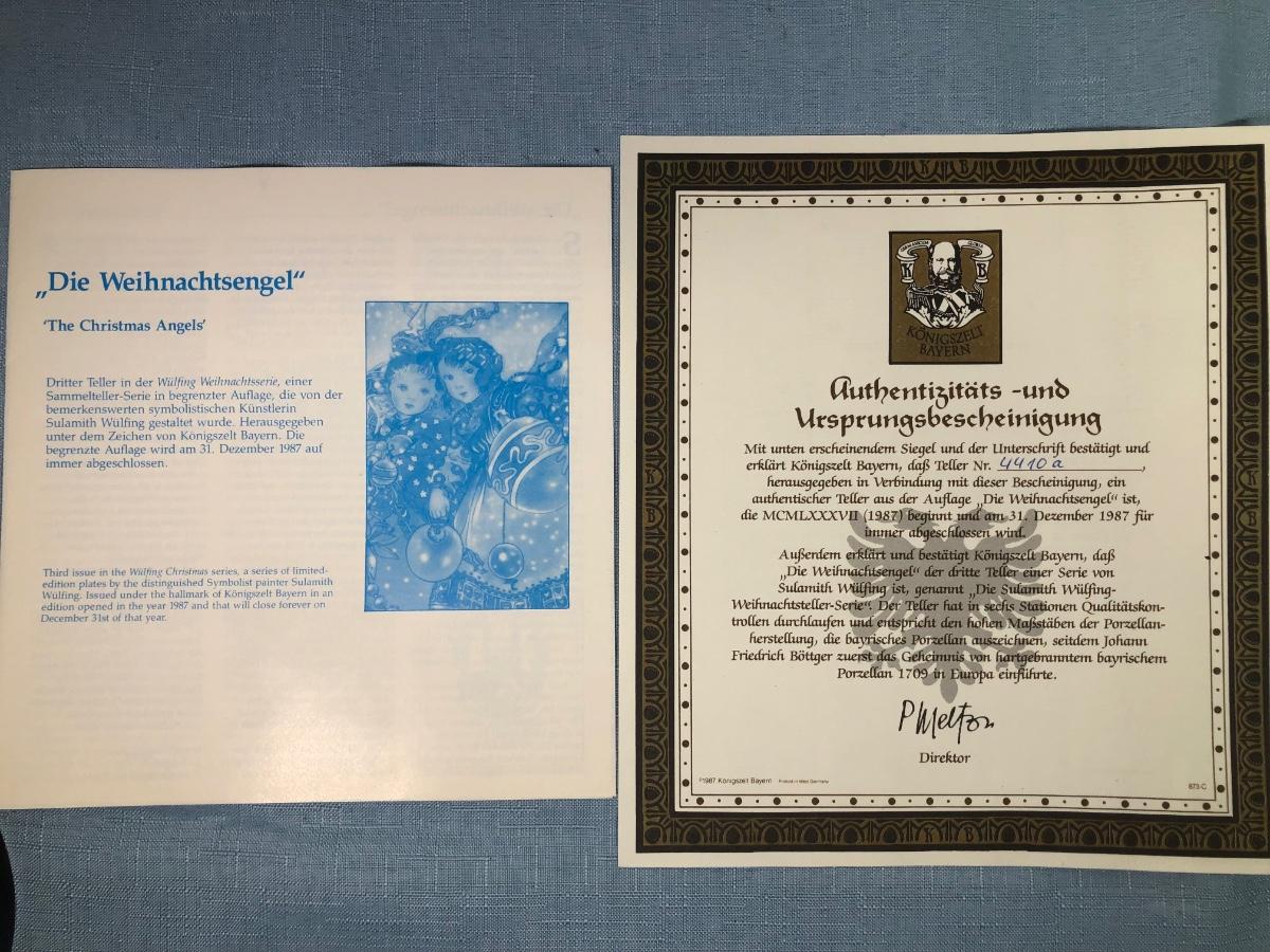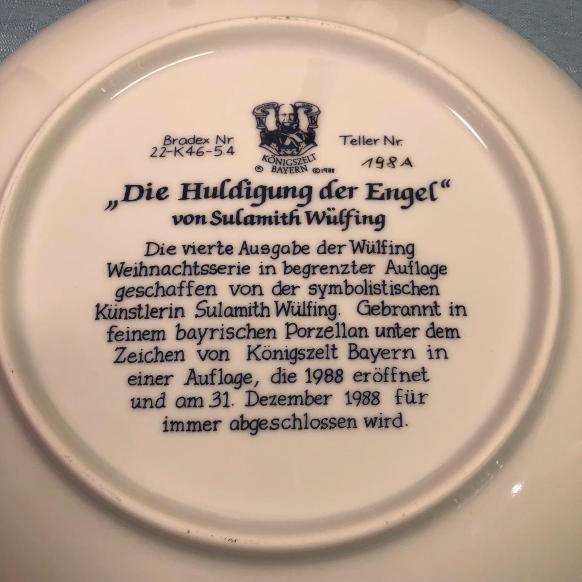 Includes four plates by Sulamith Wülfing - 1986 Das Christ Kind, 1987 Die Weihnachtsengel, 1988 Die Huldigung der Engel and 1989 Das Geschenk des Himmels.