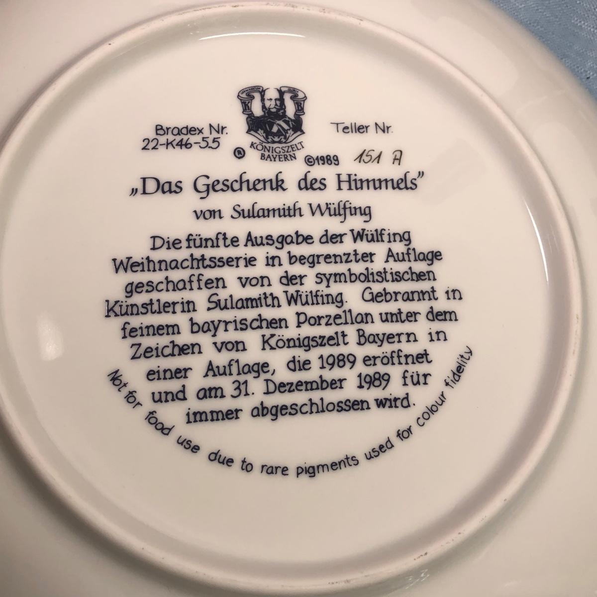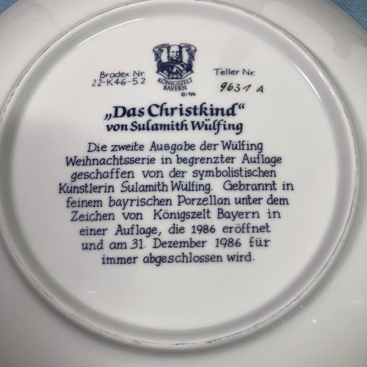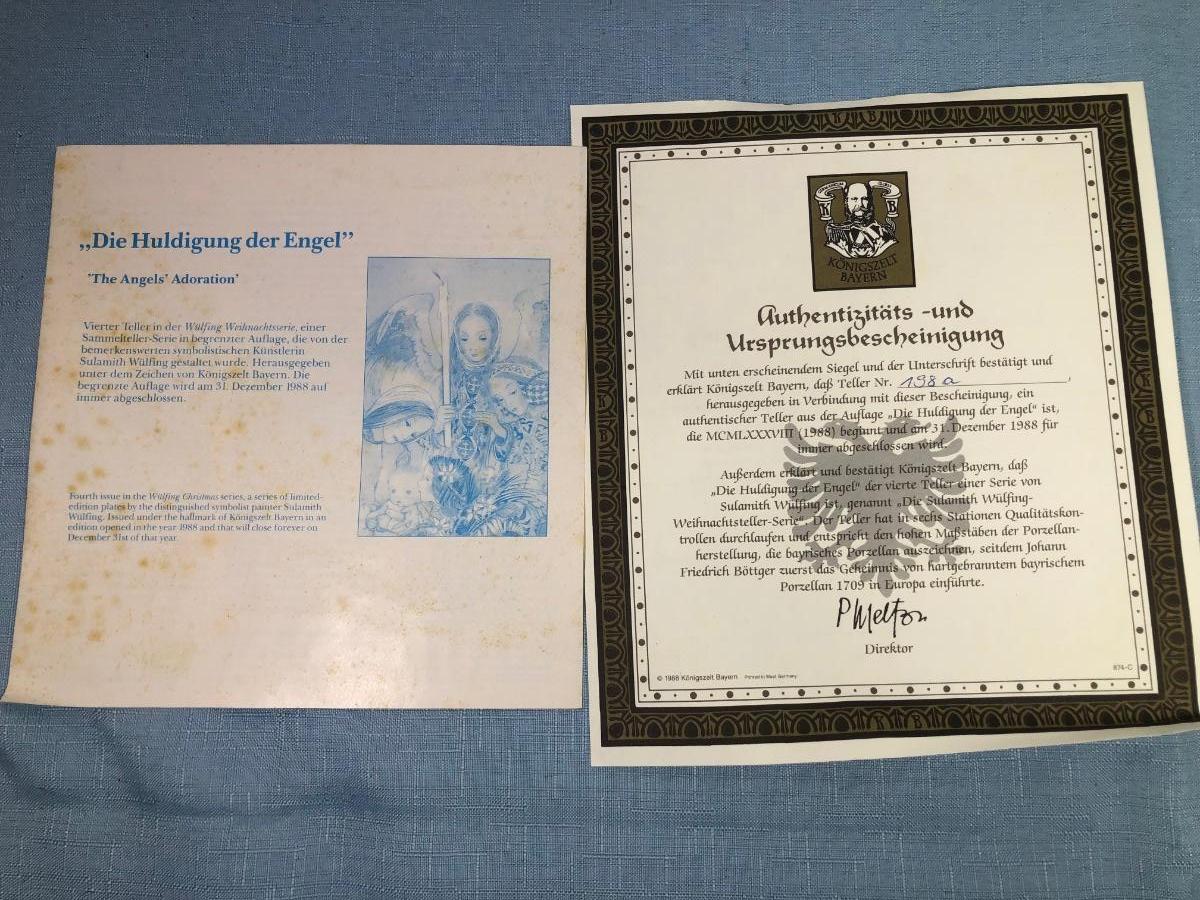 Includes four plates by Sulamith Wülfing - 1986 Das Christ Kind, 1987 Die Weihnachtsengel, 1988 Die Huldigung der Engel and 1989 Das Geschenk des Himmels.