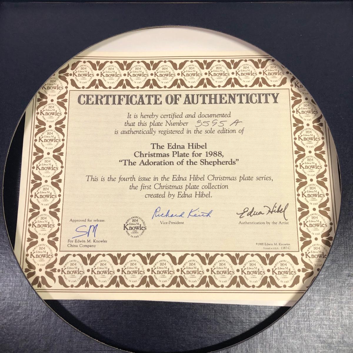 1990 The Nativity, 1988 The Adoration of the Shepherds, 1985 The Angel's Message all include COAs. 1987 The Flight Into Egypt does not.