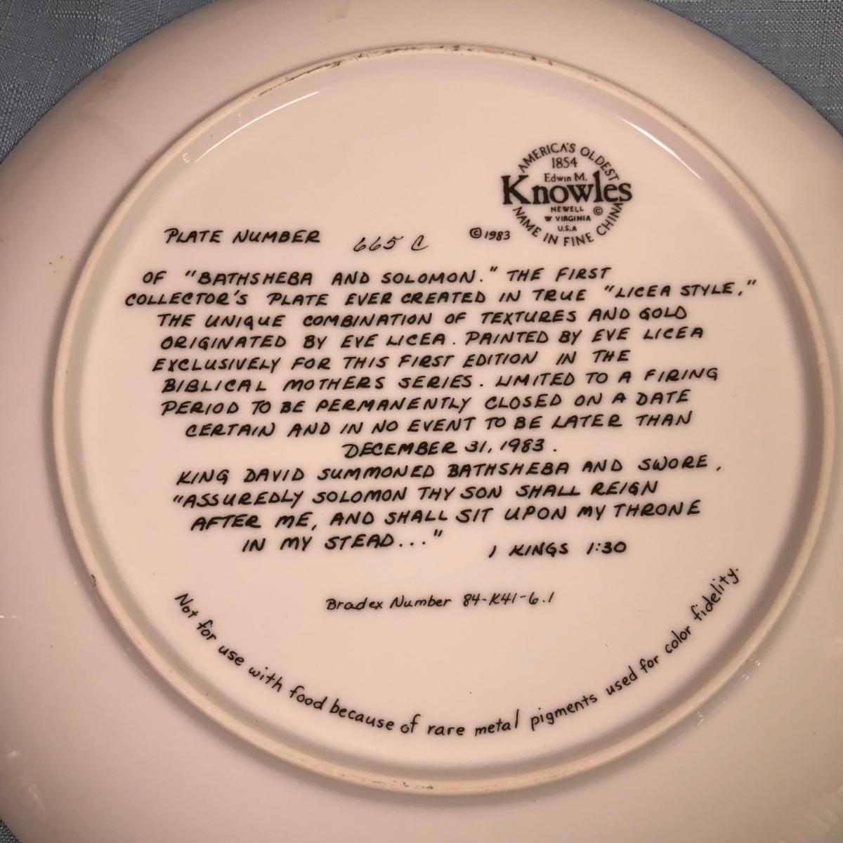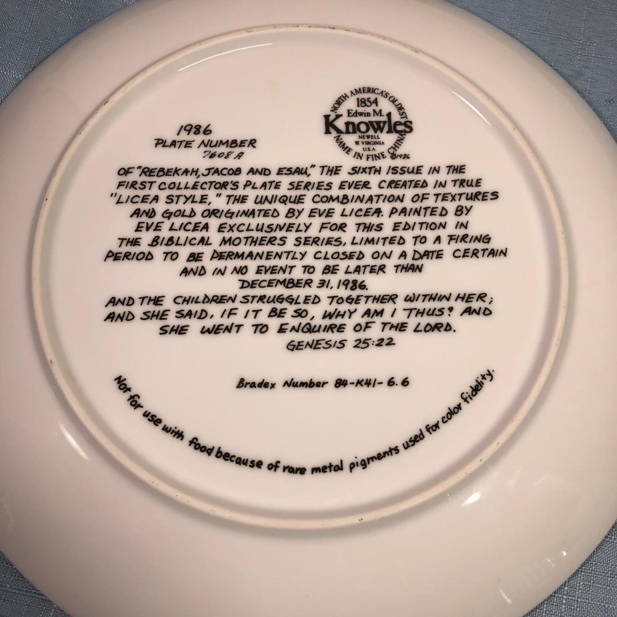 LOT 200M: Edwin M Knowles Eve Licea Biblical Mothers Series Collector's Plates
