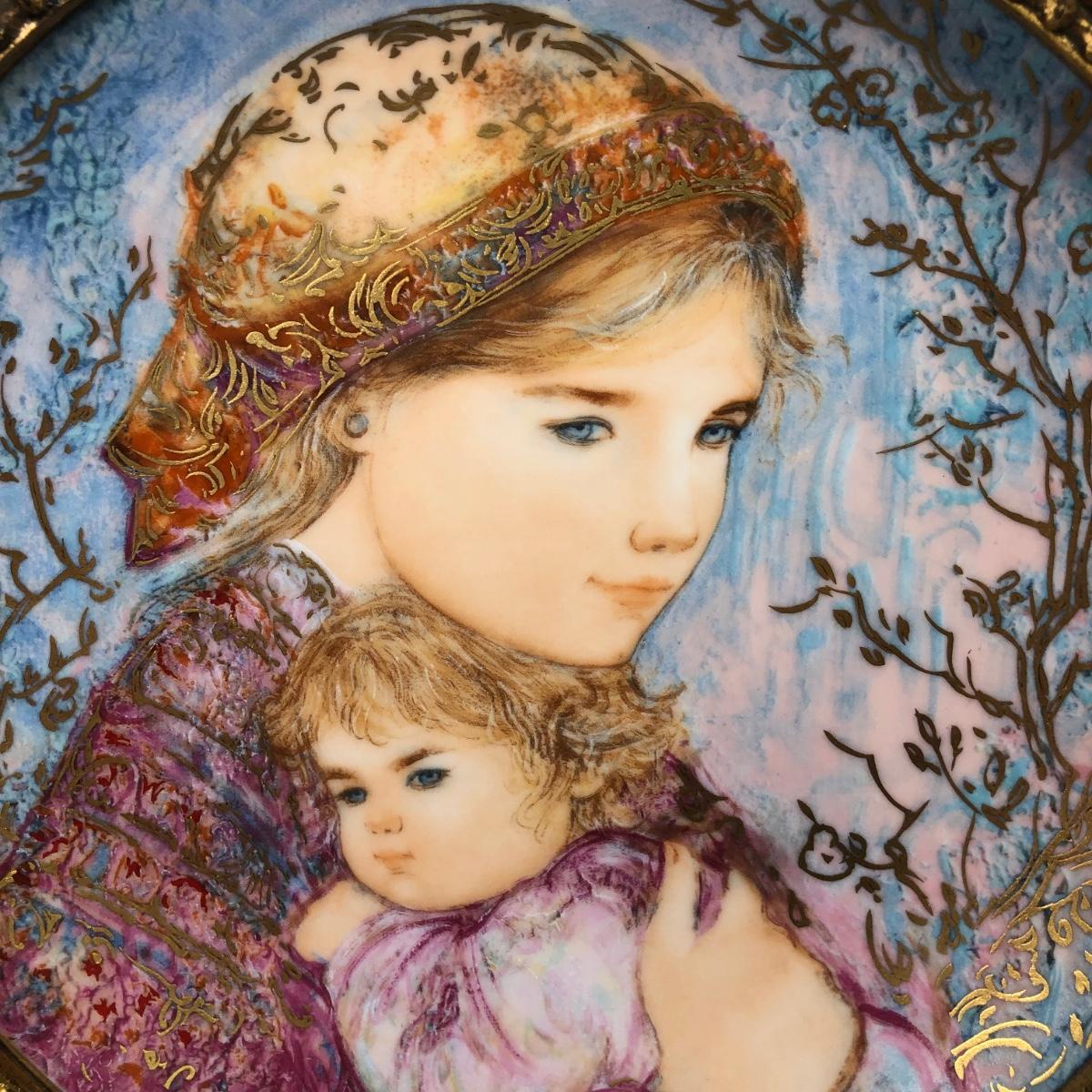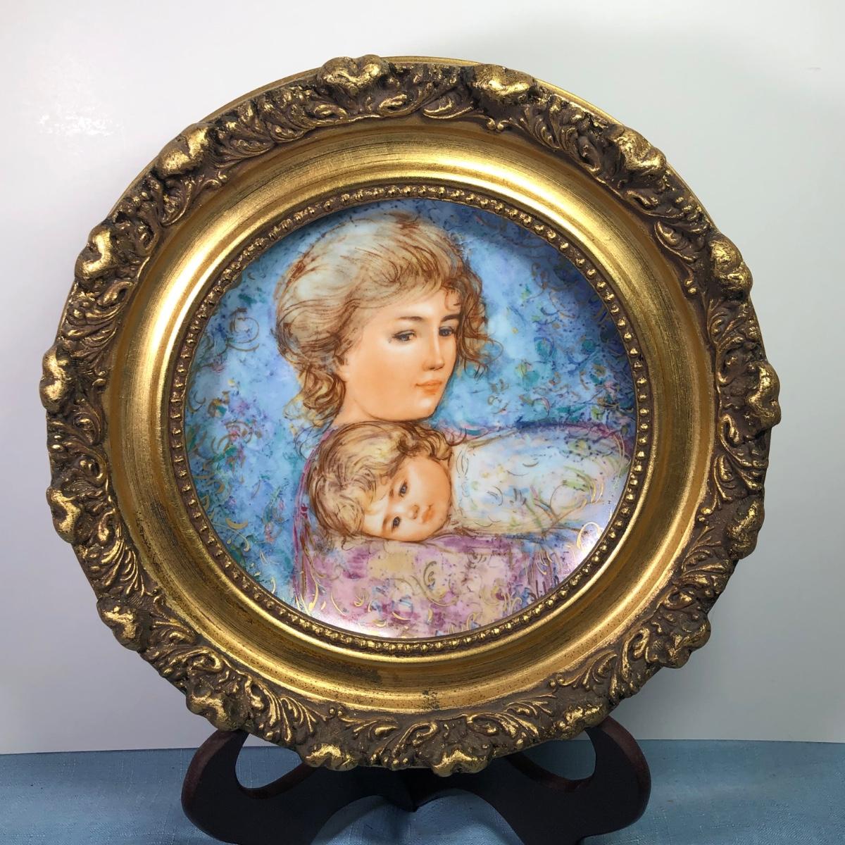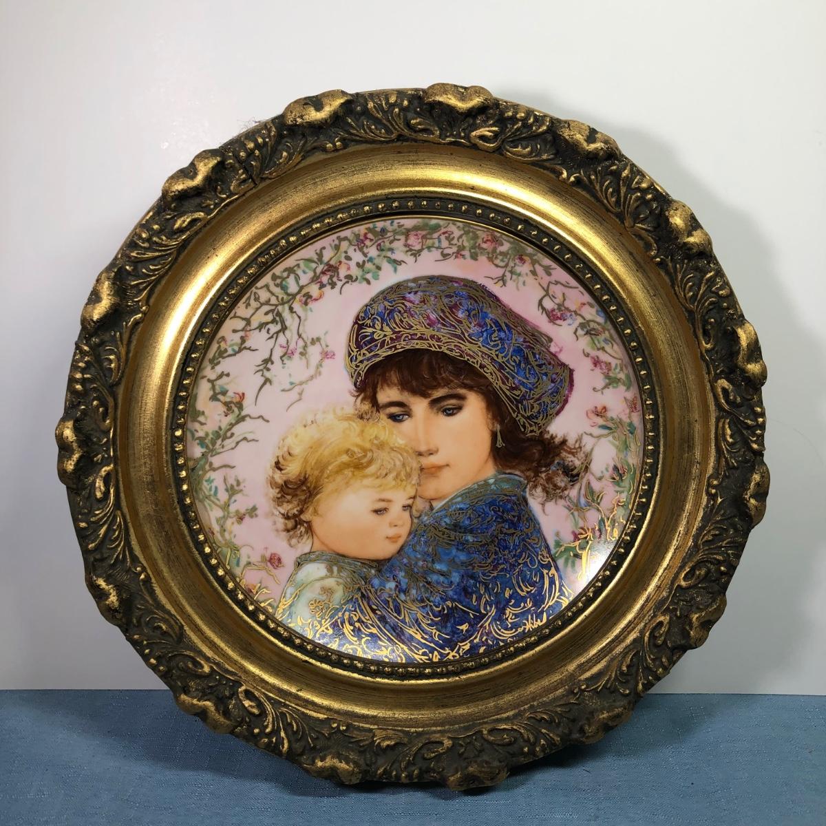 LOT 201M: Vintage Edna Hibel Mother's Day Plates w/ Elaborate Frames, Boxes & COA's (4)