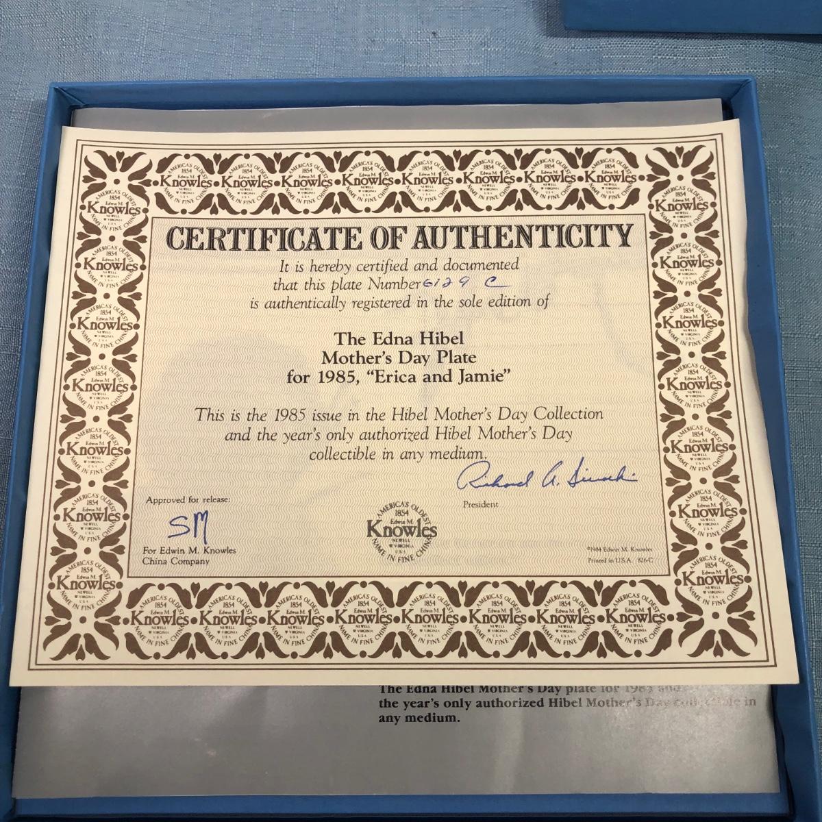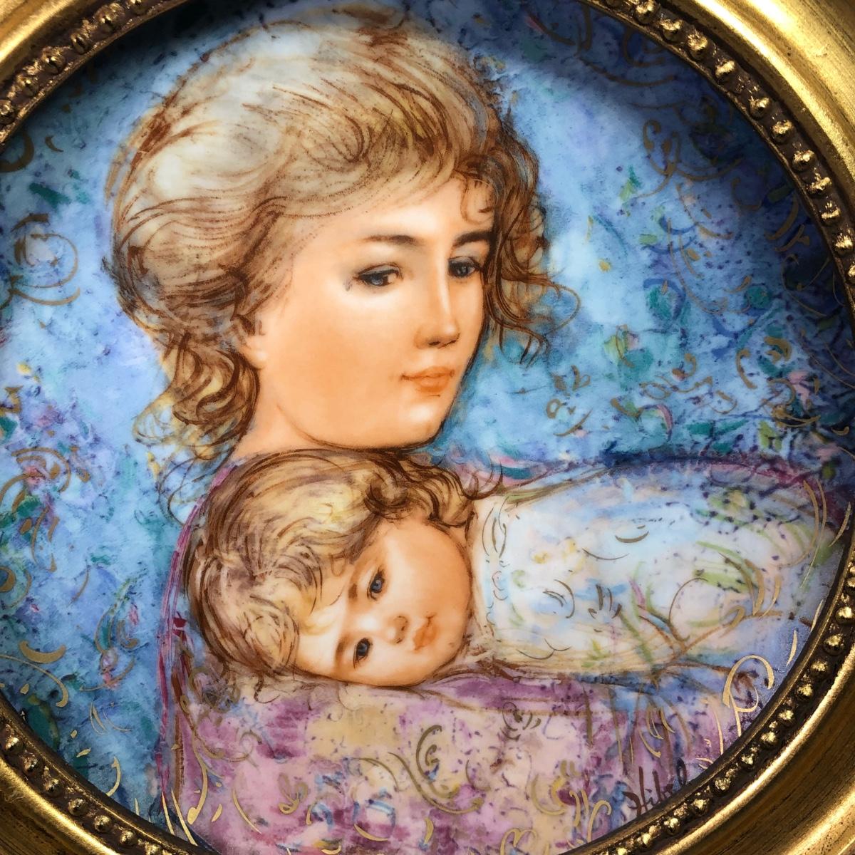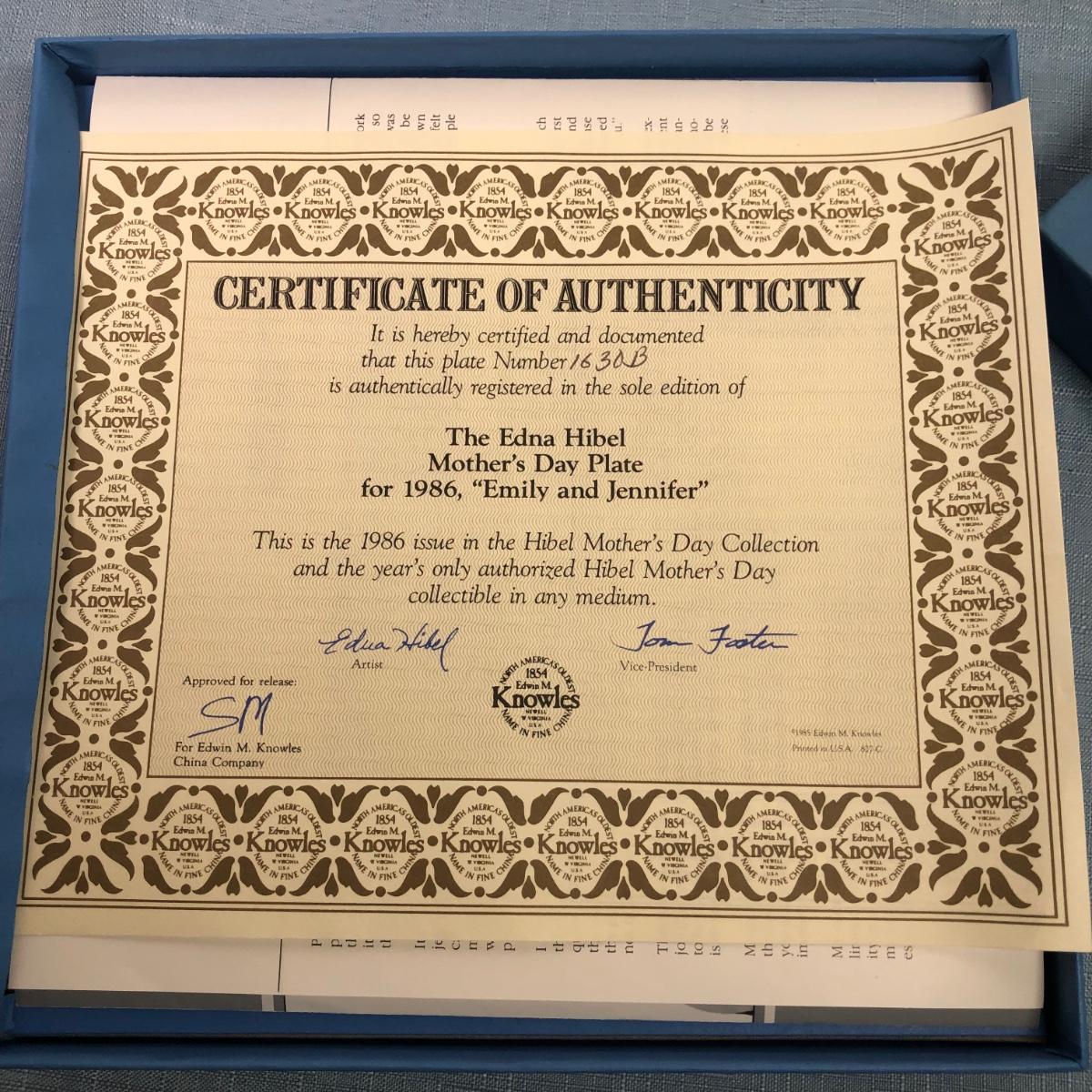 LOT 201M: Vintage Edna Hibel Mother's Day Plates w/ Elaborate Frames, Boxes & COA's (4)