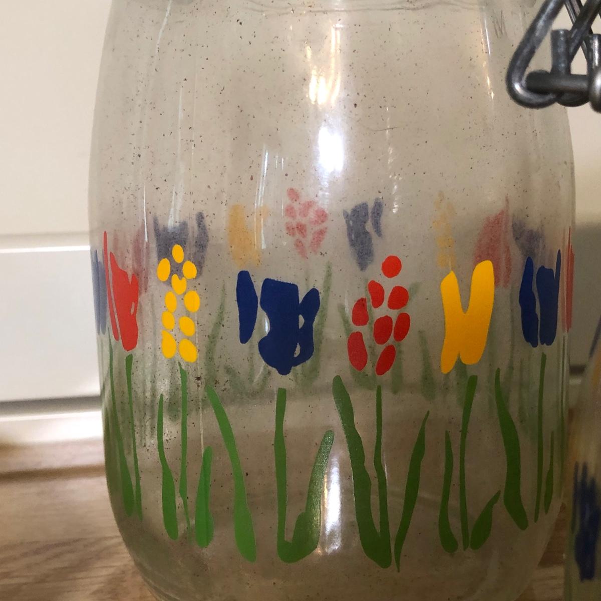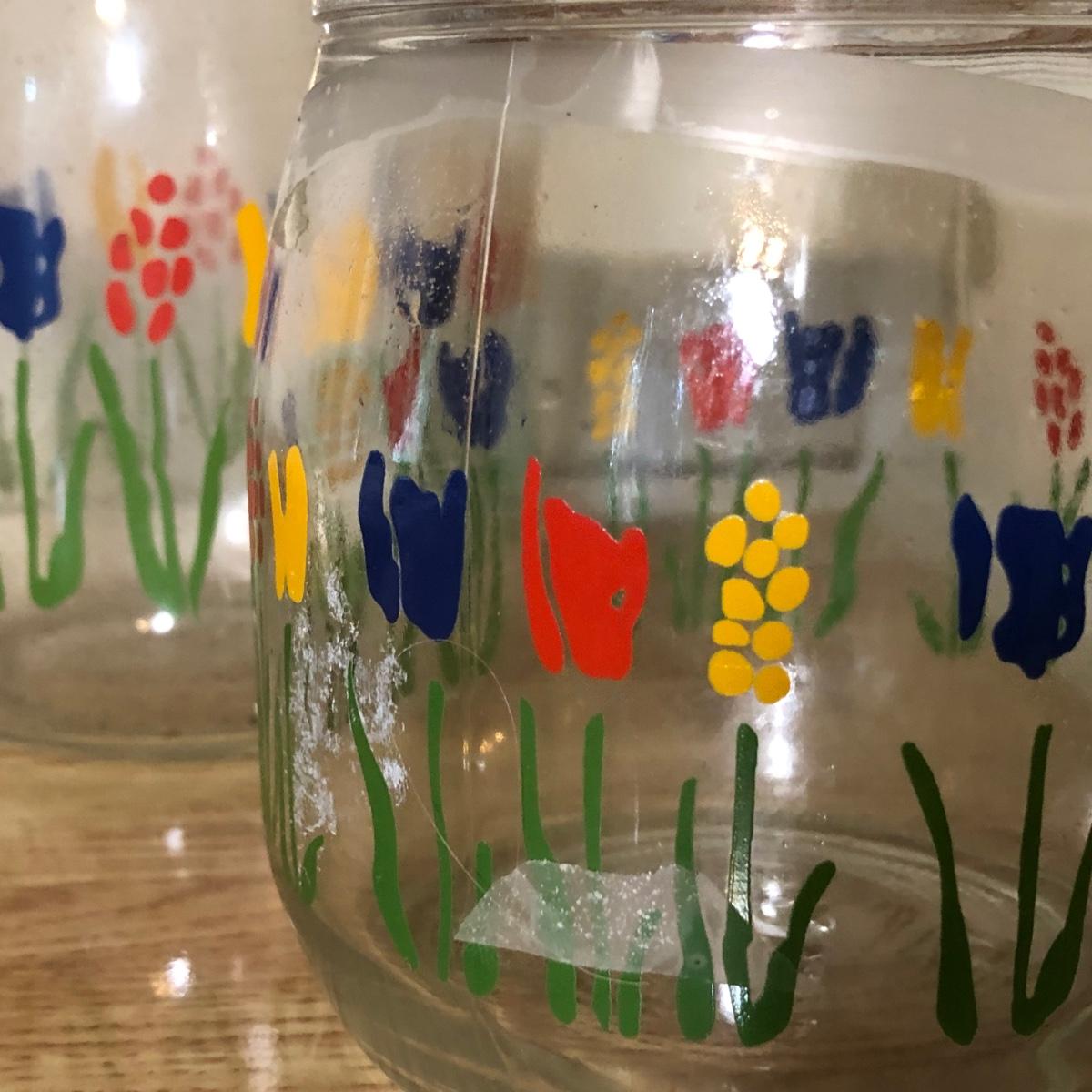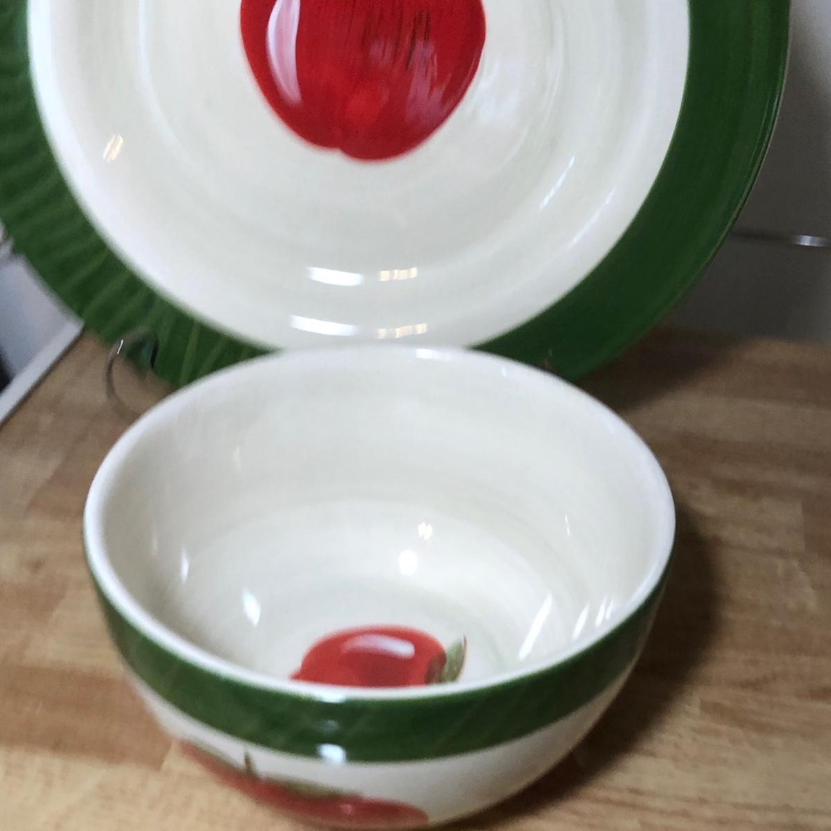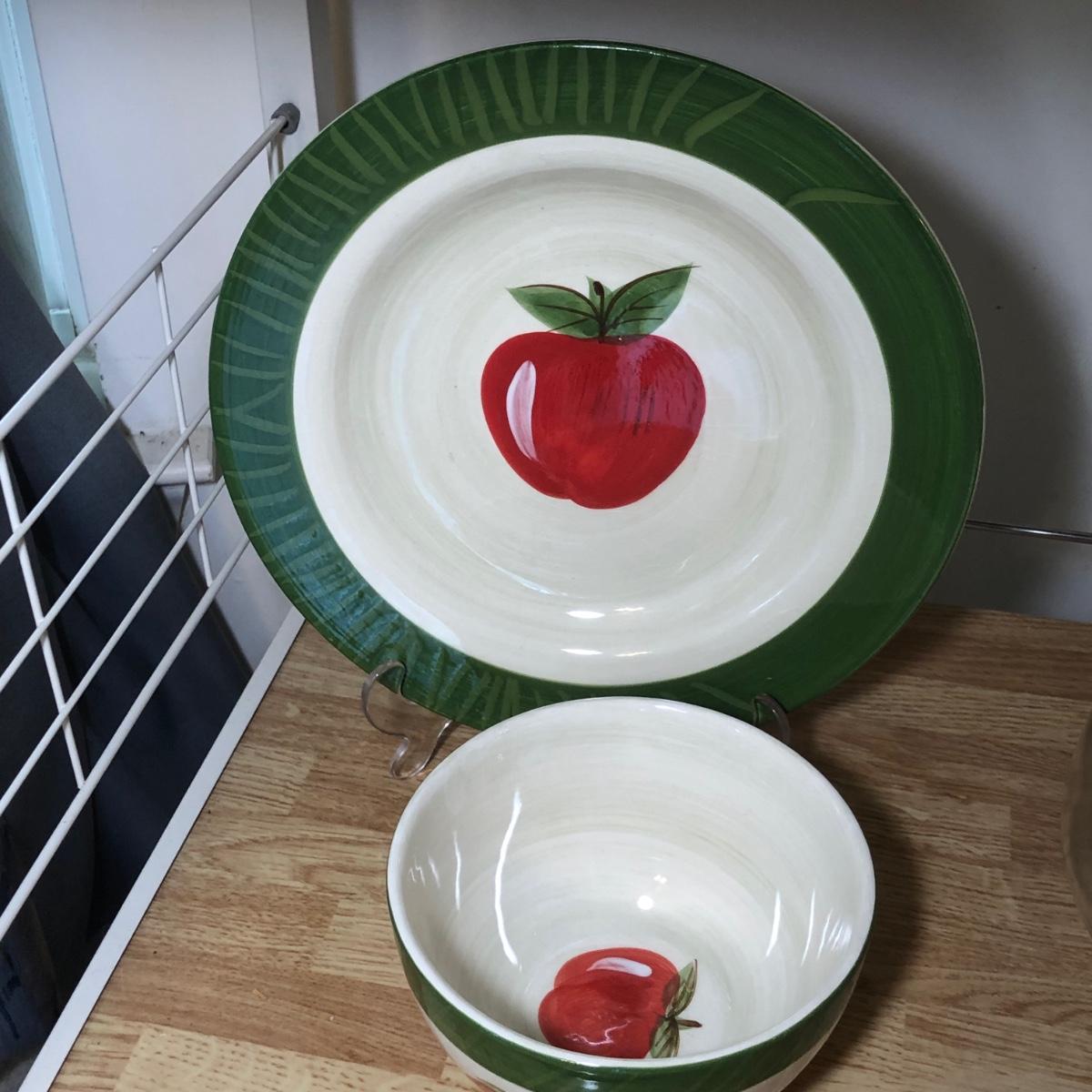 LOT 206M: Kitchen Cart w/ Pfalzgraff Dish, Arc Poppy Canisters, Glass Jar & Apple Valley Matching Bowl/Plate