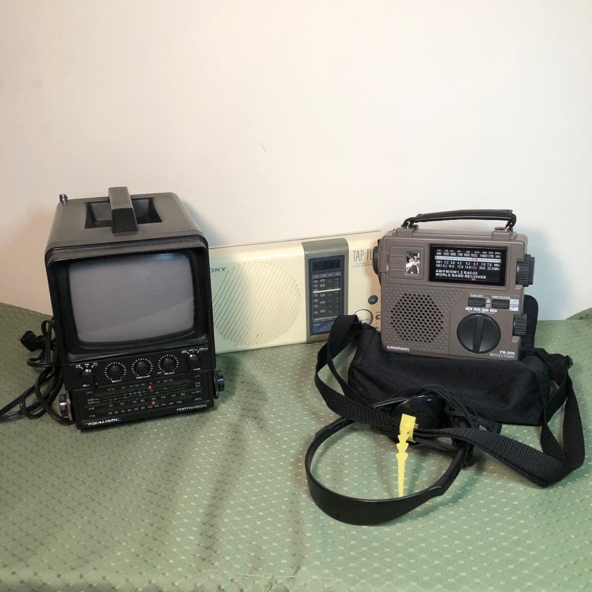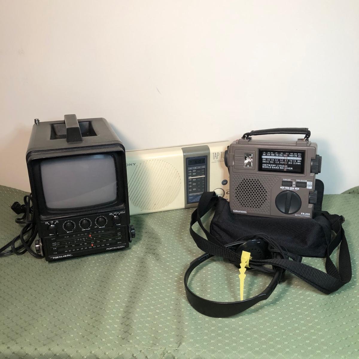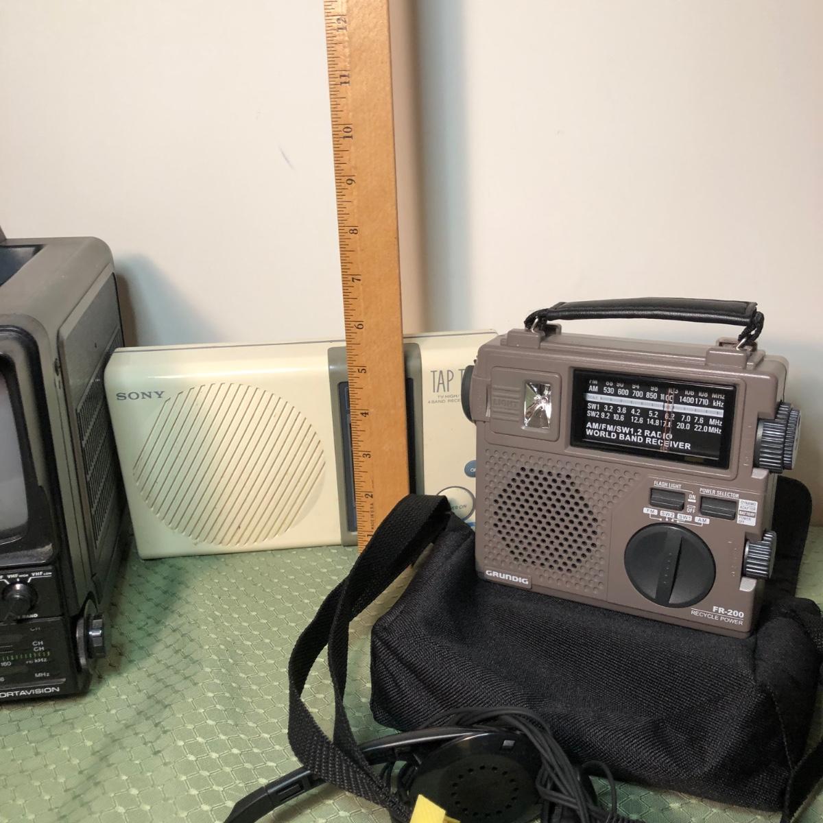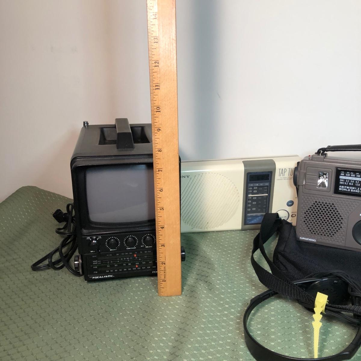 LOT 212M: Realistic Portavision Model 16-100, Sony Tap Tunes ICF-S77W & Grundig AM/FM/SW 1.2 World Receiver FR-200