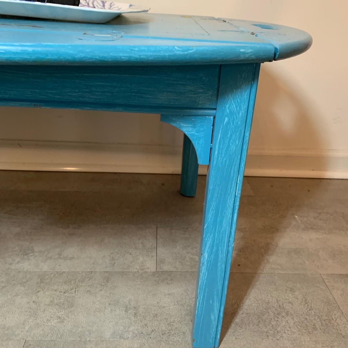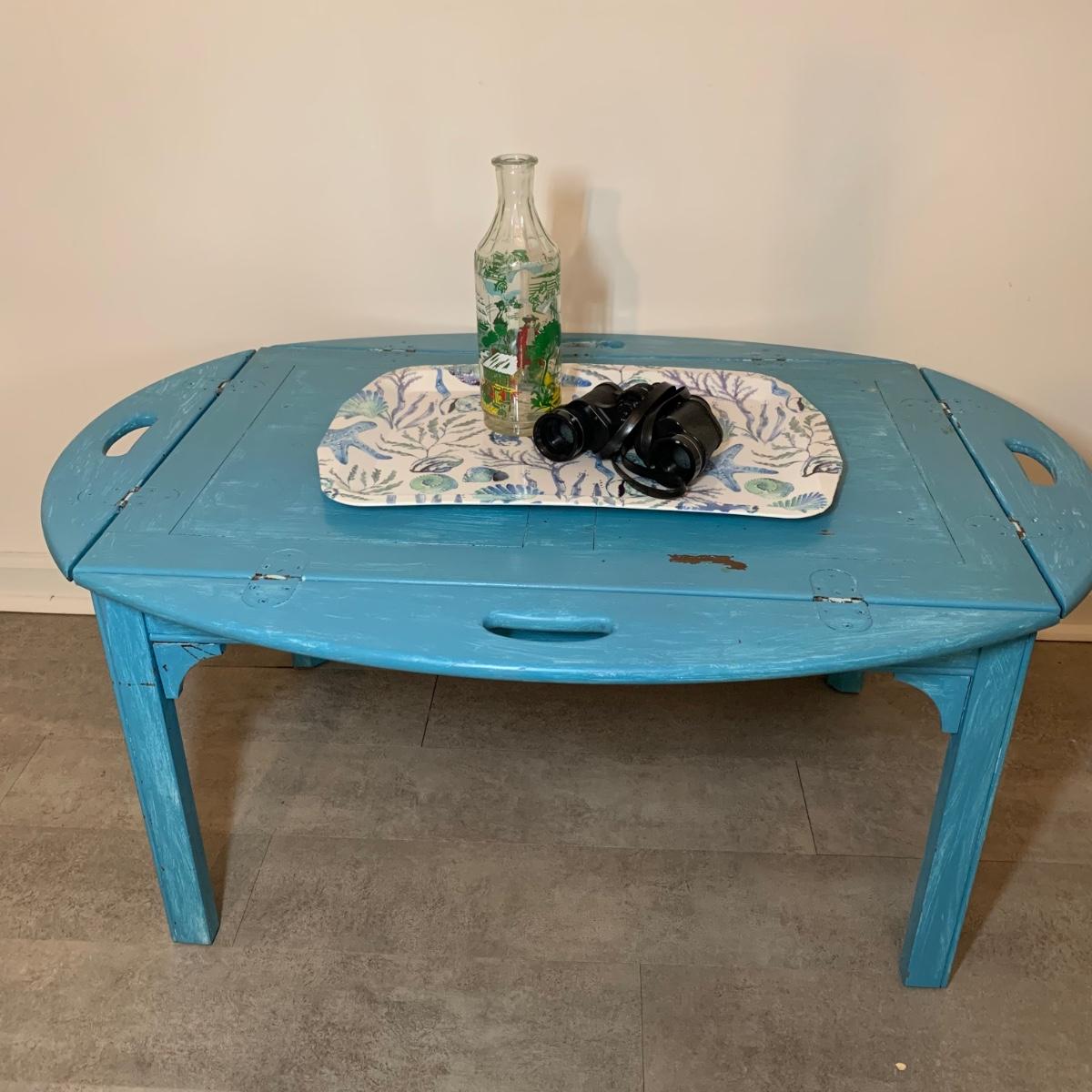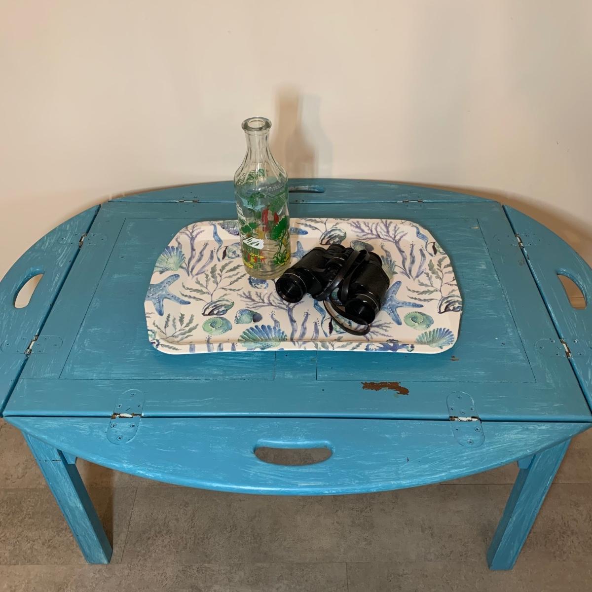 LOT 220R: Oval Blue Accent/Coffee Table, Zip Binoculars & More