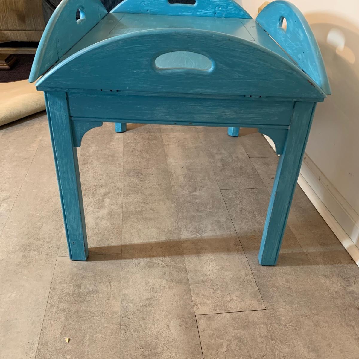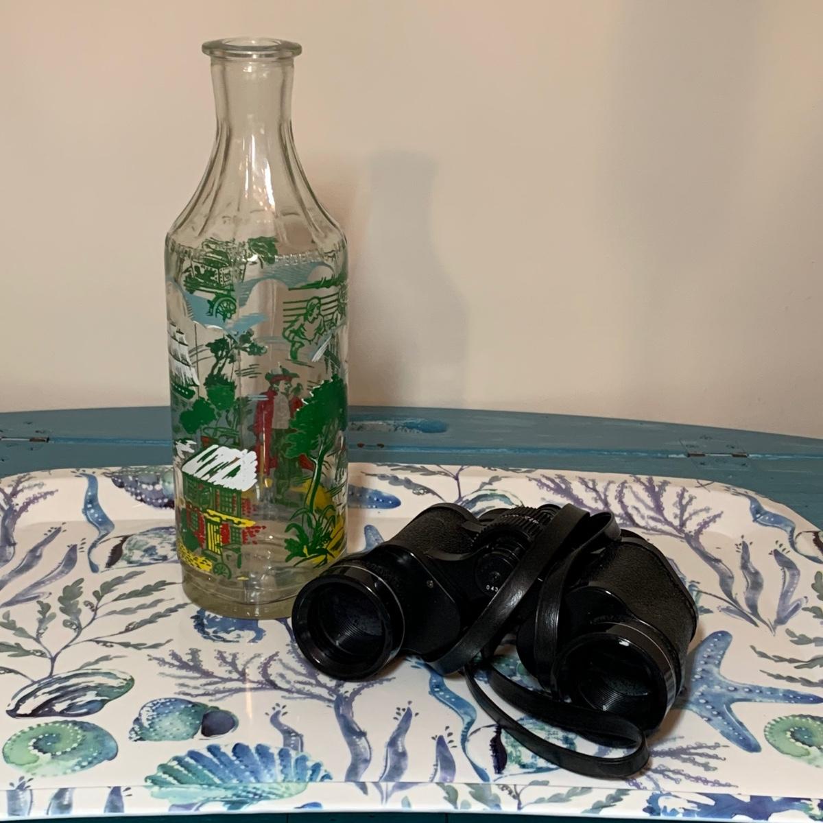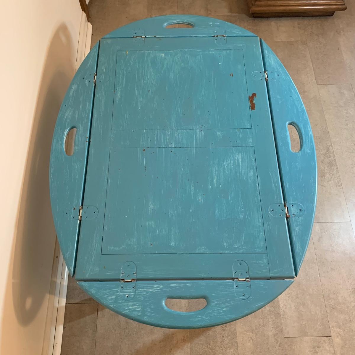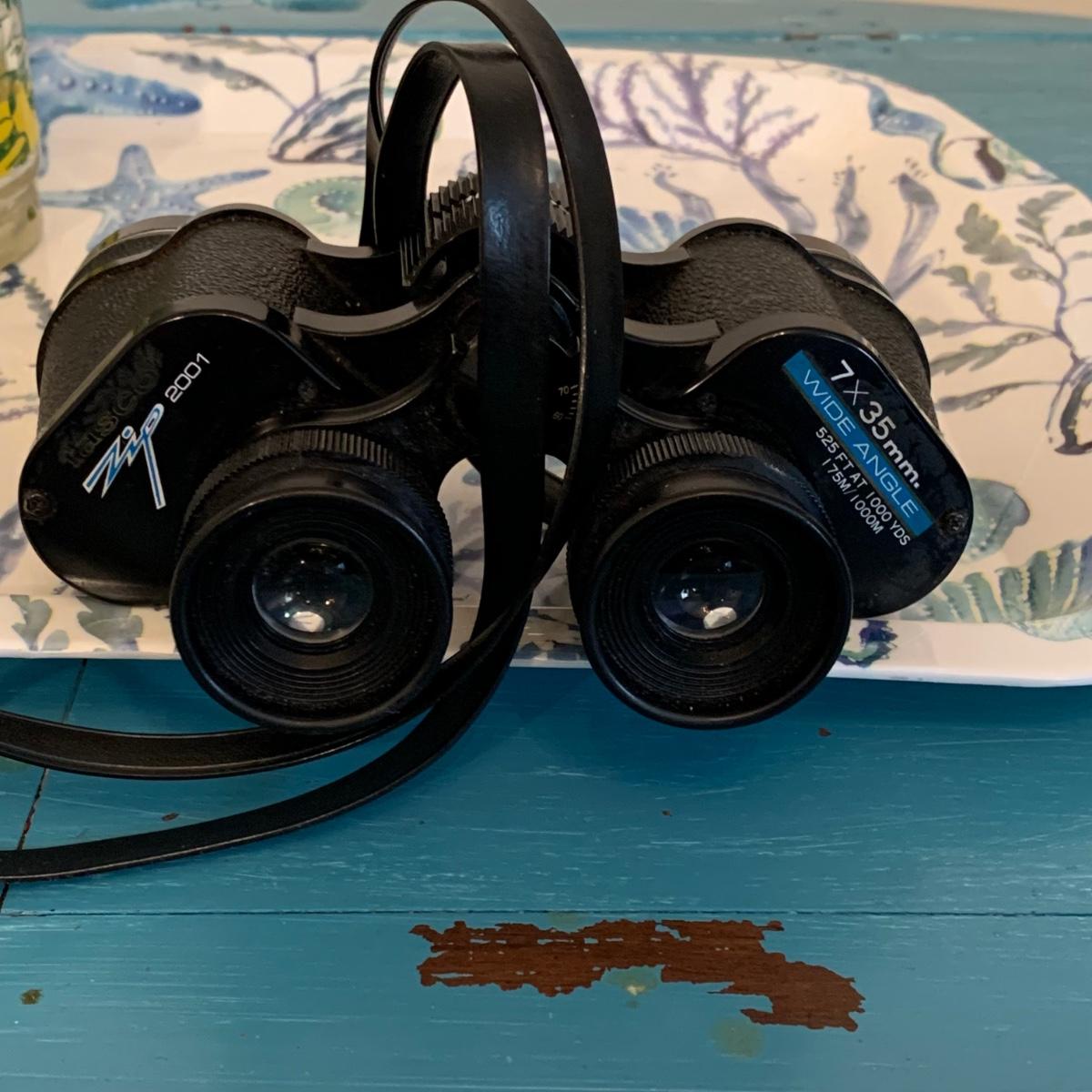 LOT 220R: Oval Blue Accent/Coffee Table, Zip Binoculars & More