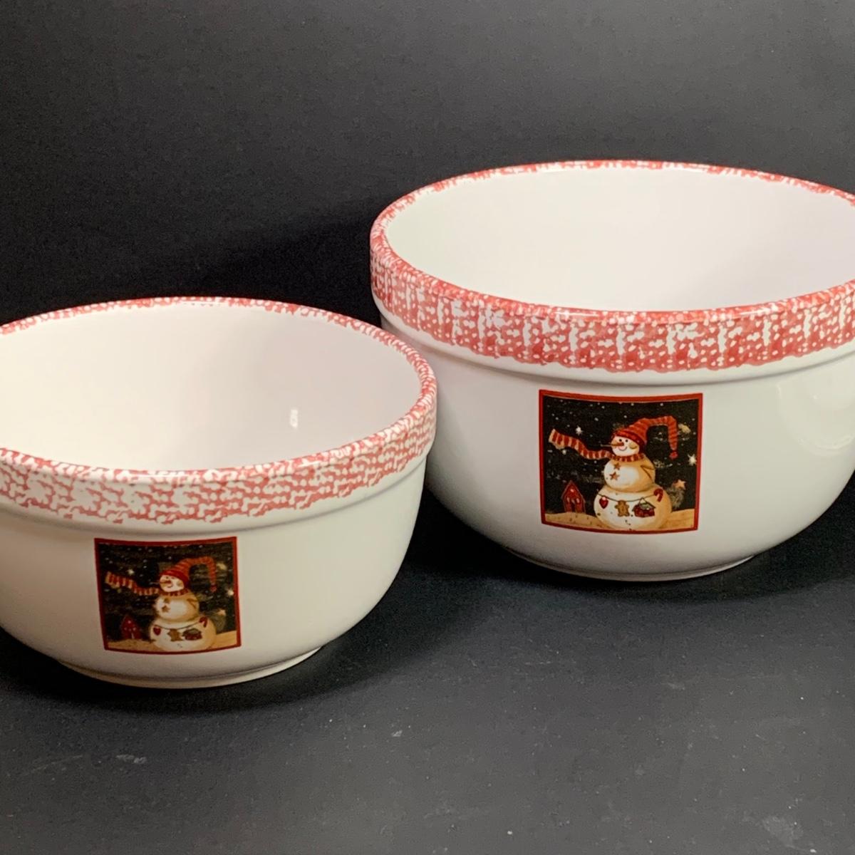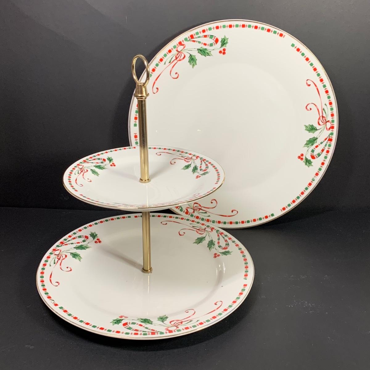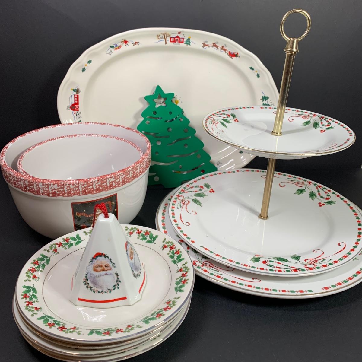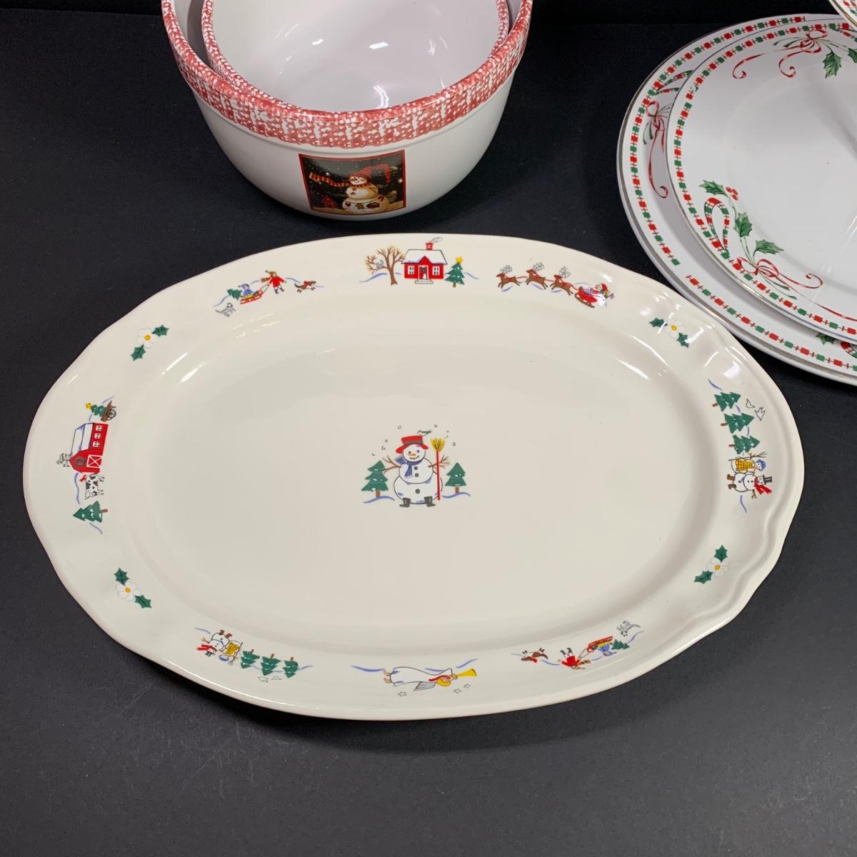 LOT 223R: Holiday Serving Collection with Pfaltzgraff Snowman Bowls, Gibson 2 Tier and Other Plates and More