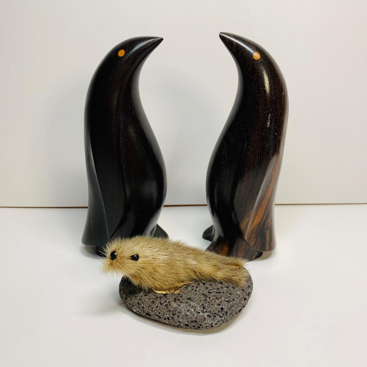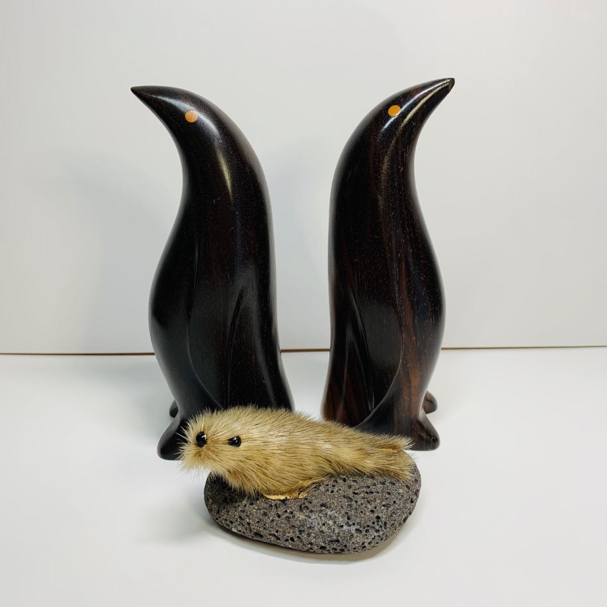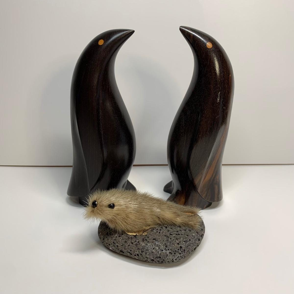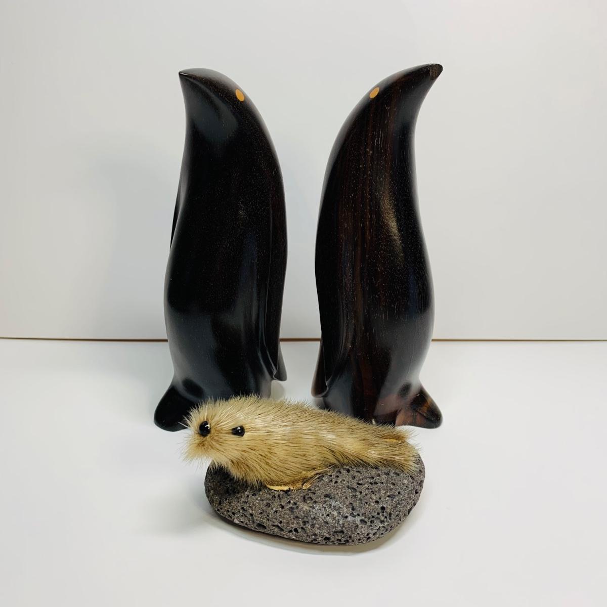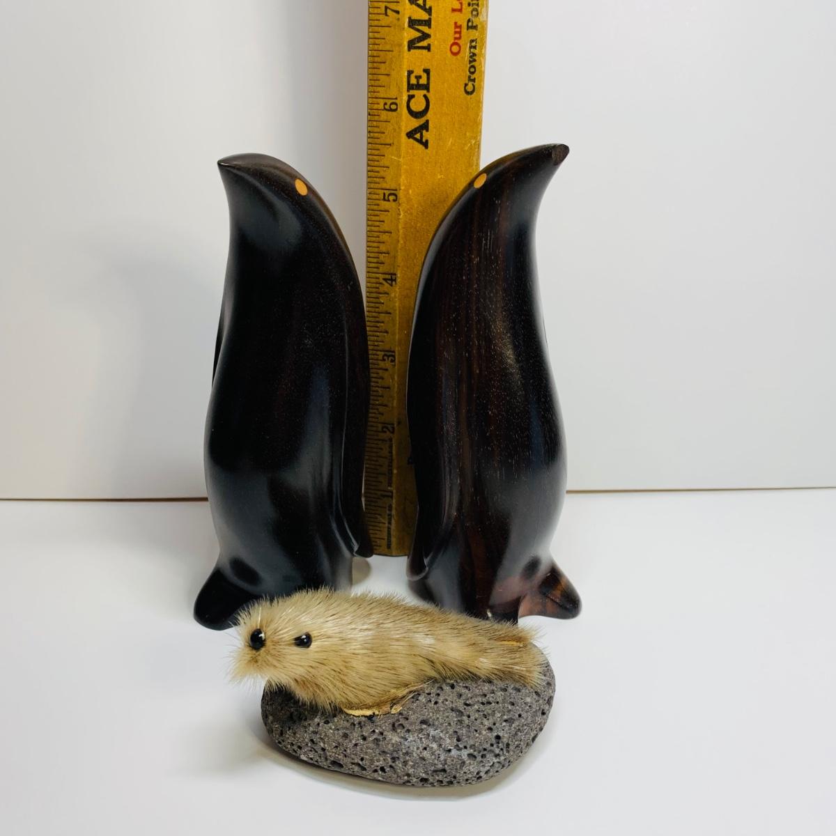 LOT 235R: Two Carved Wood Penguins and a Genuine Seal Figurine